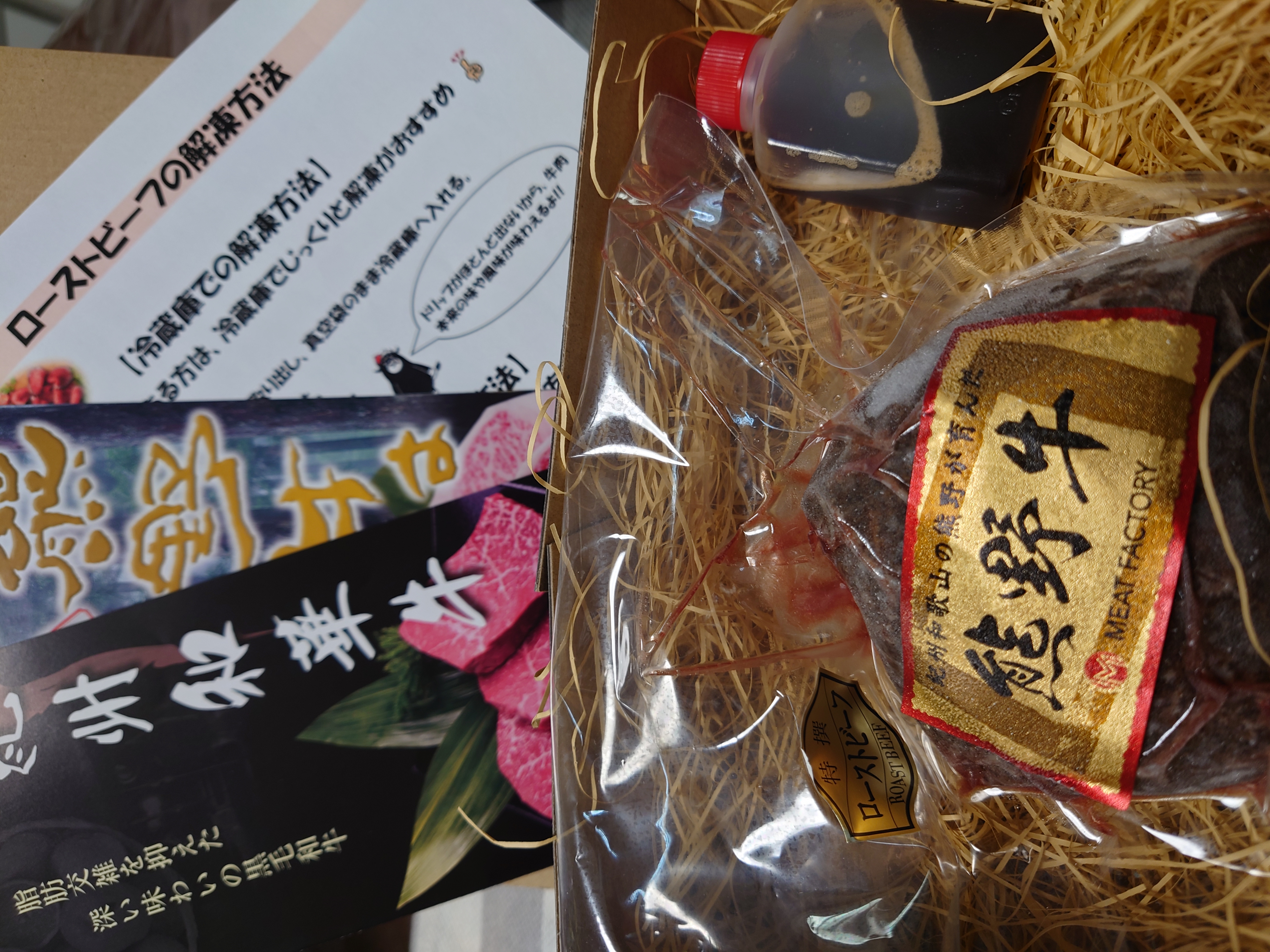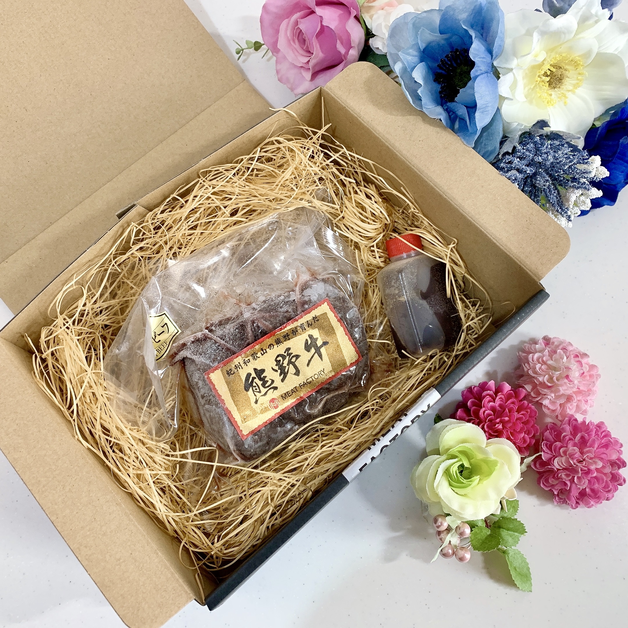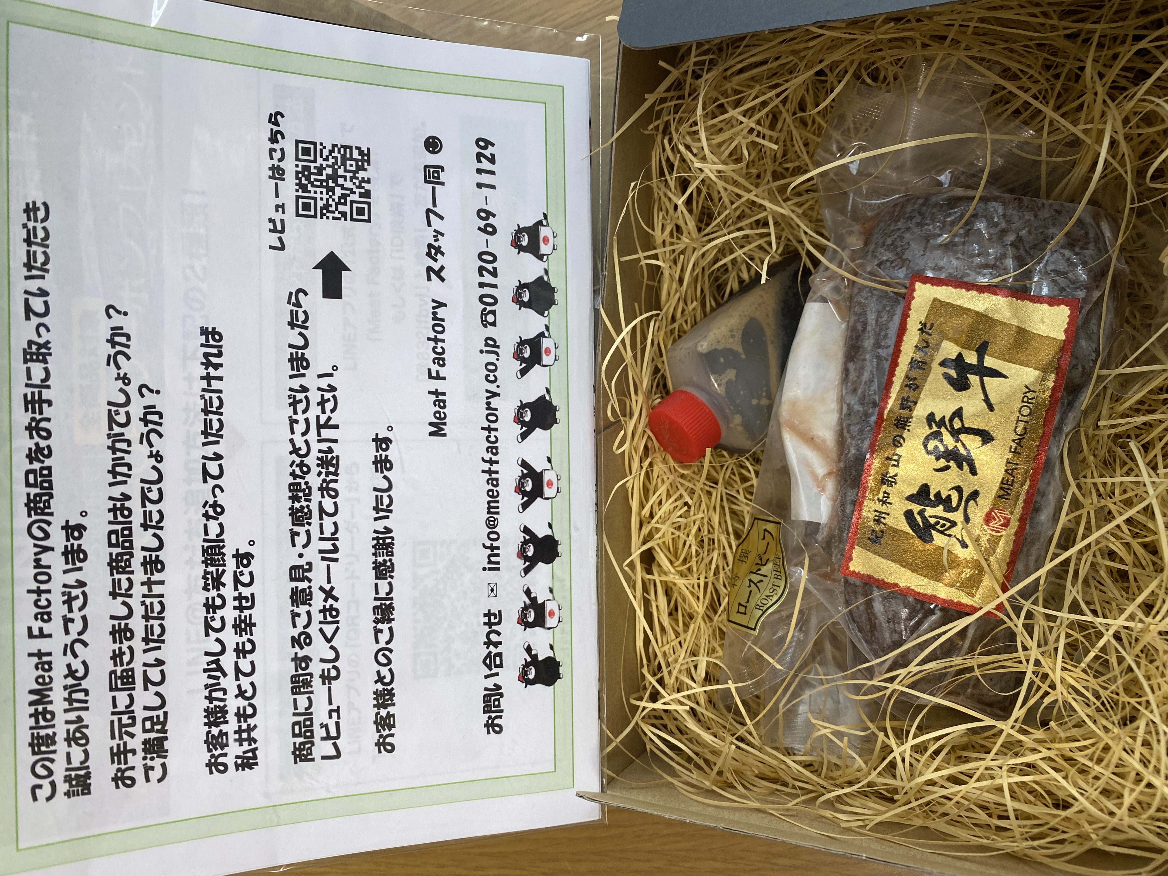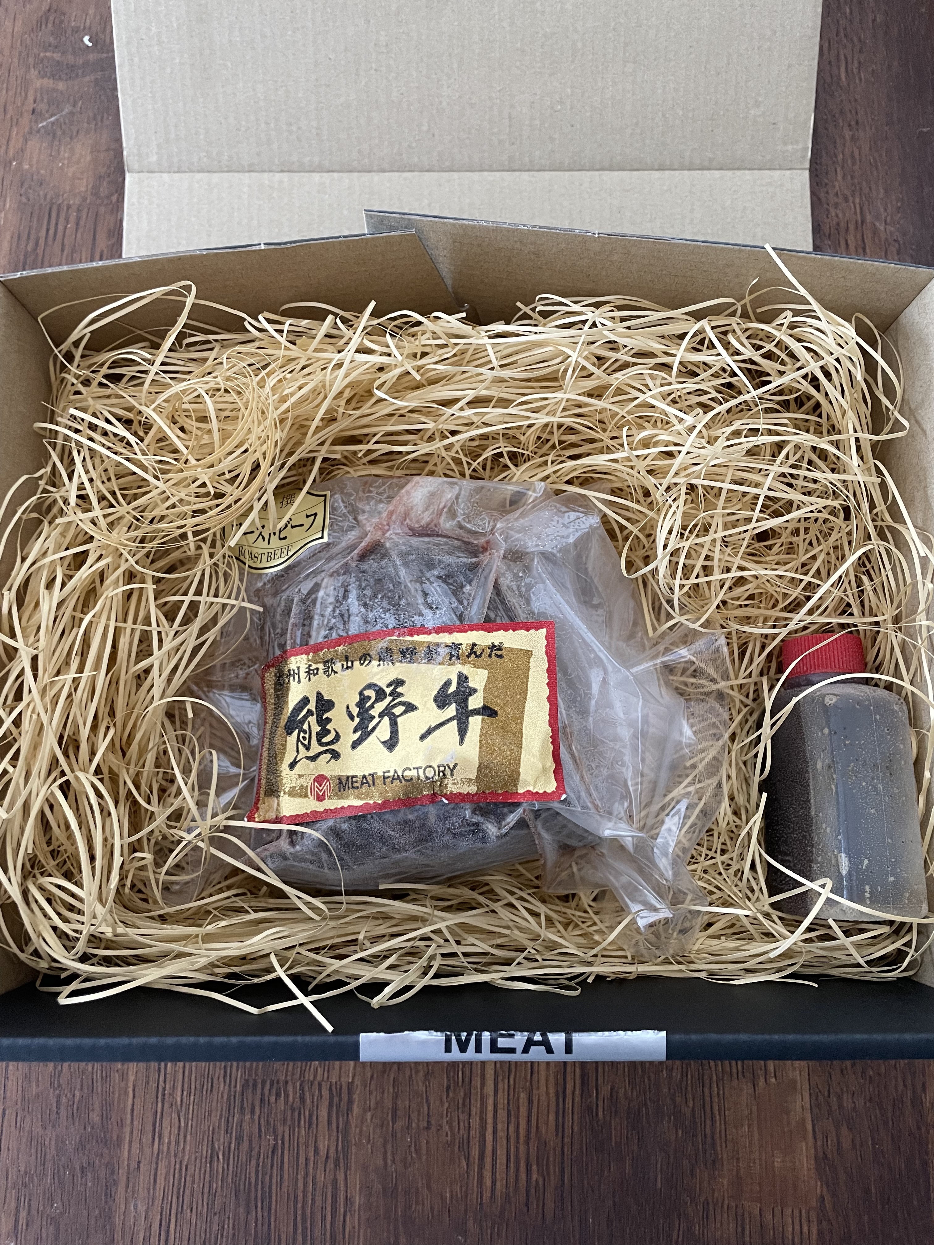 なにより、高級感のあるブラックの箱で"熊野牛"のシールが貼られた肉肉しい塊がペーパークッションに鎮座してるので、目上の人にも自信を持って贈れる品です!箱のシールが剥がしやすくて真空パックも切り込みあったのでハサミ要らずなとこも好感度高い。