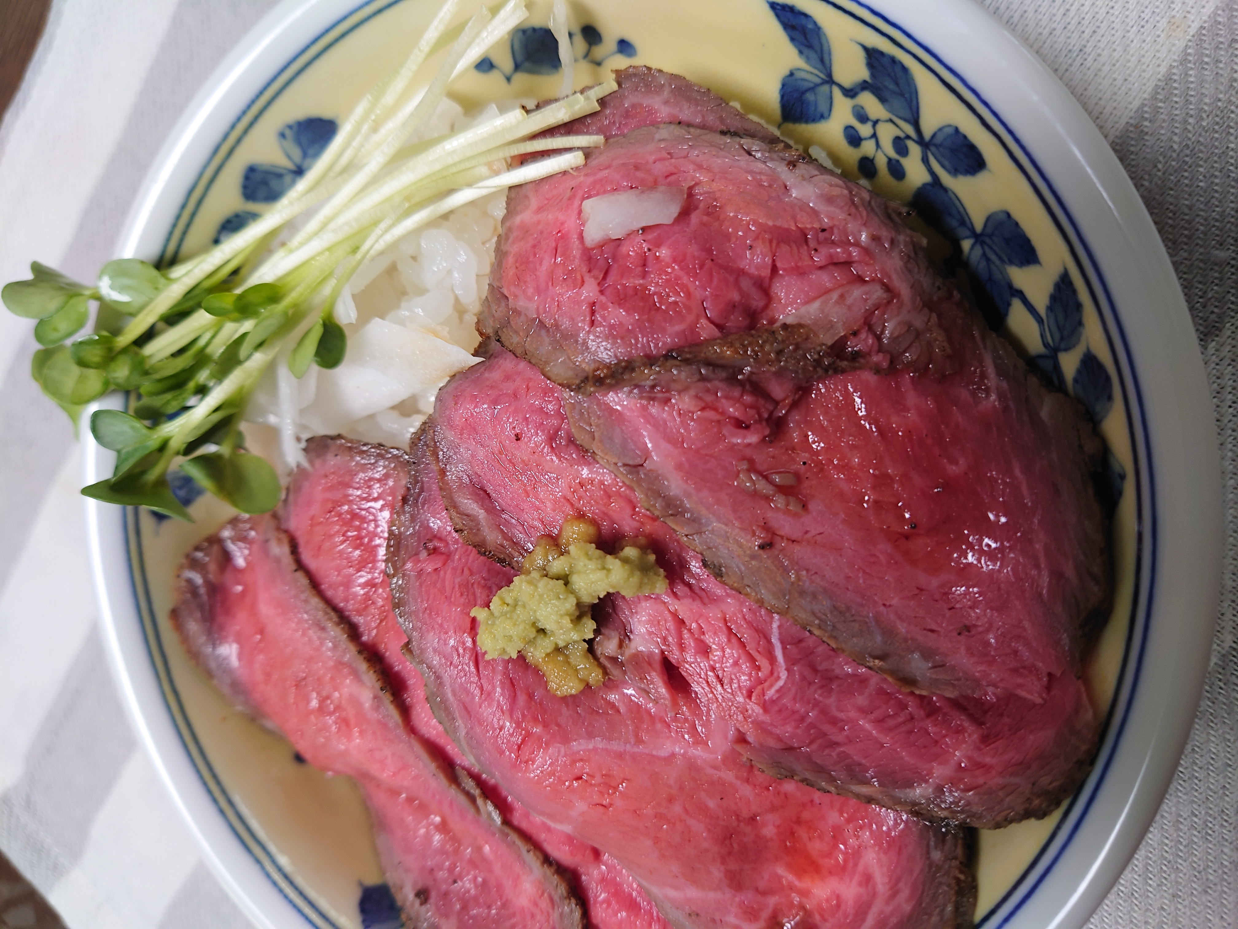 ブロックでのお届けとなりますので、お好みの厚さにスライスしていただき、ローストビーフ丼やバルサミコ酢をかけてお寿司にしたりと色々な食べ方をしていただけます。
