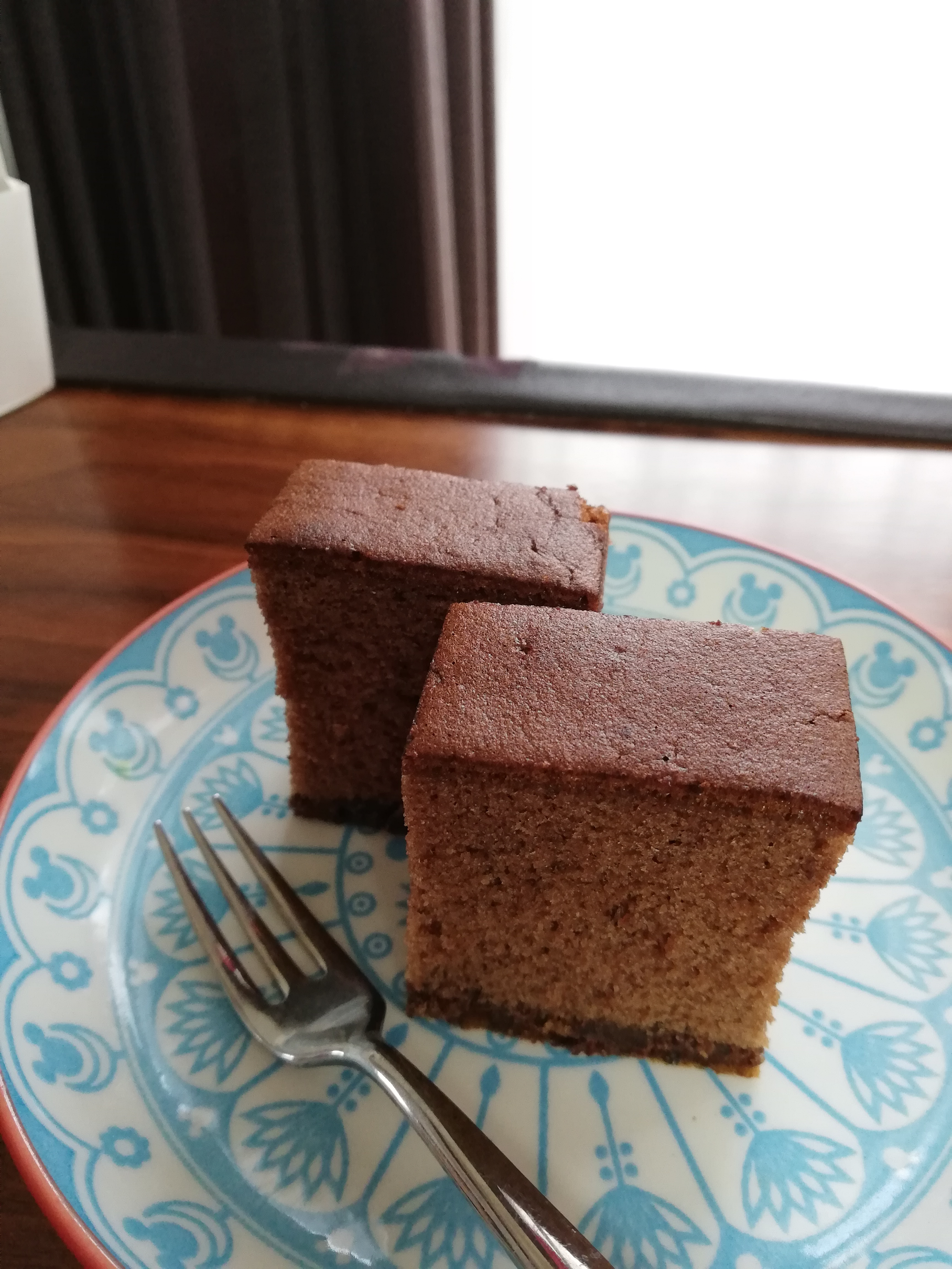 上の方はしっとりふわふわとしたカステラで、口に入れるとチョコレートの甘さや風味が広がります。下にはザラメとビターなチョコチップが散りばめられており、カリッとした食感とザラメの甘さとチョコチップのほろ苦さがマッチしていてとてもおいしいです。