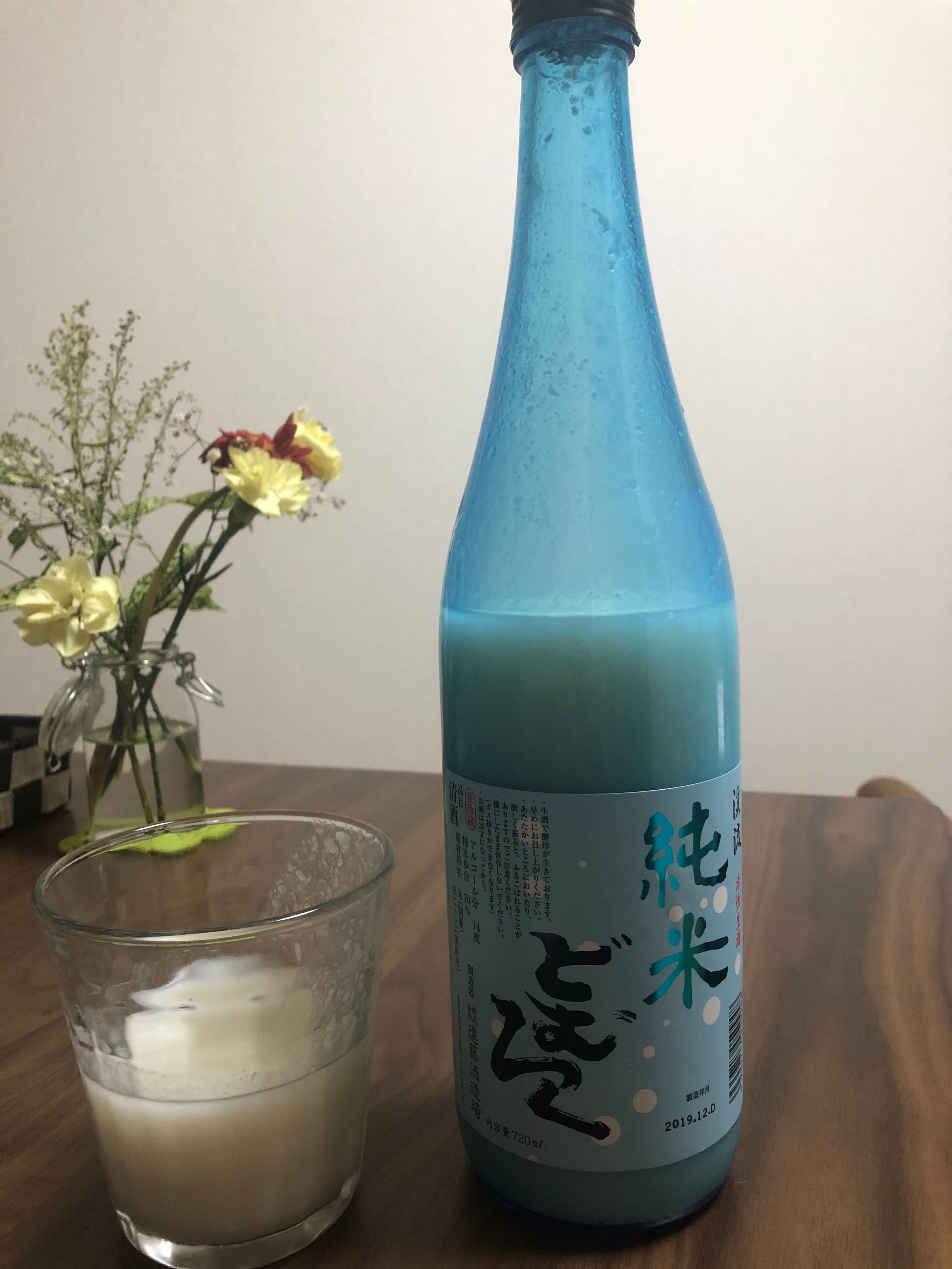 瓶の首に掛かっていた説明書き通りにしてからグラスに注ぎました。