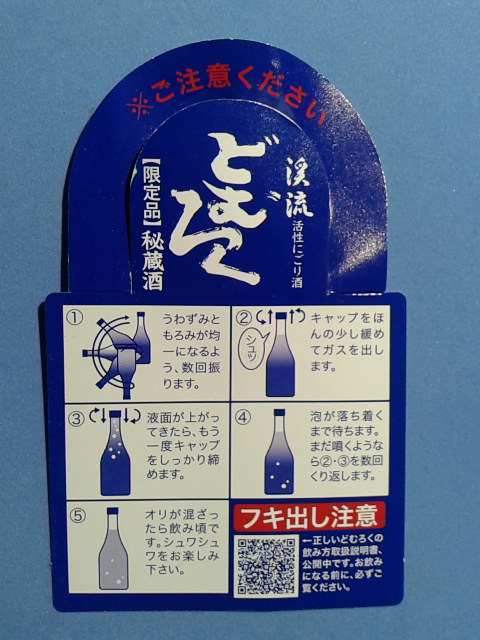 サイトの画像にある通り、酒瓶の首には、中身を均一に混ぜてから飲む為の方法が丁寧に書かれた、説明書きが掛けられていました。