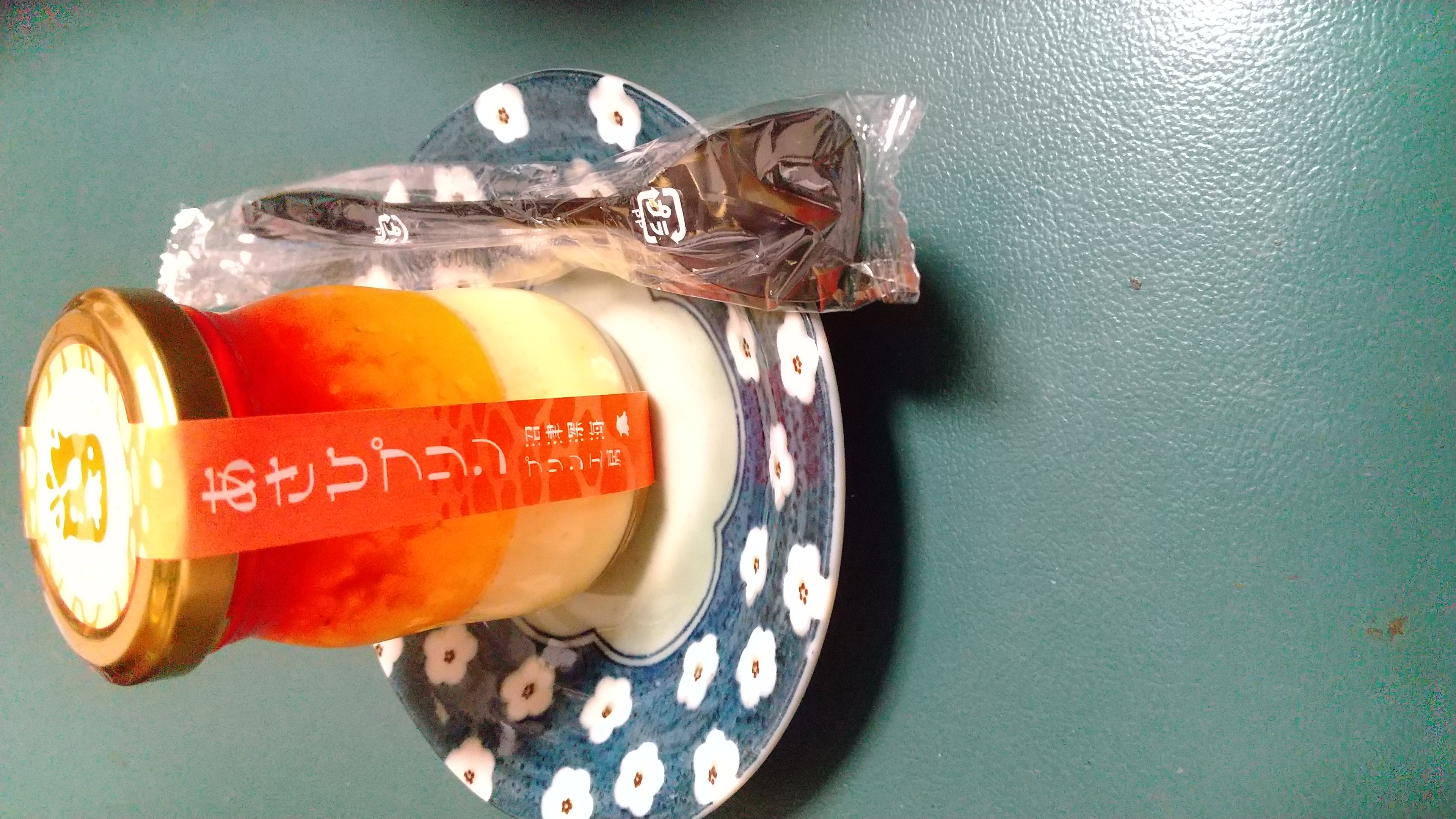 あさひプリン…朝日をイメージしたとっても綺麗なプリンです。マーマレードとオレンジ、地元のみかんを使ったジュレは味も色合いもとても良くて、プリンとも合っています。休日の、少し遅く起きた朝とかに食べたら最高の一日になるだろうなぁと思いました。