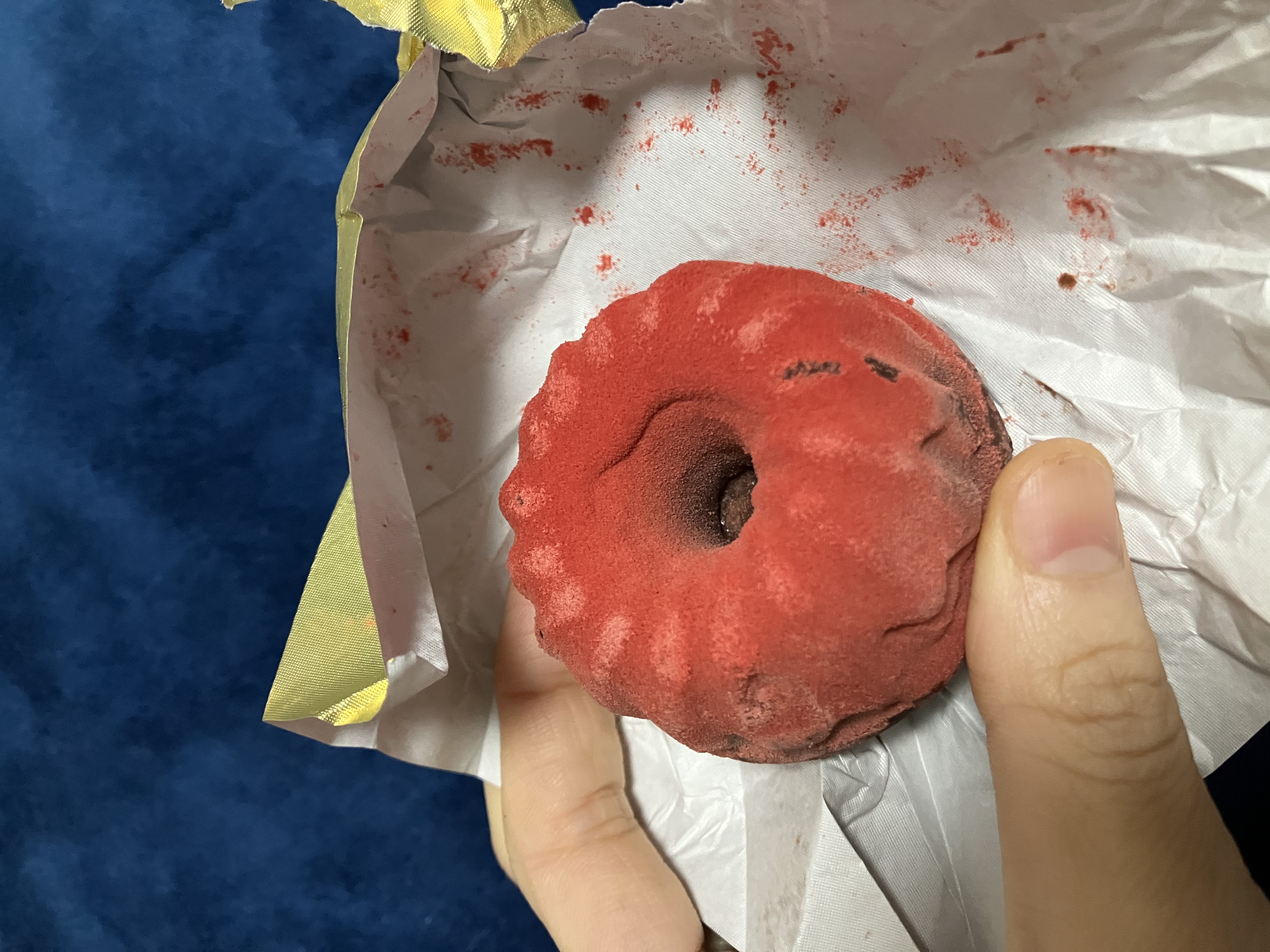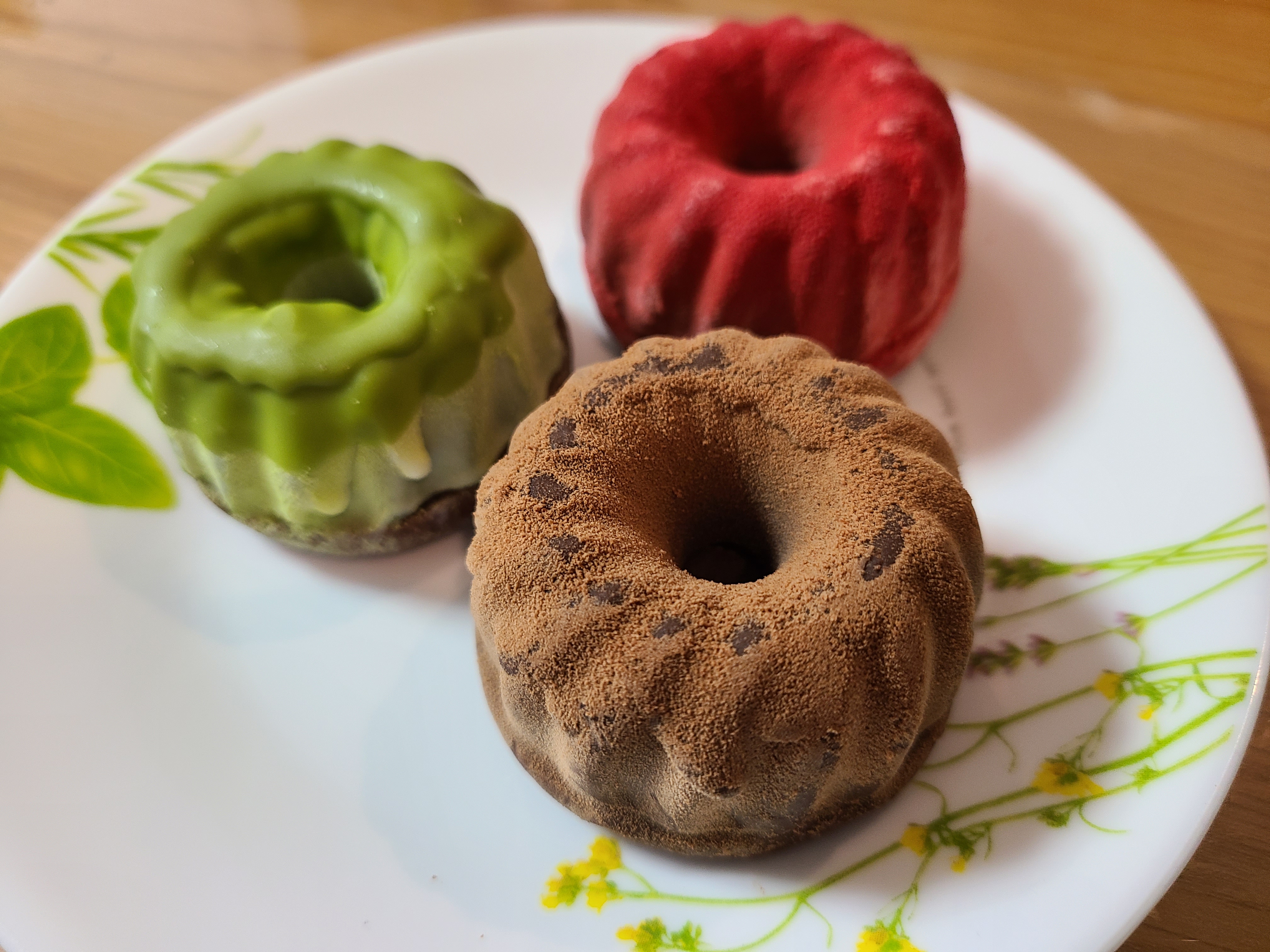 包み紙を開けると、カラフルなガトーショコラの登場です。可愛いの嵐で眼福です。