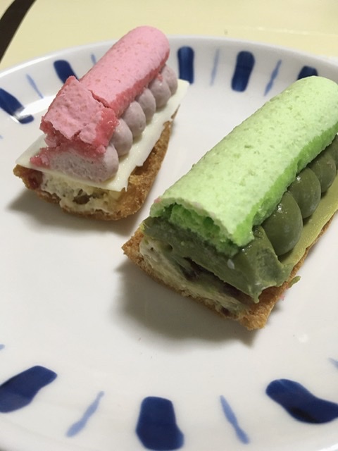マカロンはサクサク、クリームはふわふわ、チョコはパリパリ、カスタードはトロトロ、エクレアの生地はサクサク♪