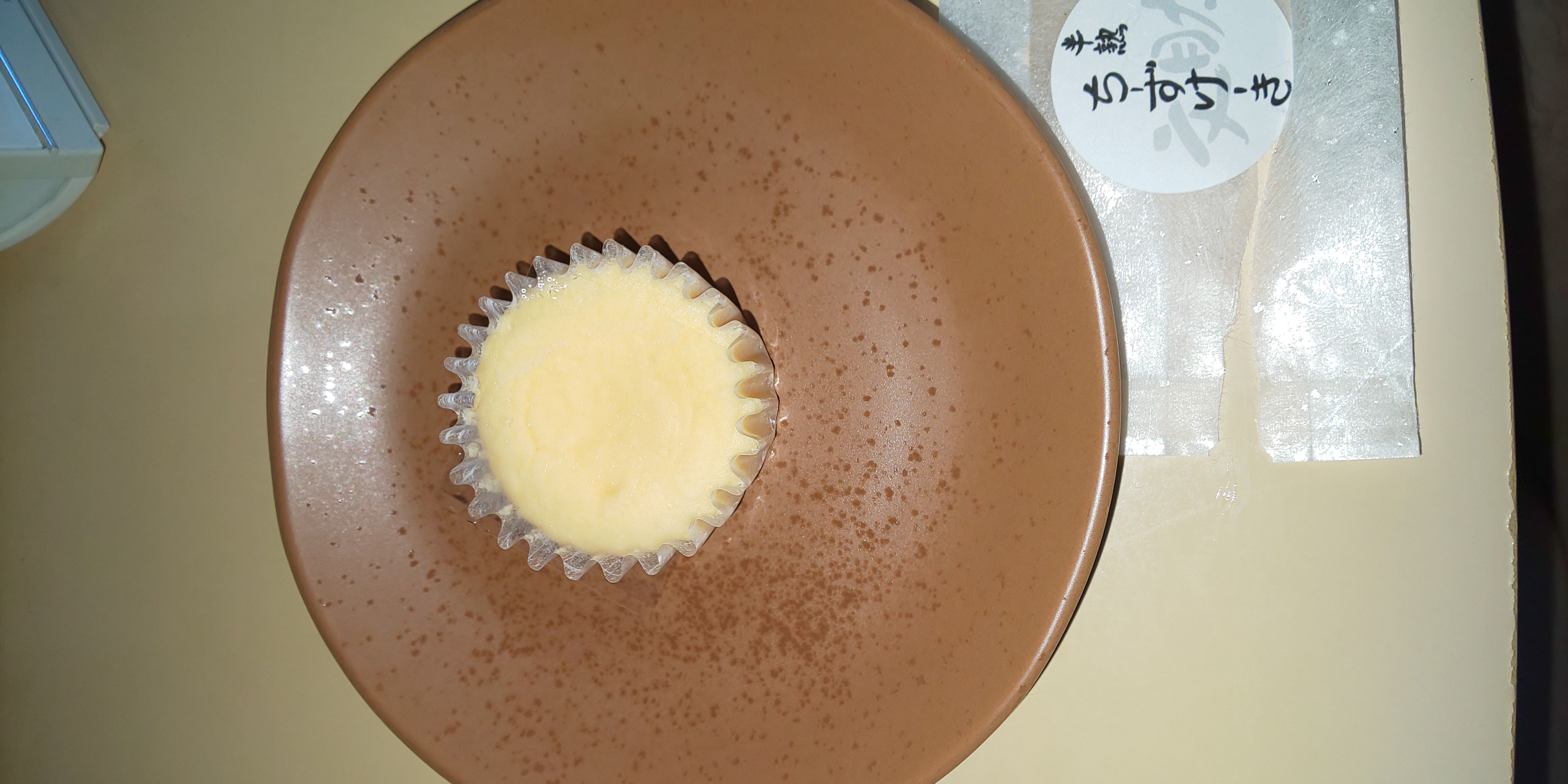 私の場合は、まず、和紙で個包装されていて、一見すると和菓子かと思う「文助の半熟チーズケーキ」からいただきました♪