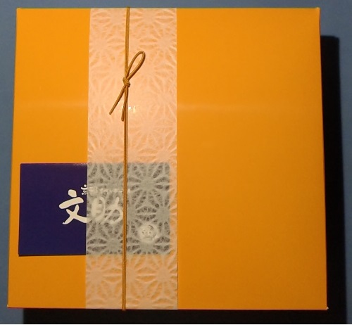 しっかりした紙袋から中身を取り出し、ぐるりと巻いてあった緩衝材(プチプチ)を外すと、ショップさんのサイトで紹介されている通りの、ビタミンカラーのオレンジ色の化粧箱が確認出来ました。ここで2枚の目写真を撮りました。