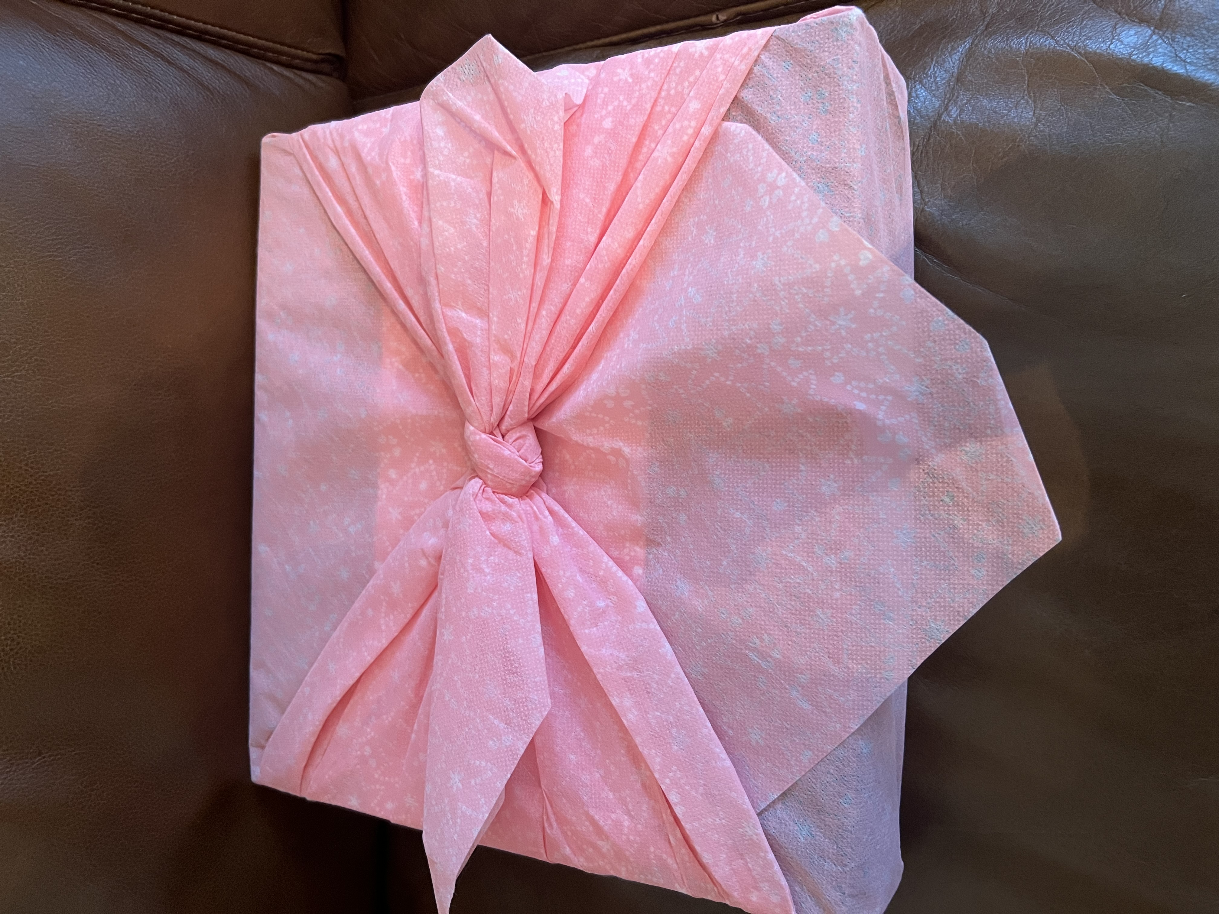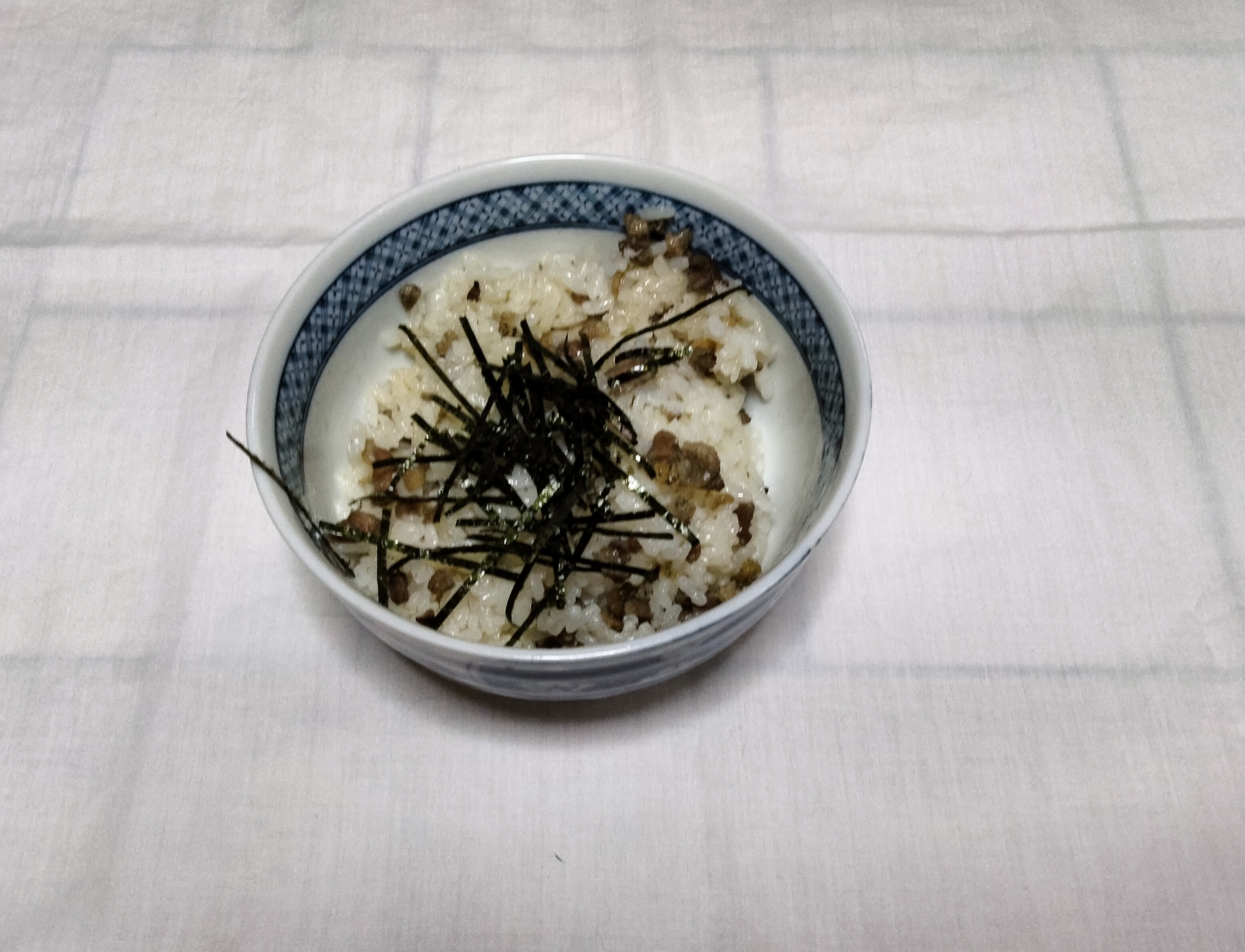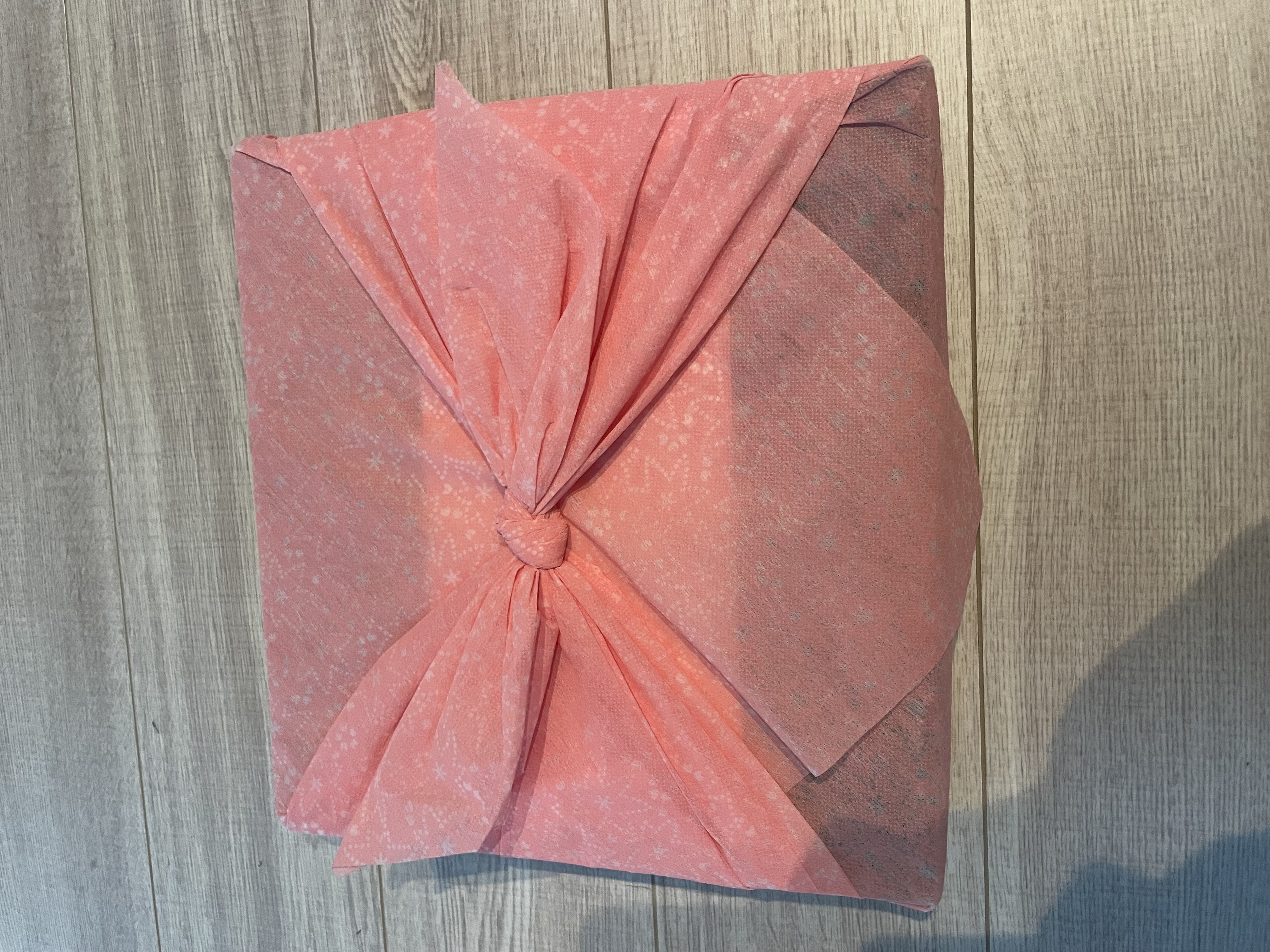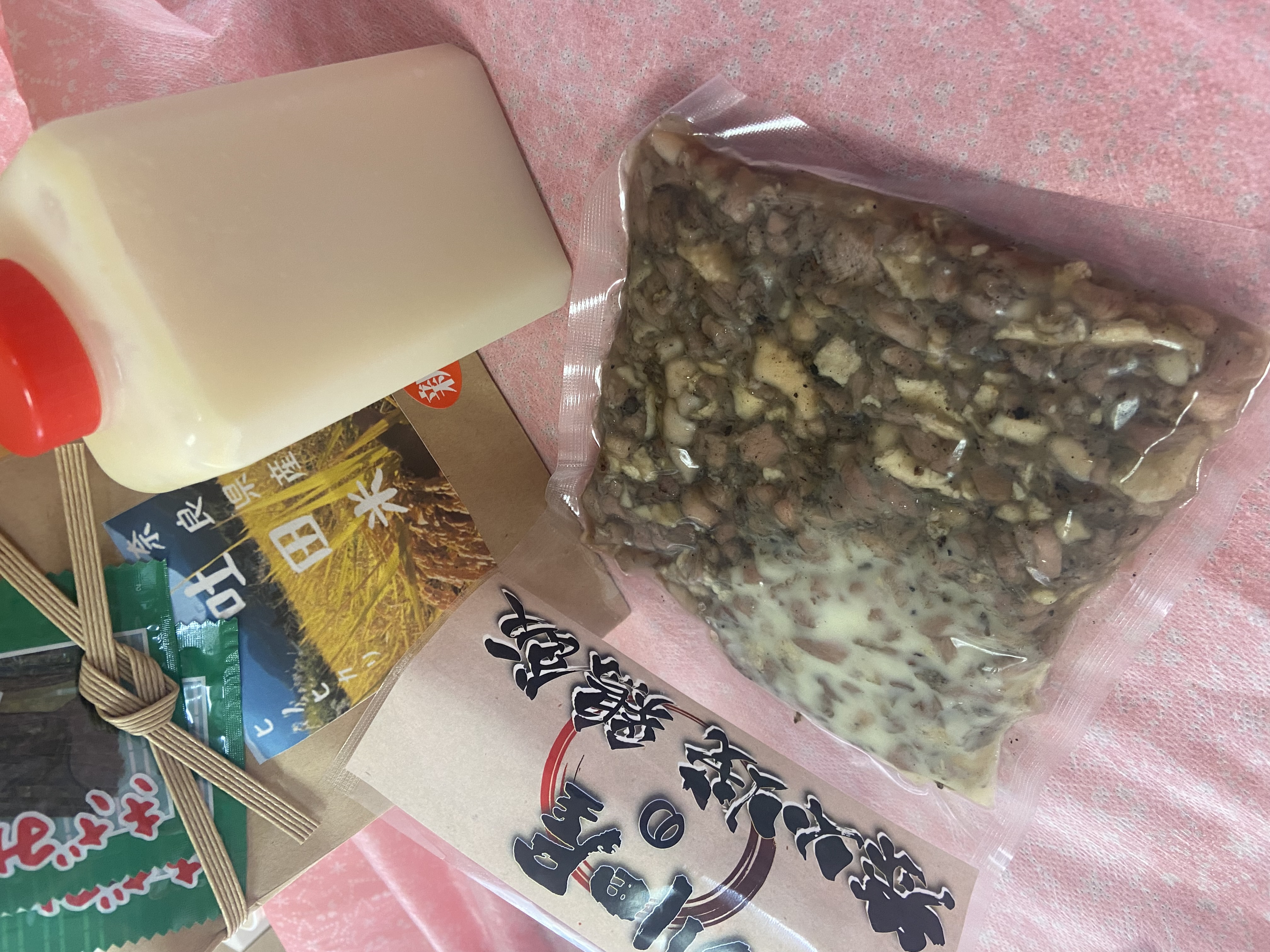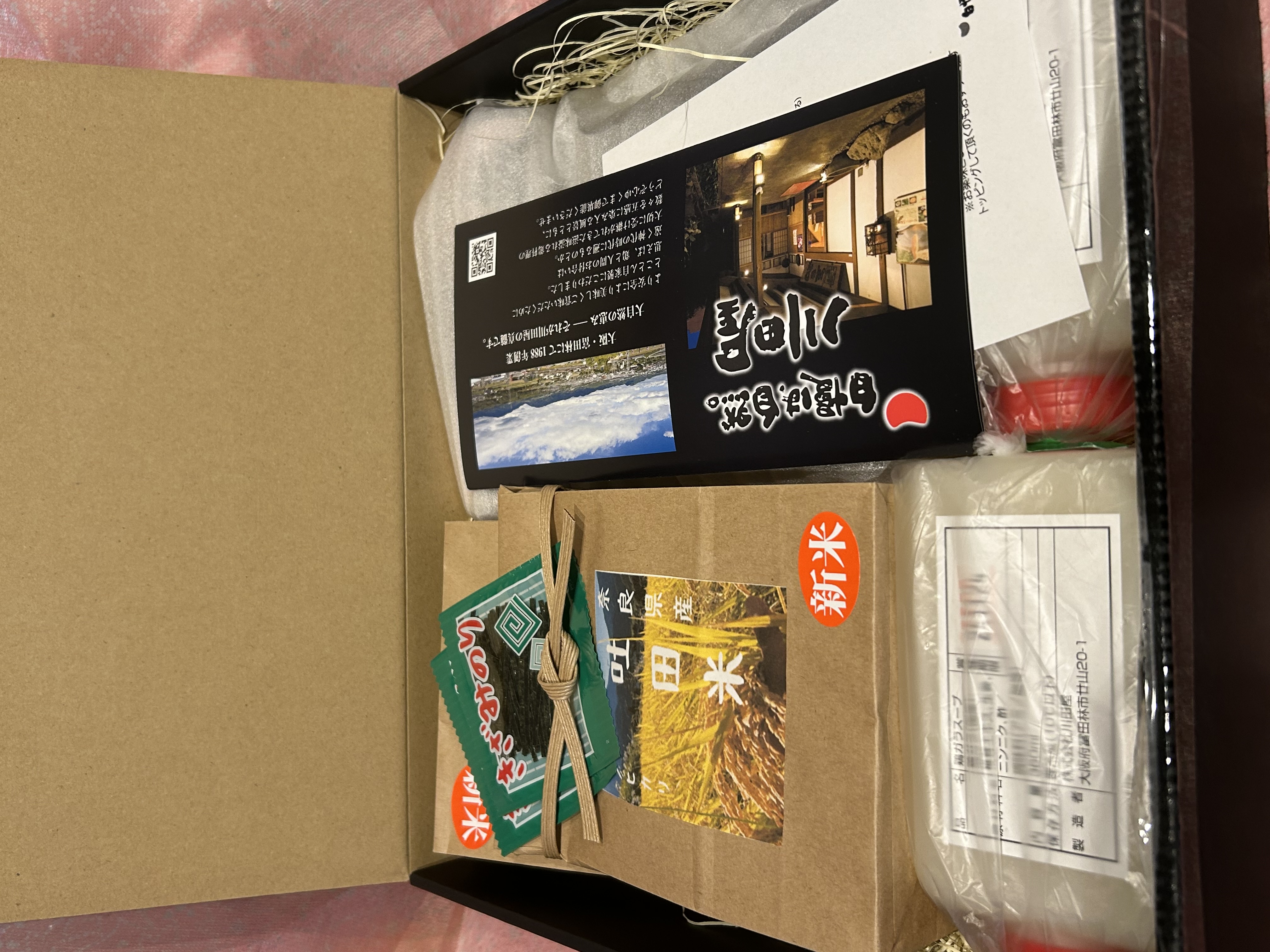 風呂敷を解くと、お米・焼き鳥飯の素・スープ・きざみのり のセットが入っています