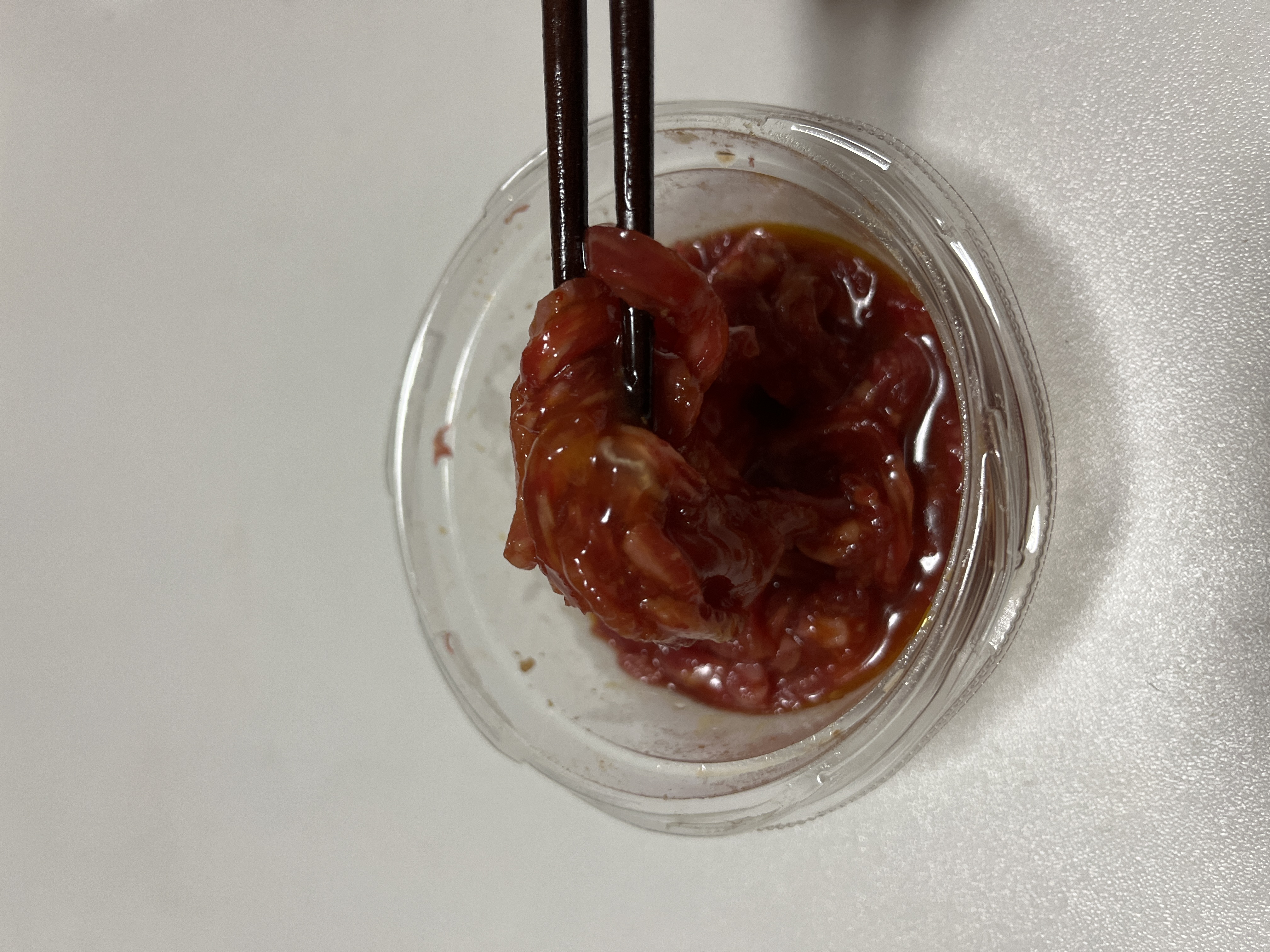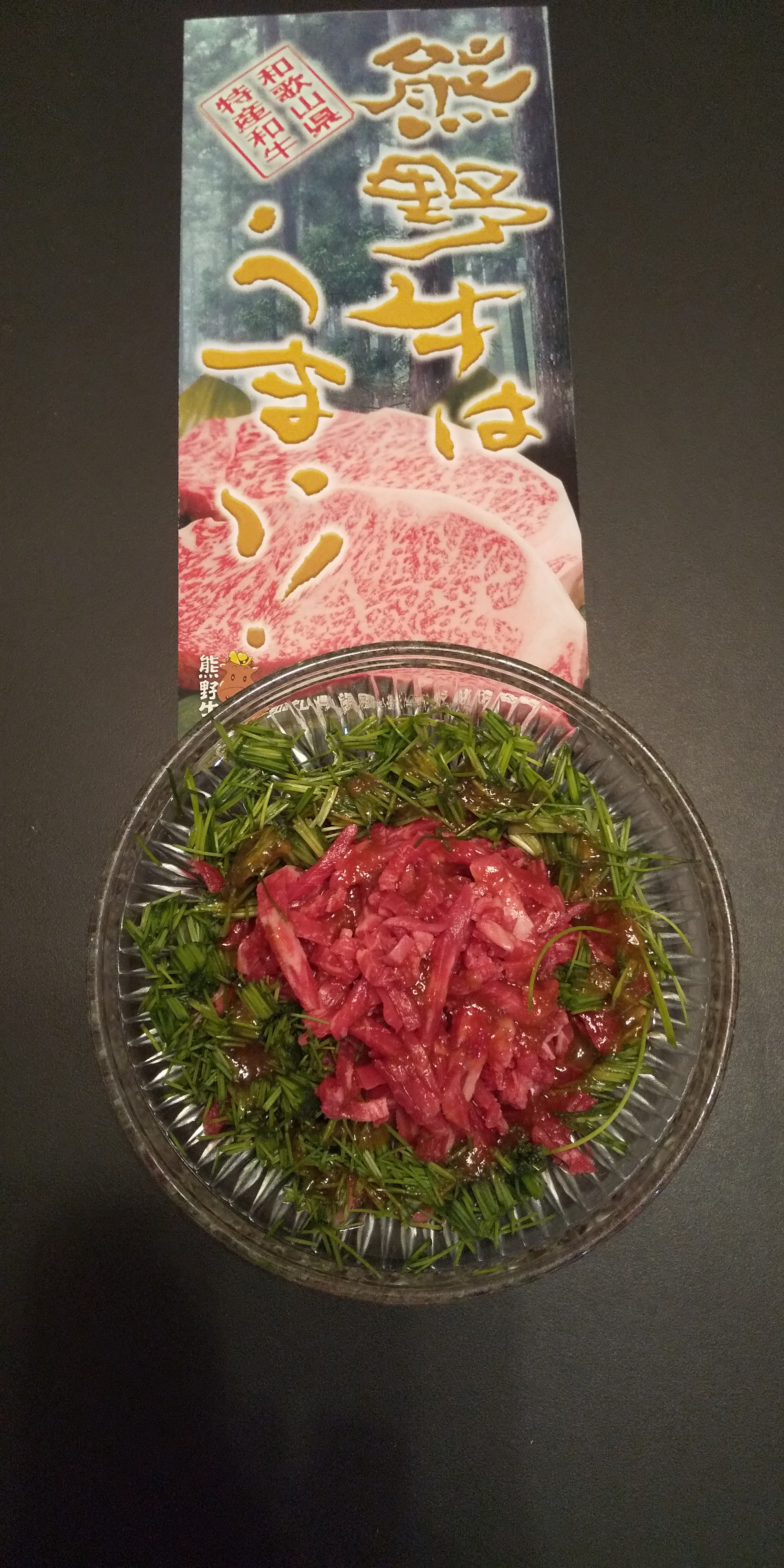 ユッケというと赤身のイメージがあったのですが、適度にさしが入っていて、口の中で赤身部分のくにゅっとした食欲の後にその脂が口の中で溶けていき、非常に美味しかったです。また、今回チョイスした薬味が後味をさっぱりさせてくれてあっという間になくなってしまいました(笑)