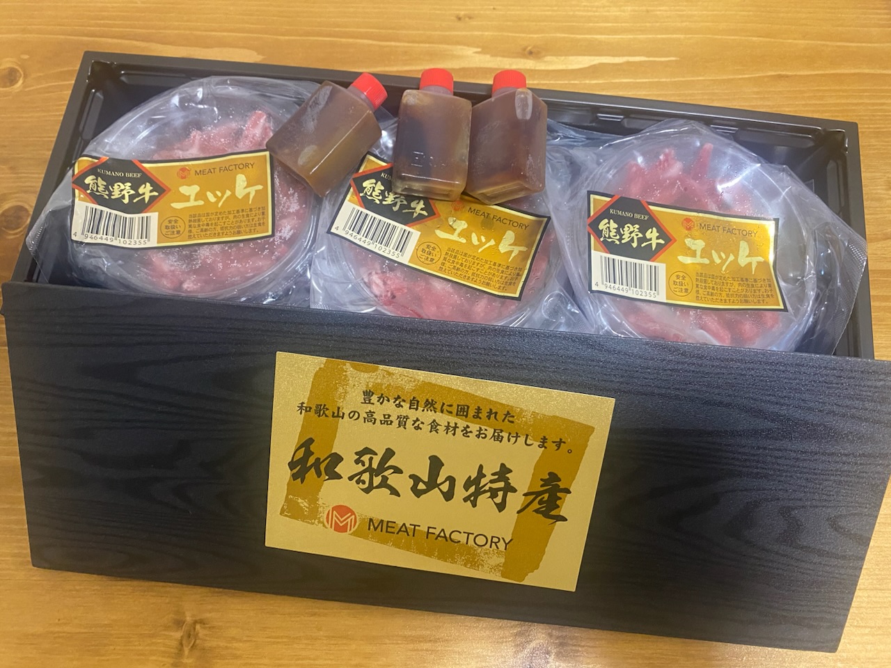 箱は漆塗りを思わせるかのような重厚なデザインで、その中に熊野牛認定証や食べ方の説明書も同封されておりました。