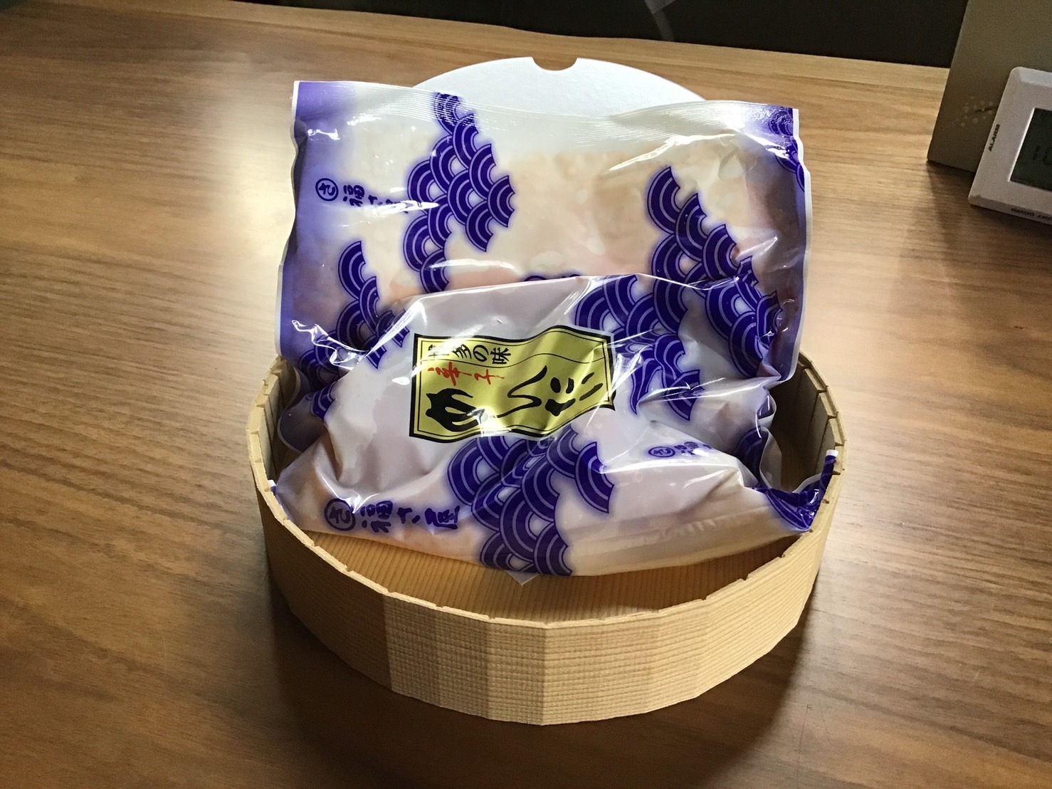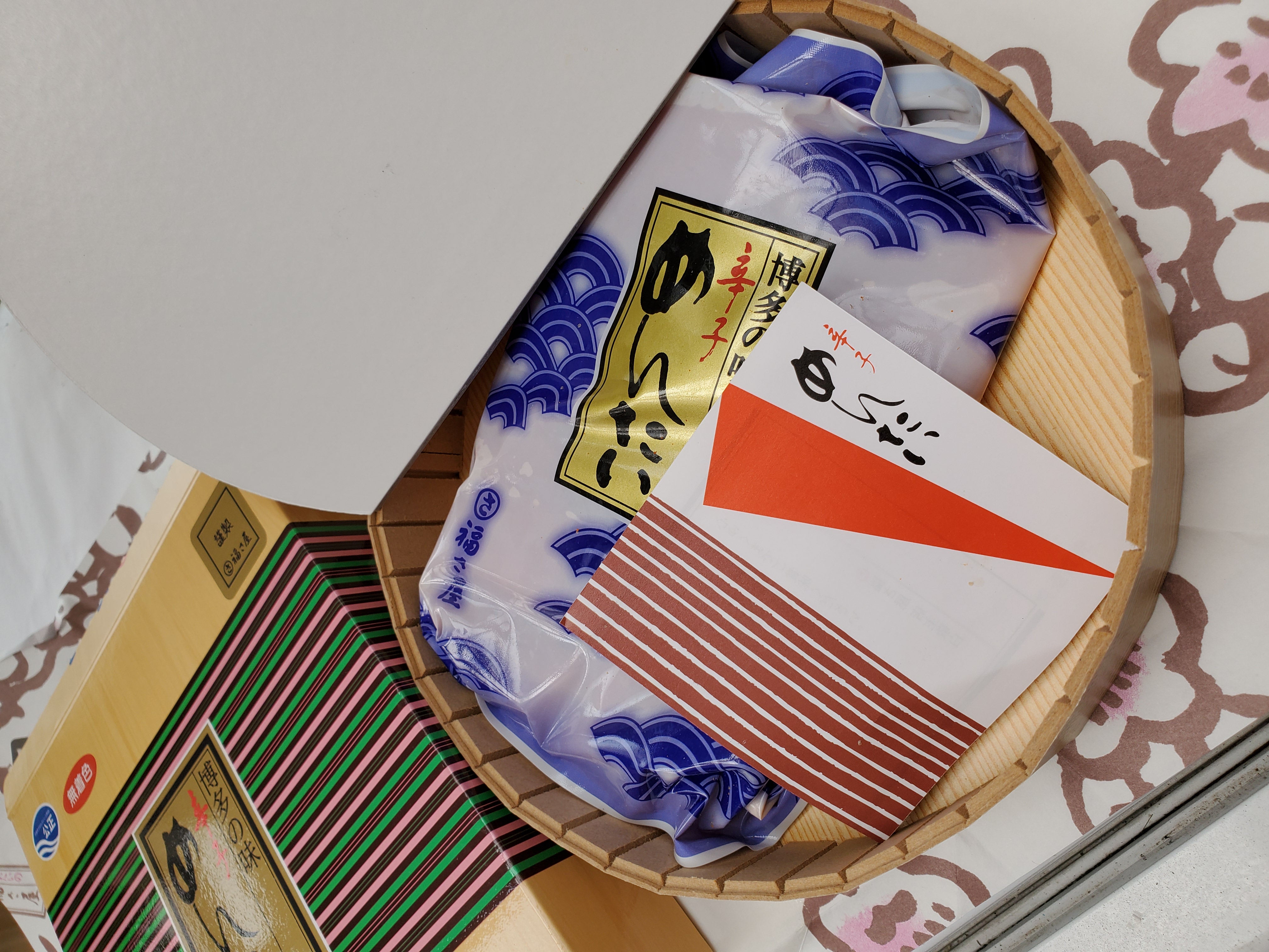 とても可愛らしい梅の花の包装紙に包まれて、クール便で届きました。丁寧で品のある梱包と、高級感ある立派な入れ物に感動!!