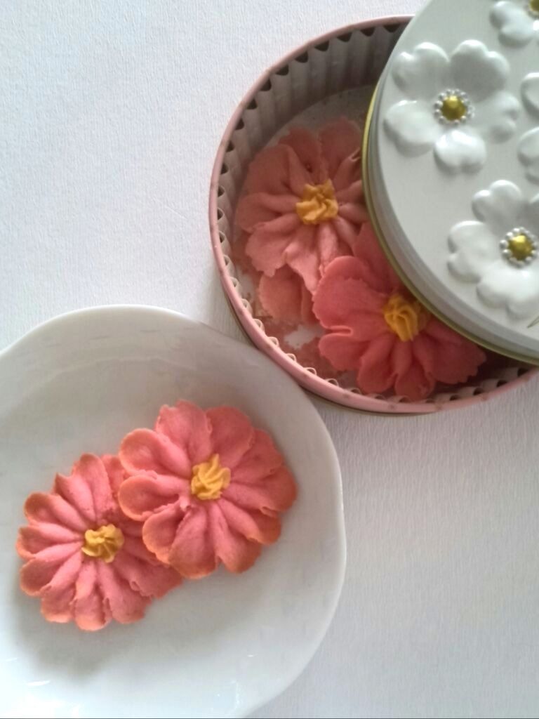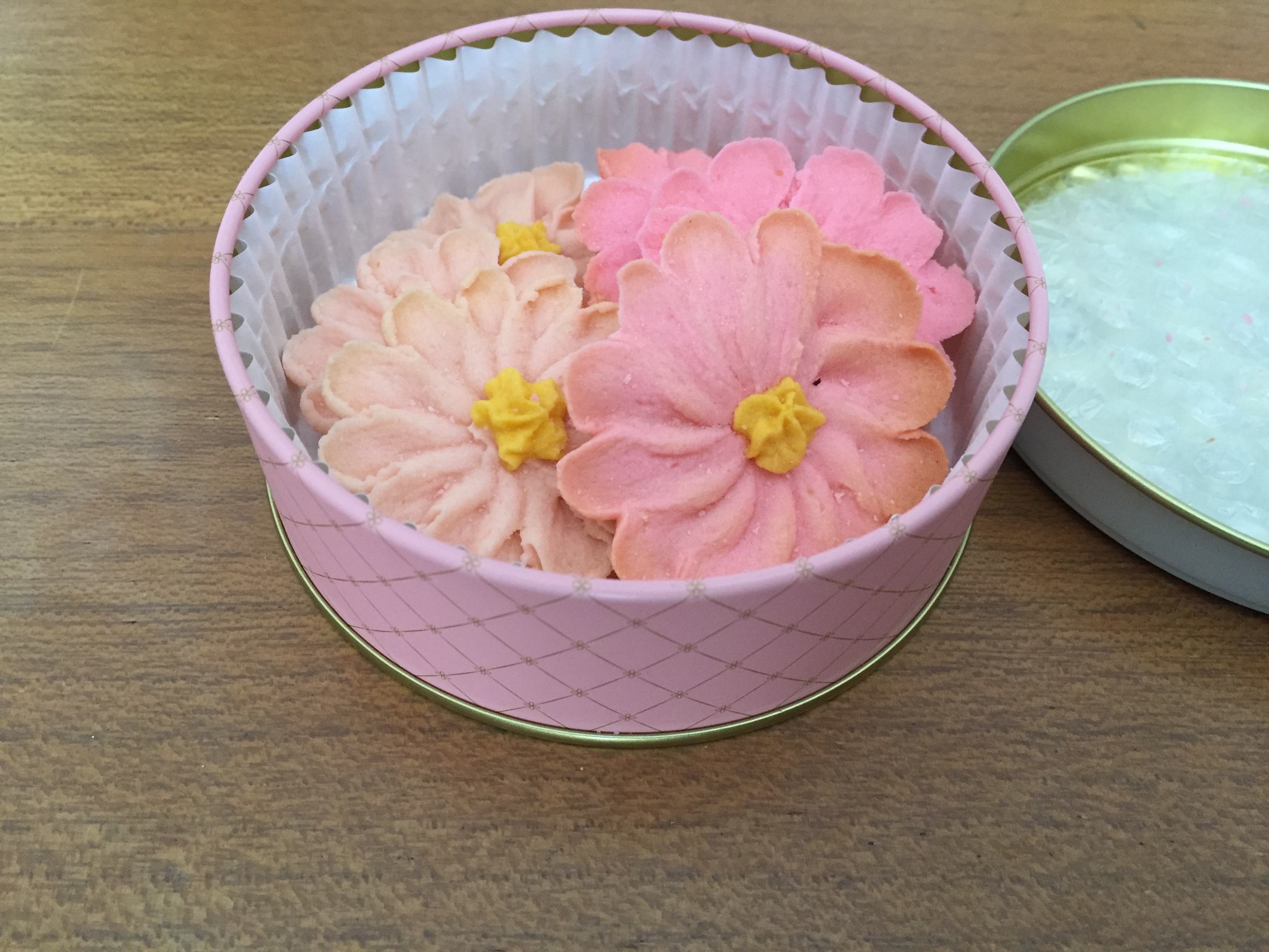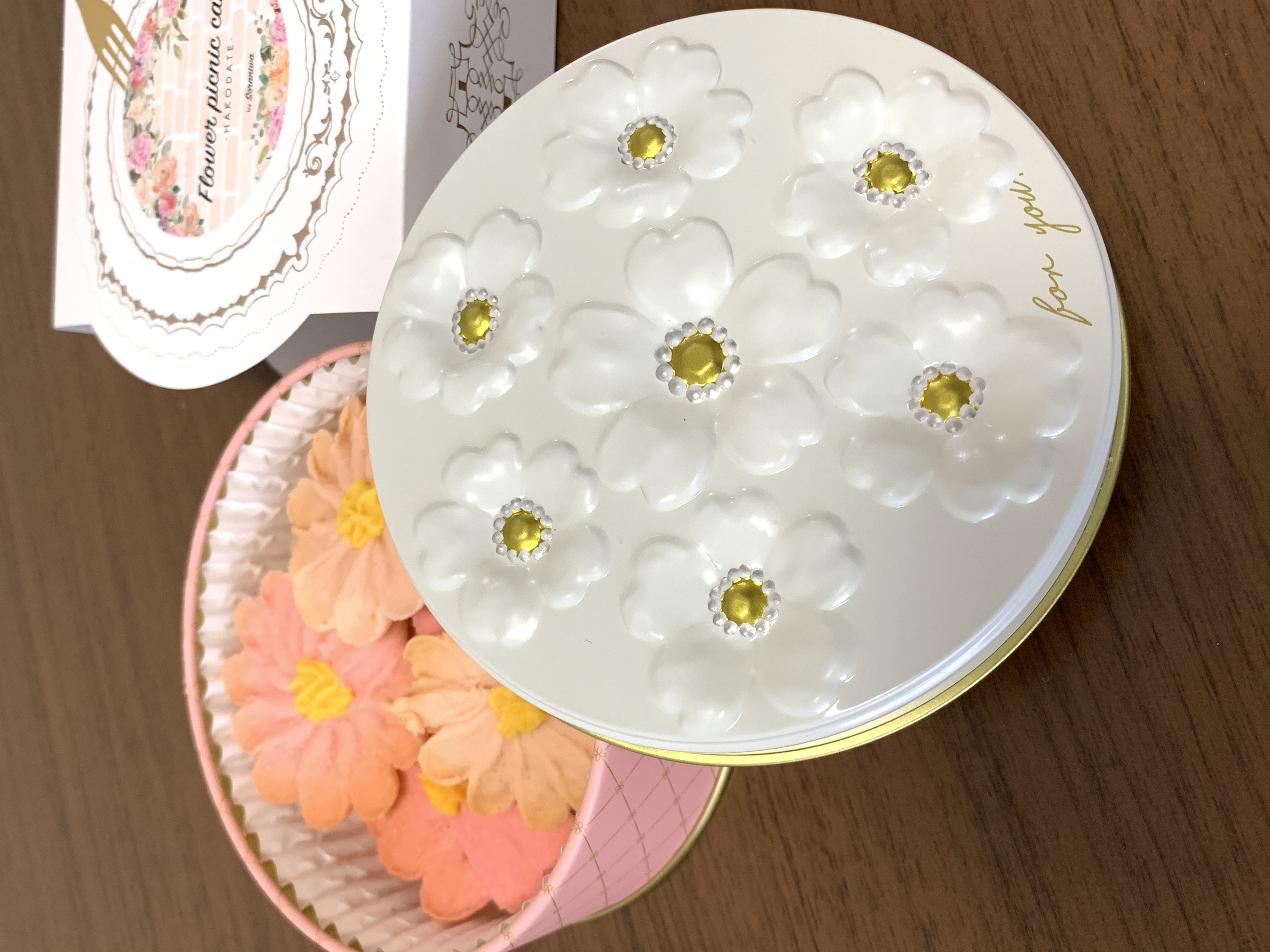 白とピンクのお花の缶を開けると、可愛くて美味しい