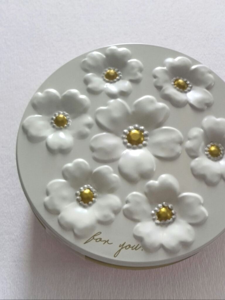 そして蓋をあけると想像よりもグッとかわいいお花が並んでいて、幸せな気分にしてくれます。ピンク色も濃いものや薄いものなど、色あいがちがってフォトジェニックでした。また缶の蓋上面の白いお花と、中身のピンク色のお花とのコントラストもすばらしい。