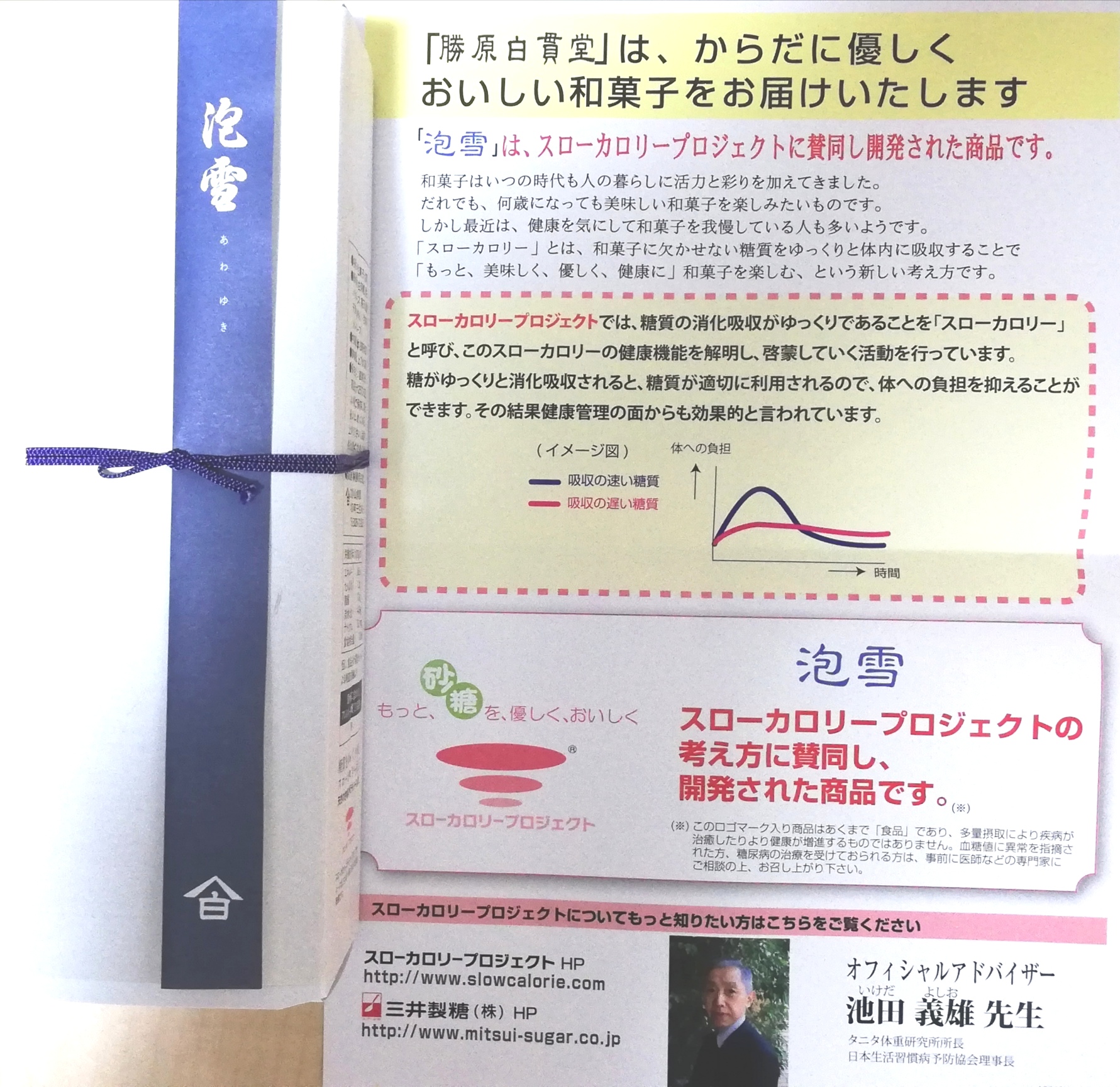 勝原白貫堂の泡雪は先人が目指した「簡素にて上質」の和菓子作りの精神の下、現代の技術を取り入れ職人技と科学的な根拠に基づいた製品作りをしています。材料はもちろん厳選した国産天草100%の極上寒天、安心安全な卵白、北広島町の良質な水を使用しています。商品は冷蔵便で送りしますが、召し上がる際には常温に戻して召し上がれますと口当たりと甘さが華やかに感じられます。こちらの商品は職人ひとり1日24本の製造となります。