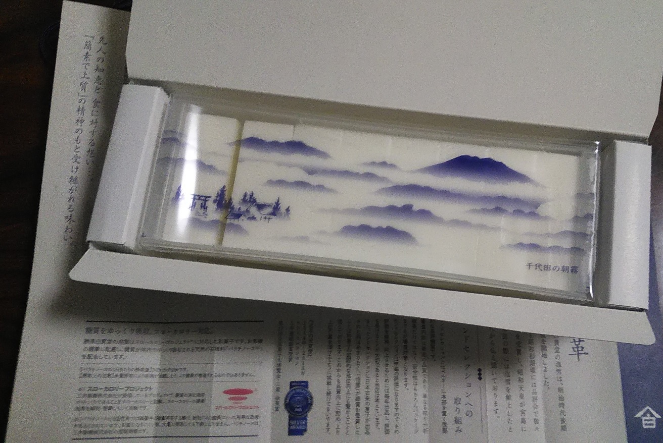 説明書きに冷凍するのもいいようなことが書いてあったので、老舗のお菓子なのにお店側からそんな提案をしてもいいのかしらと思いつつ、2人で食べるには量もあったので試してみました。
