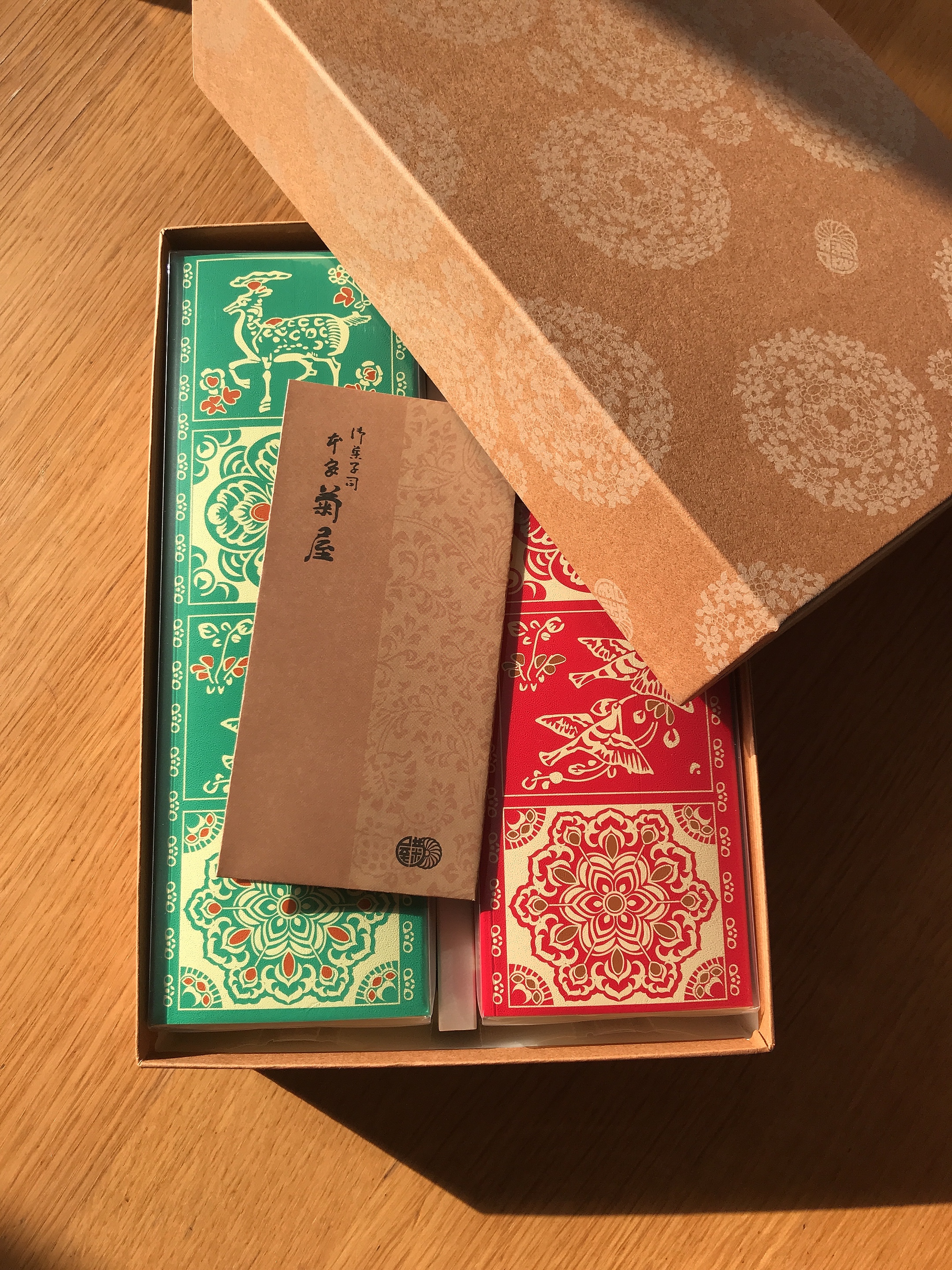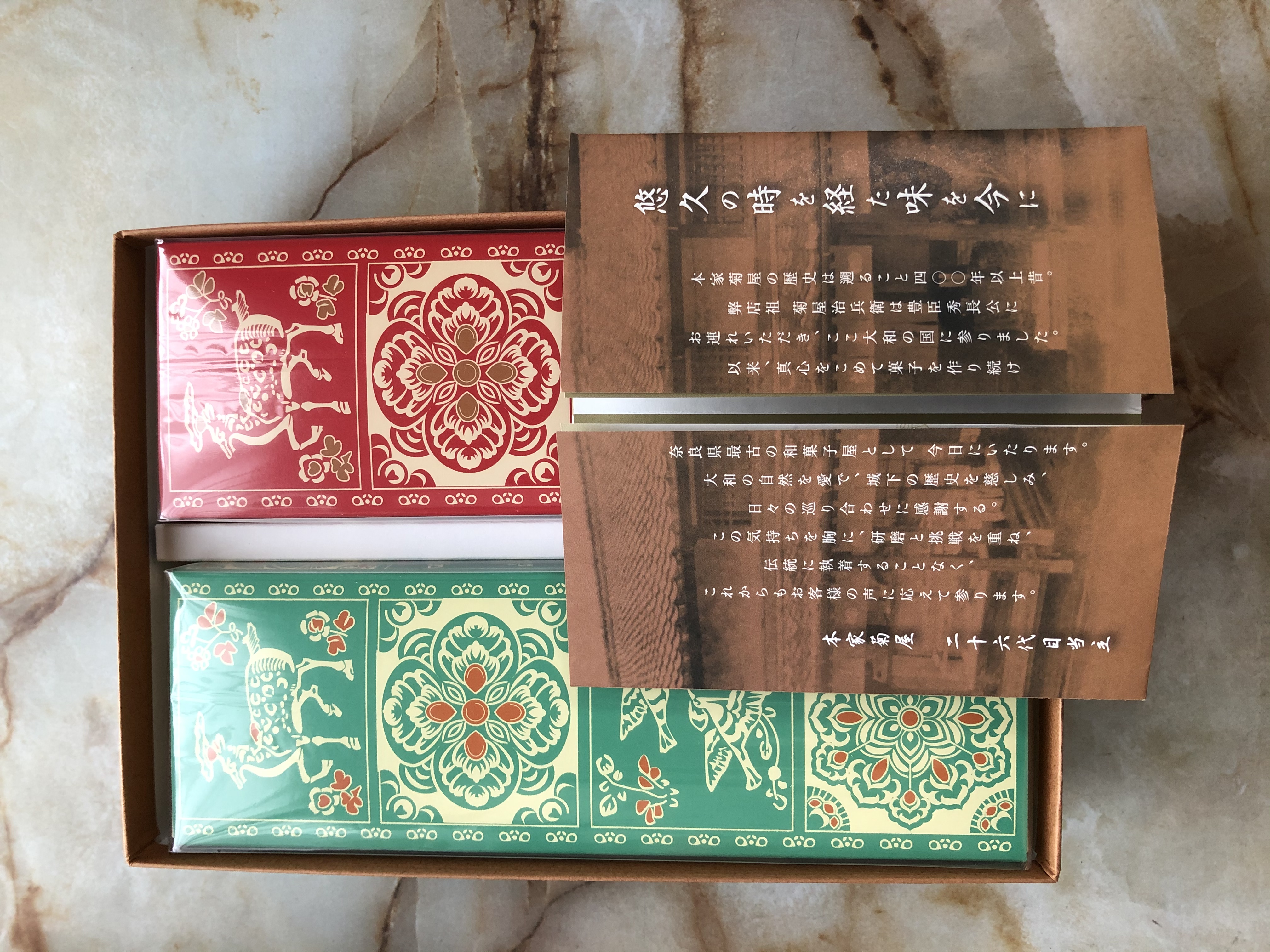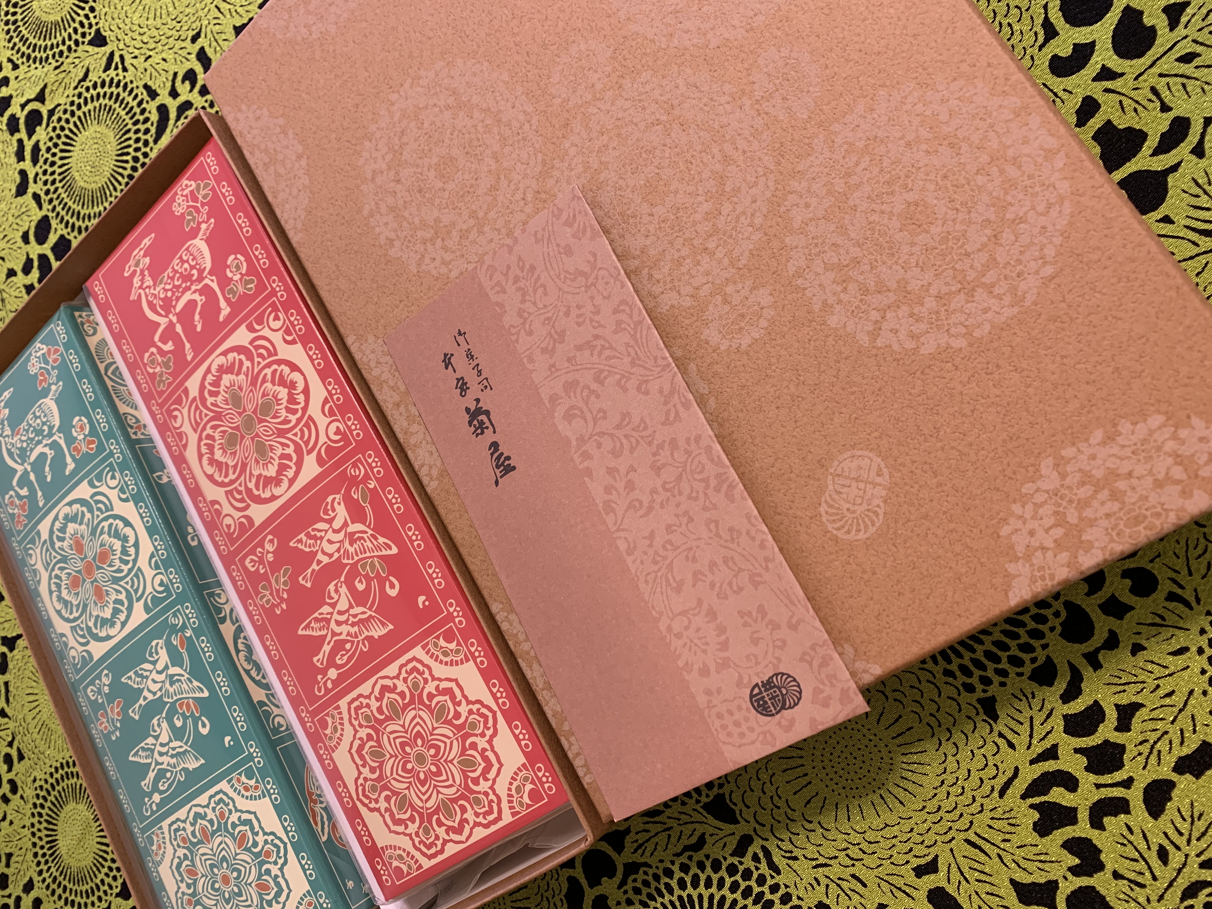 奈良を象徴する鹿や寺院の模様が印象的。まるで絵画を見ているような箱が印象的でした。
