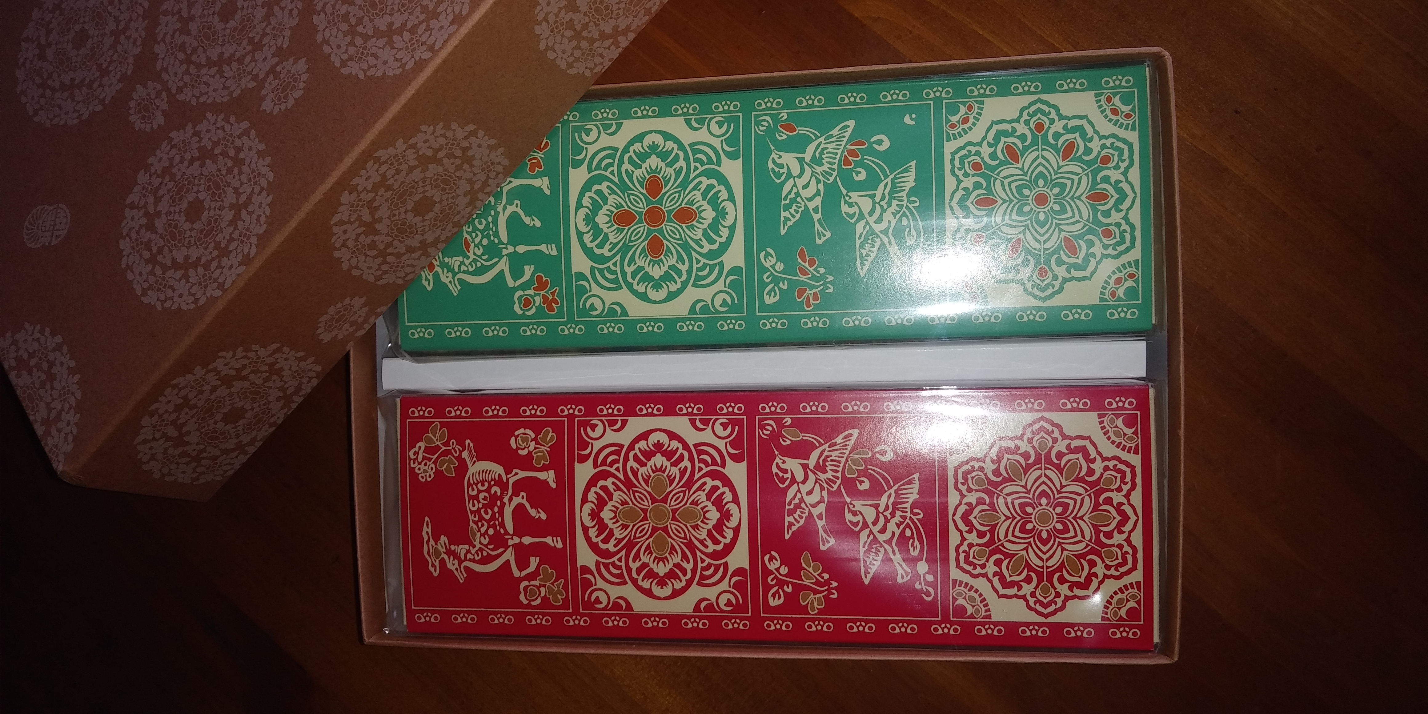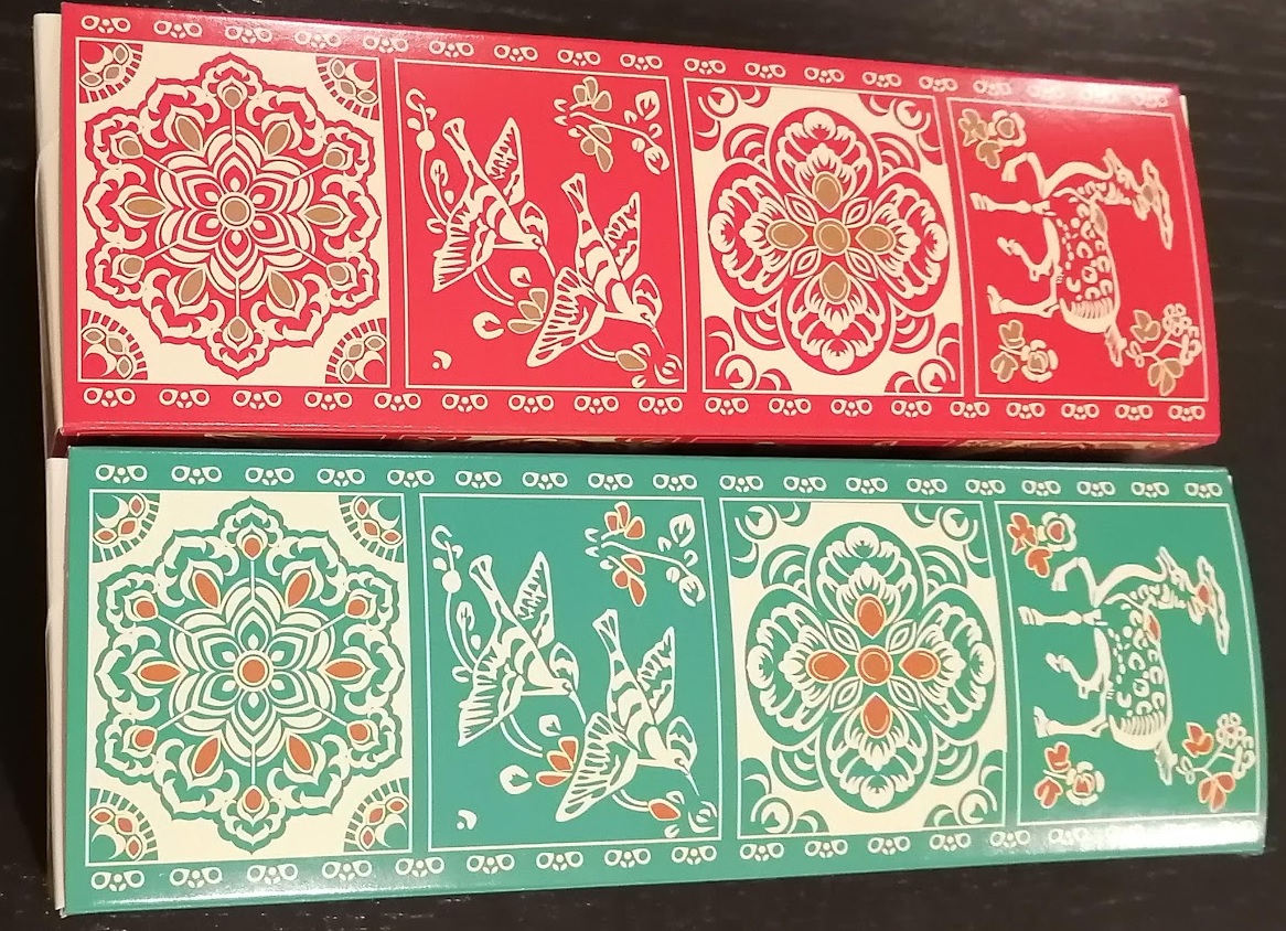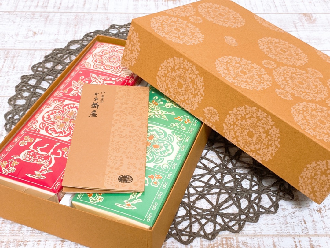 奈良を象徴する鹿や寺院の模様が印象的。まるで絵画を見ているような箱が印象的でした。