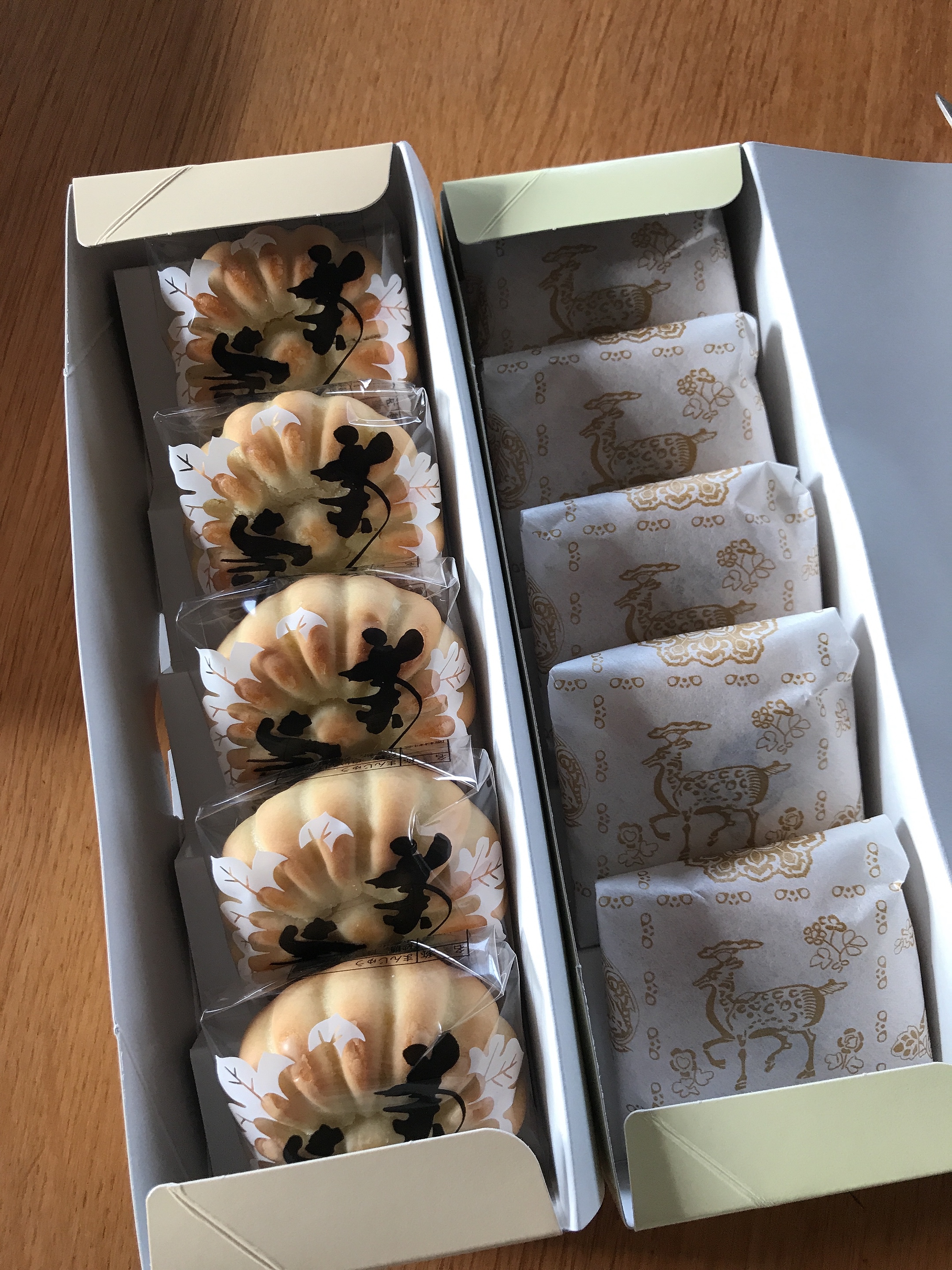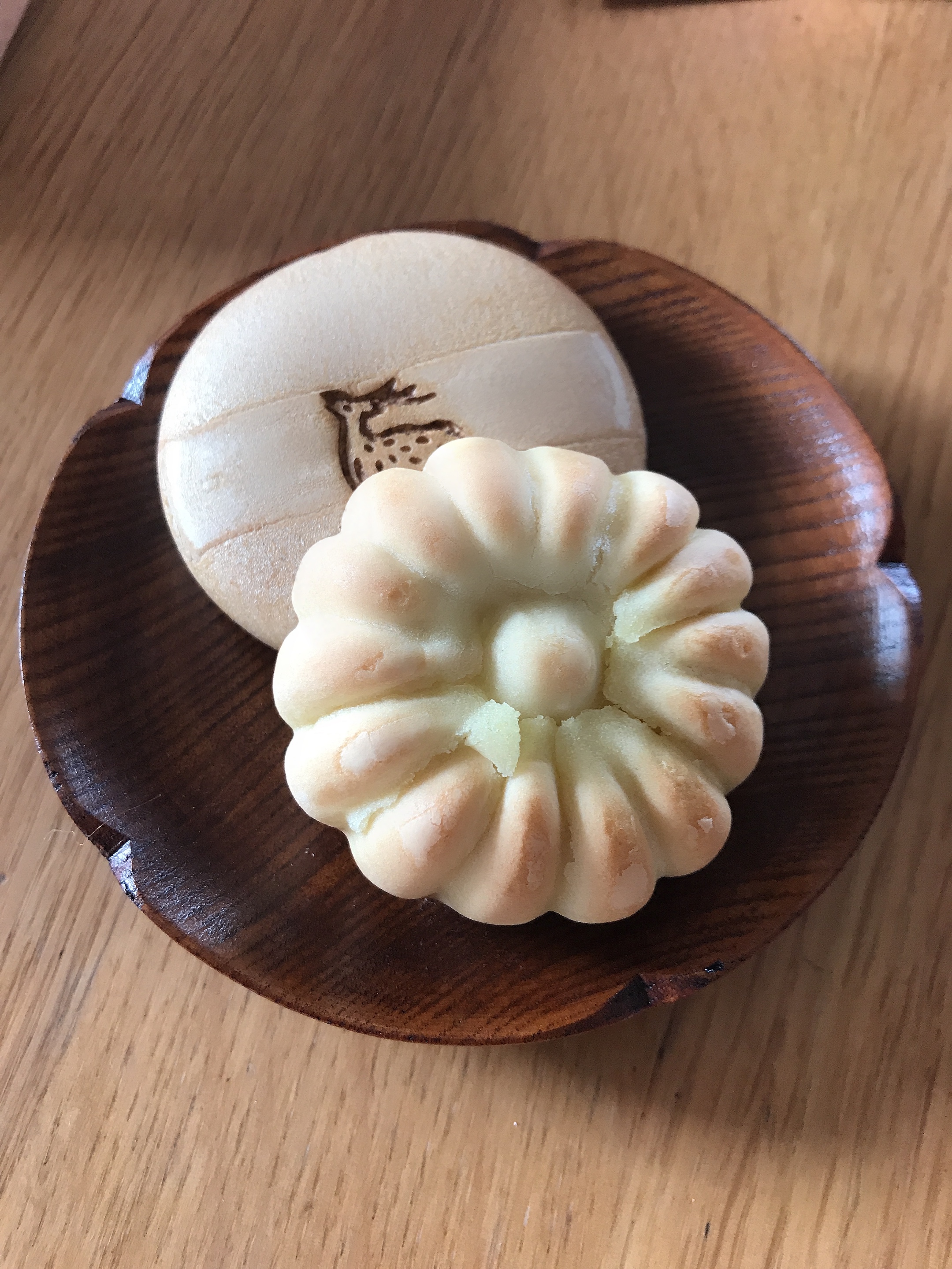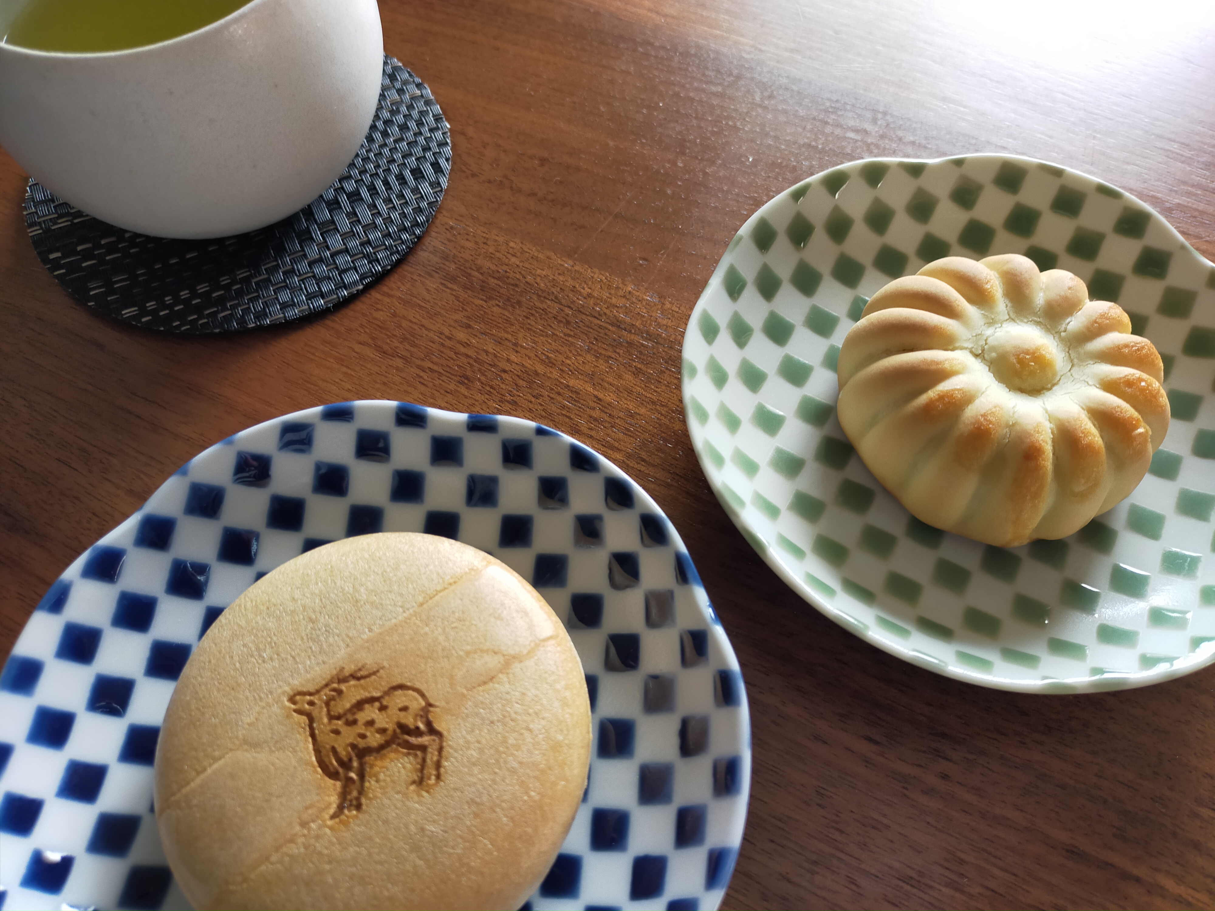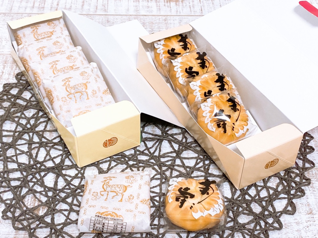 緑茶だけでなく、コーヒーなどとも相性がよいと思いました。鹿最中に関しては、かわいい鹿の焼印入り。上品な薄紙にも鹿の絵が入っています。丸い最中の中には滑らかなこしあん。サクサクの最中の食感と餡のバランスがよかったです。甘すぎず、とても上品なお味でした。大きさもちょうどよいかと思います。
