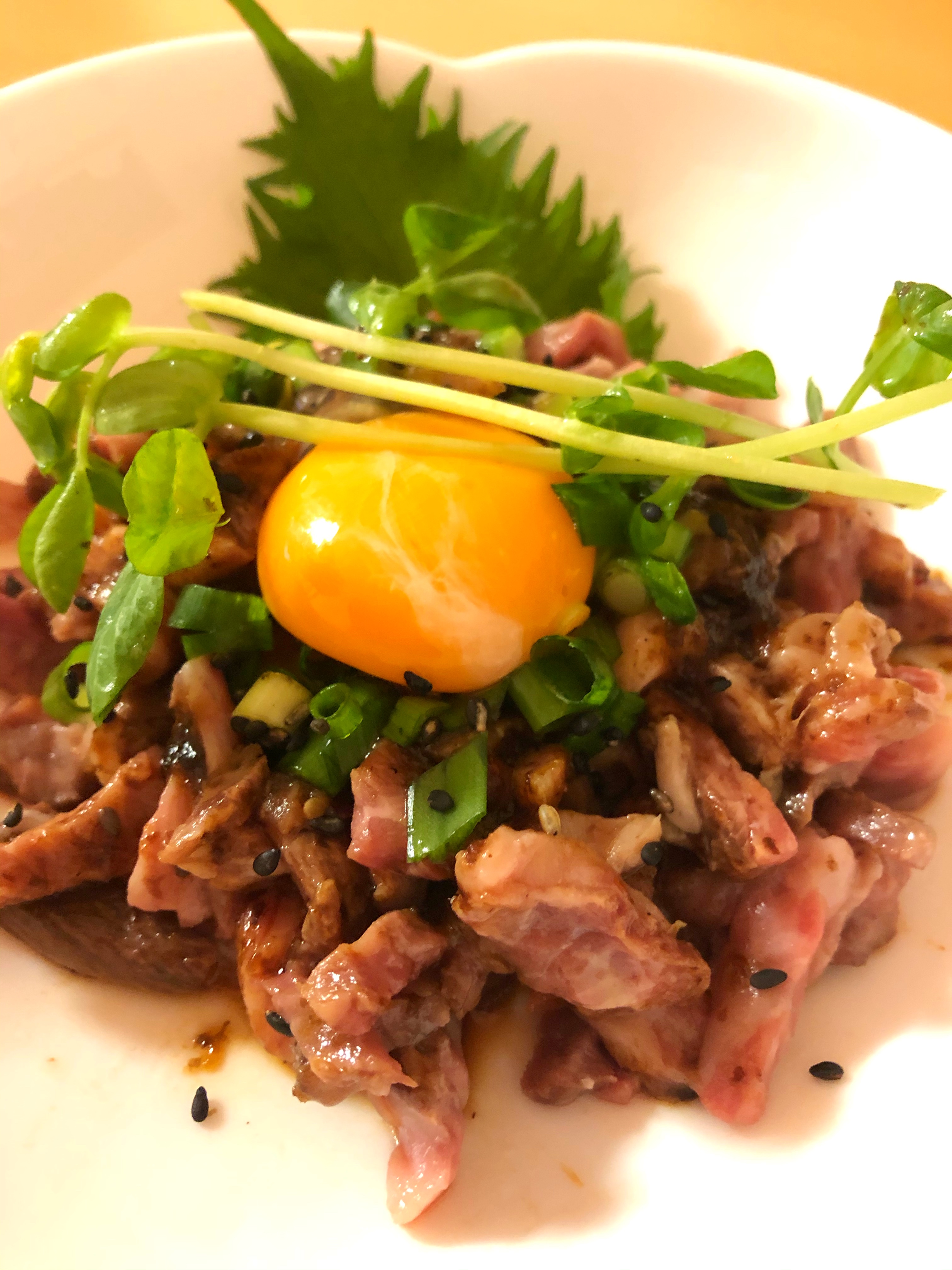 ※ご飯に乗せてソ-スを多めにかけていただくとユッケ丼になります。