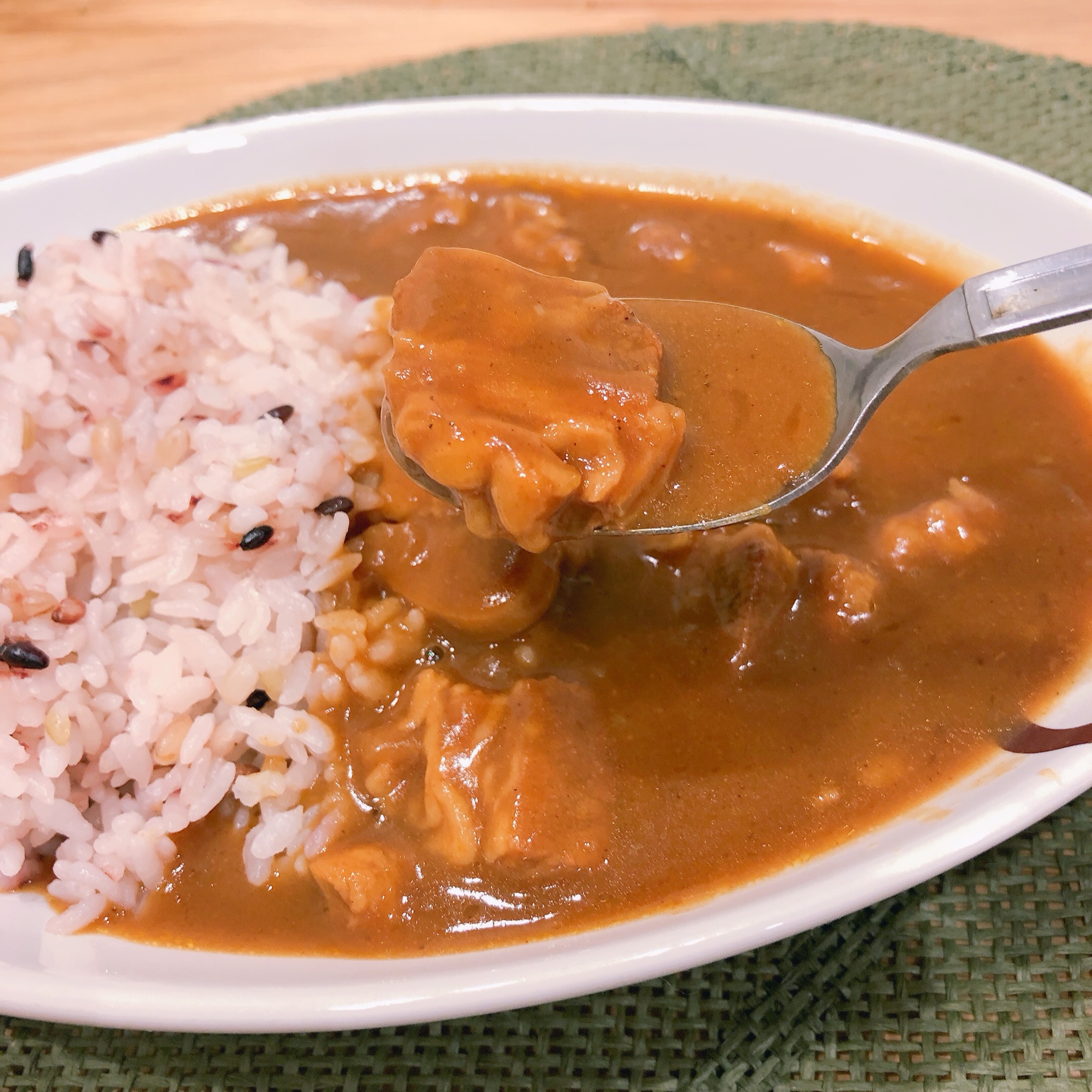 「レギュラー」はコクがありながらもさらっとした食感のカレーソースで、ごろっとした牛肉がたっぷり入っています。「牛肉リッチ!!」という文字が箱に書いてあるのですが、まさにその通りで豪華な感じがします。