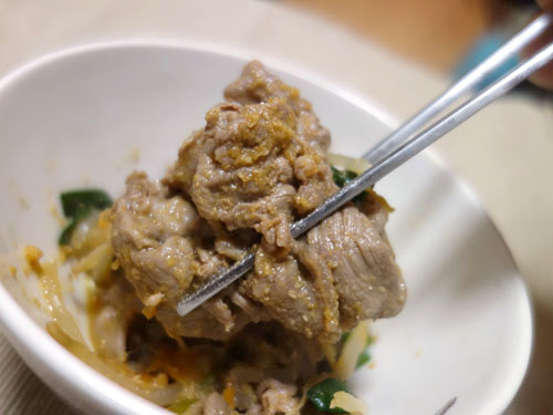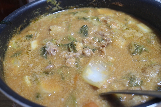 まずはお野菜を煮てその後お肉を入れるのですが、我が家のお鍋が小さくパンパンになってしまったのが悔やまれます。