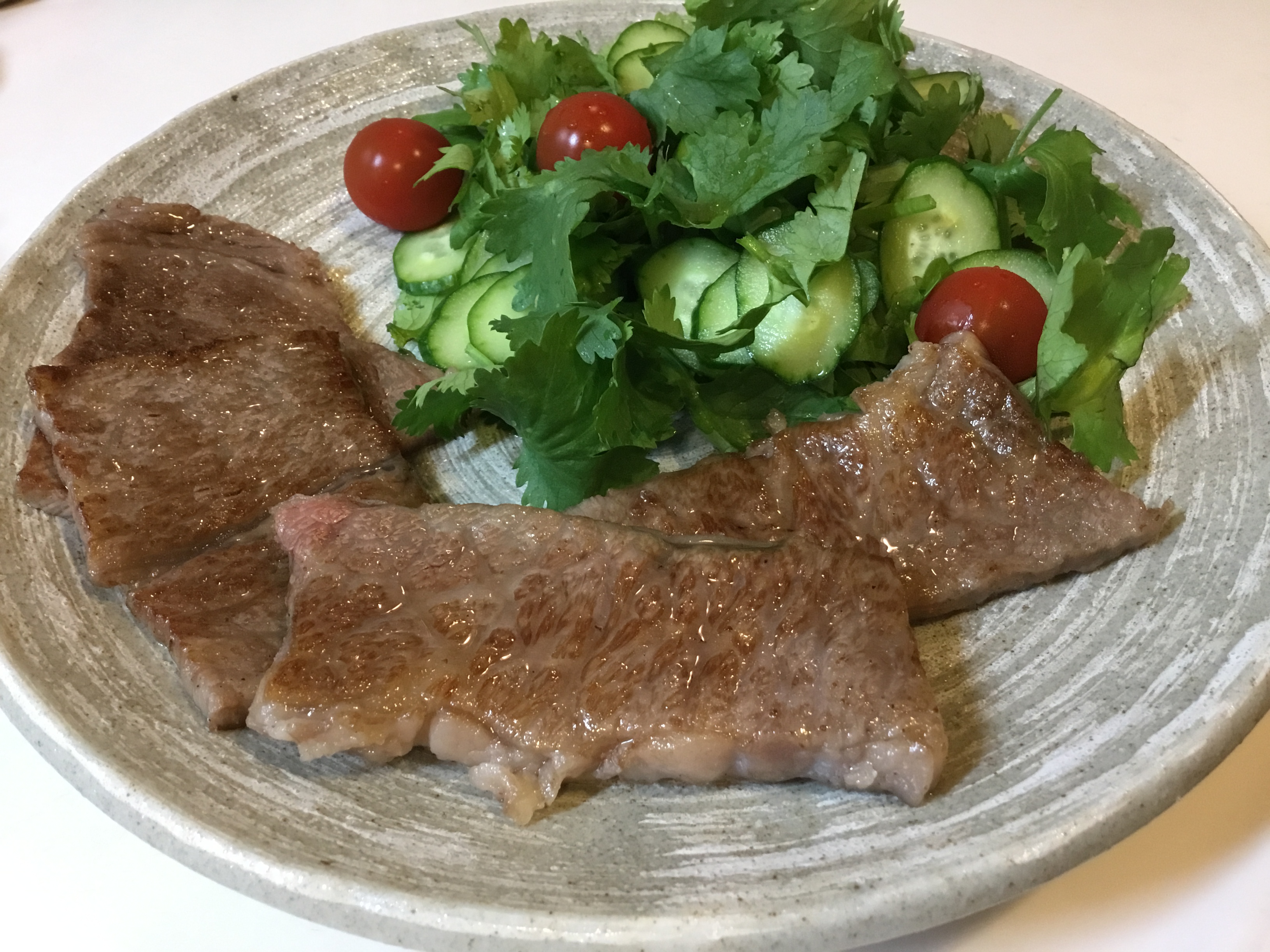 綺麗なサシの入ったお肉から溶け出す脂に最初はびっくりしましたが、とても綺麗な透明の脂で、冷めても白くならず、さらっとしていて後味もよく、しつこさを感じません。