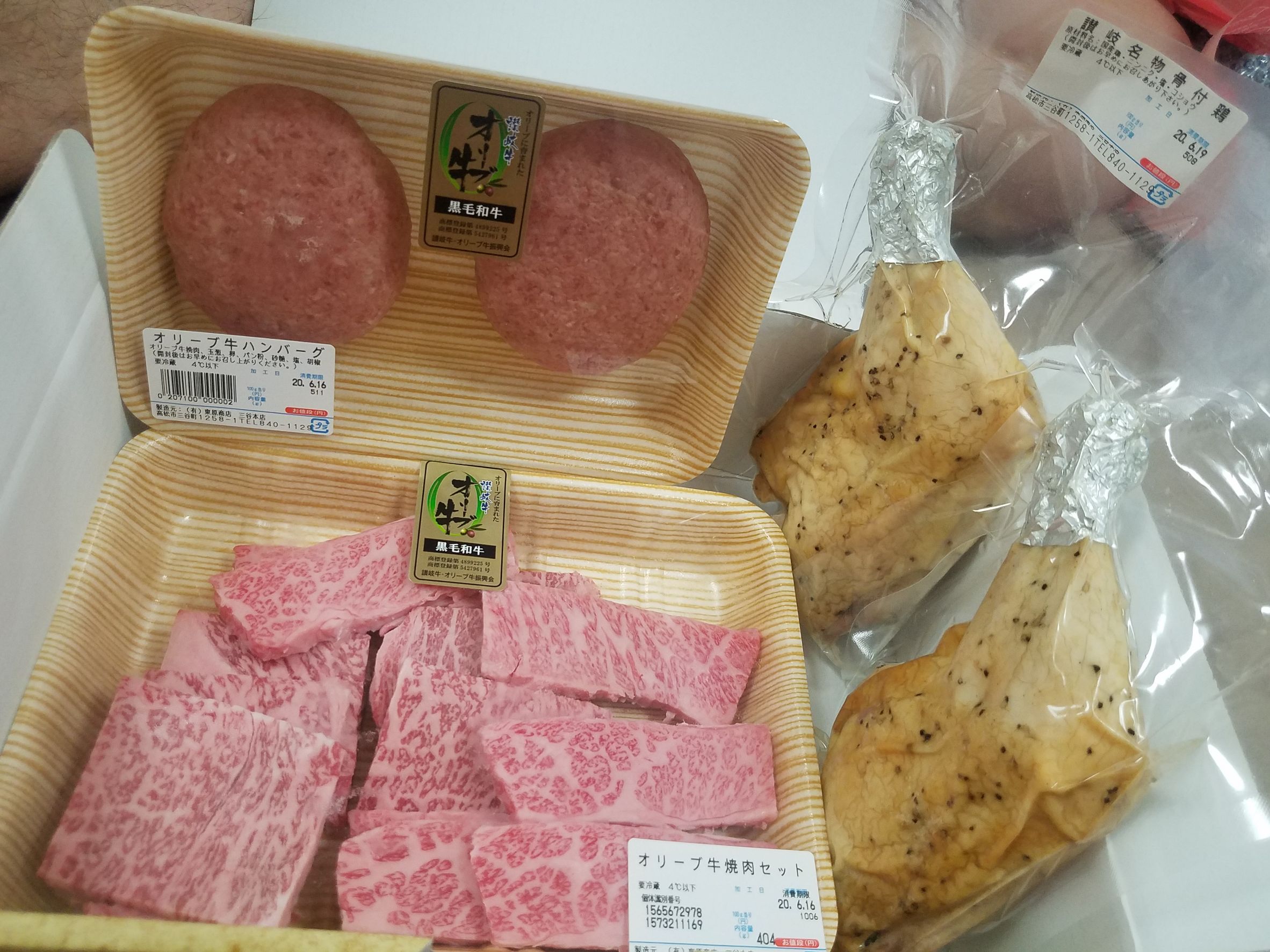 まず箱を開けてびっくりしたのが、カルピとロースのとっても綺麗なサシ!!そしてハンバーグの肉厚感と骨付き鶏の大きさに更にびっくり!