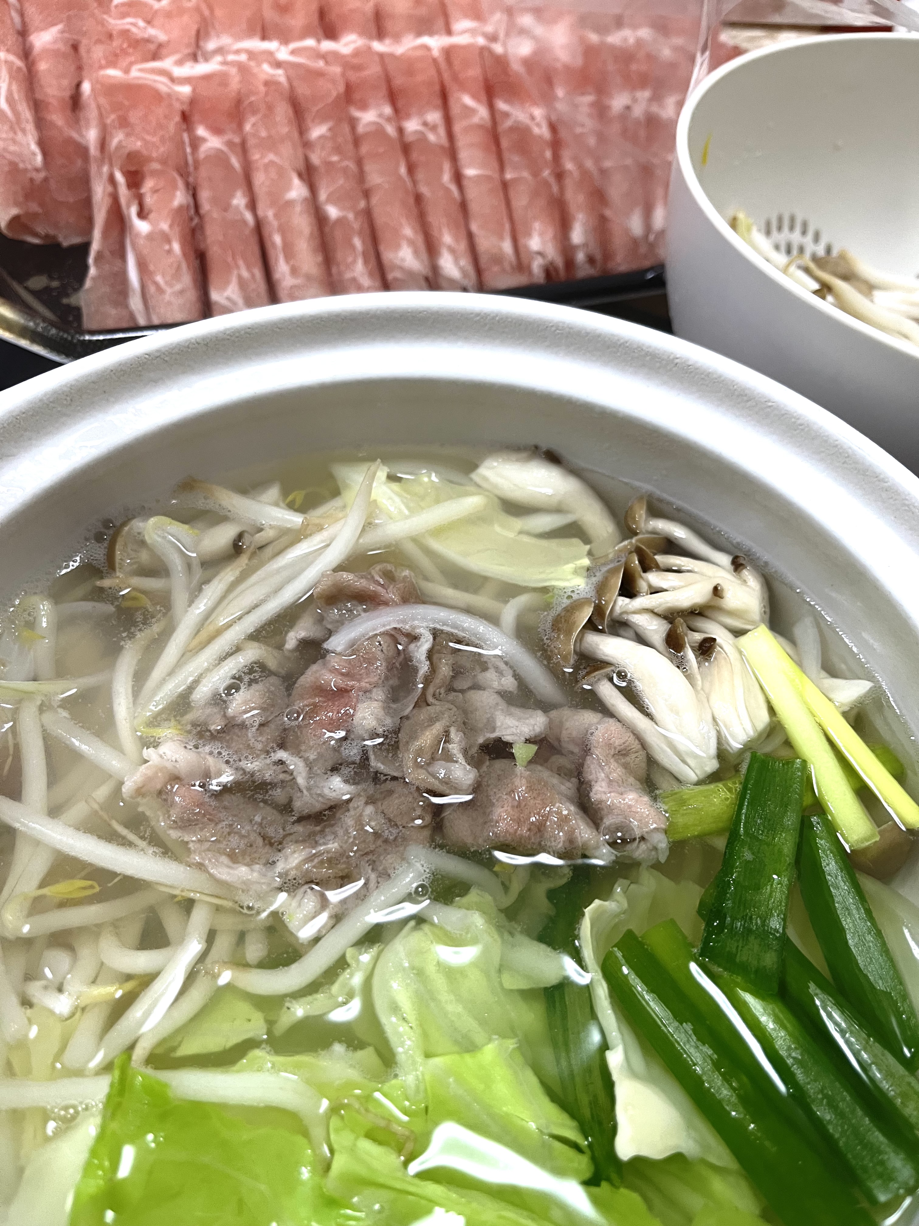 ケチケチせずに、何枚も重ねてしゃぶしゃぶをしましたが薄くスライスされているせいかすぐに熱も通り、あっという間に良い色に!