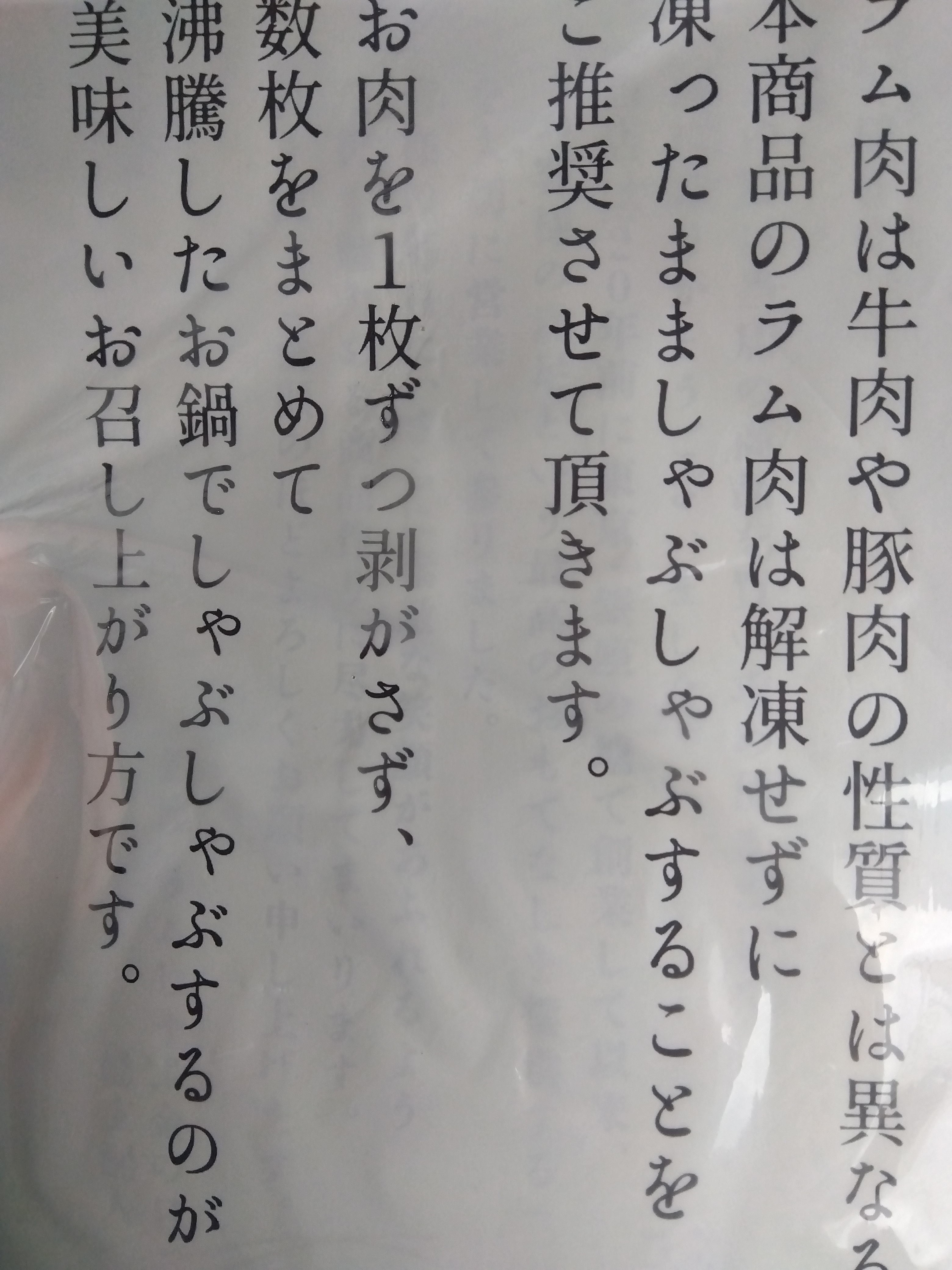 家の近くのスーパーにはしゃぶしゃぶ用の生ラムが置いていますが、以前購入した時はしゃぶしゃぶ用と書いてありながら厚みがあり食べにくく、少々臭みもあり、北海道で食べる生ラムとは大いに違いがあり、「いつでも食べれる」というのがなくなってしまいすごく落ち込んでいました。