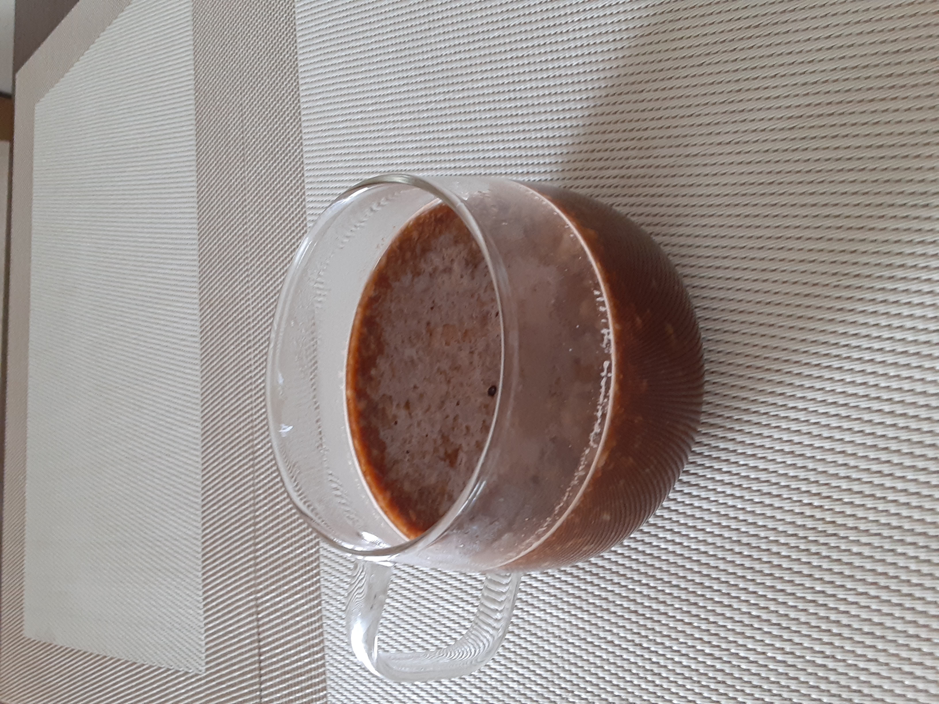 翌日のティータイムには、温めた甘酒の中に、インスタントコーヒー(ティースプーン2)と無糖ココア(ティースプーン1)を溶かして、カフェモカ風にして頂きました。甘酒自体の甘みがあるので、砂糖不要、勿論牛乳不要。身体にやさしいなぁと大満足!