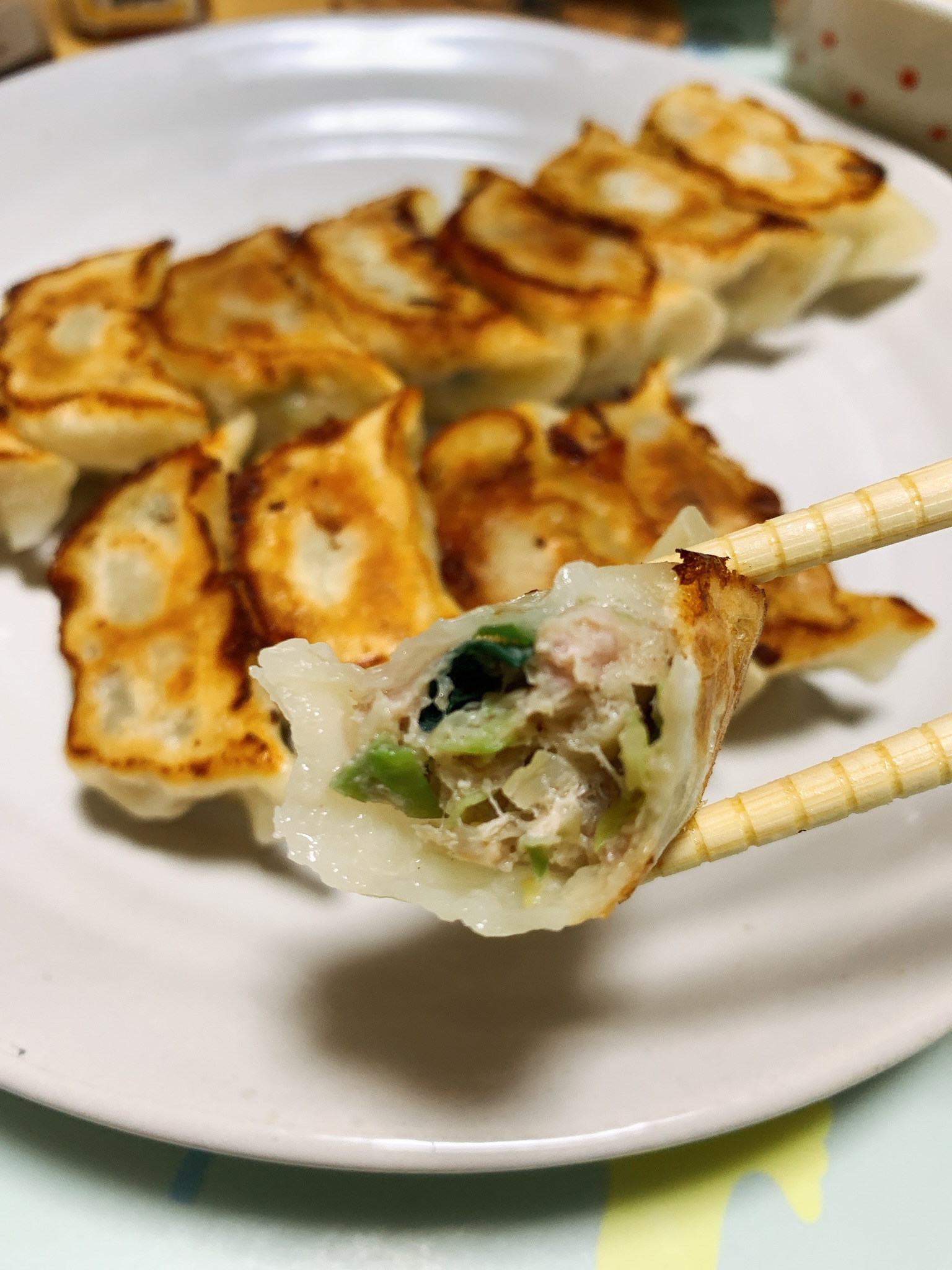 皮がもちもちで具がたくさん入ってて、噛むと旨味たっぷり肉汁がジュワ~っと!!焼きはもちろん、水餃子や鍋に入れてもグー♬私はよくキムチ鍋に入れます。うどんの素材の皮だから、全然崩れないので良いです。