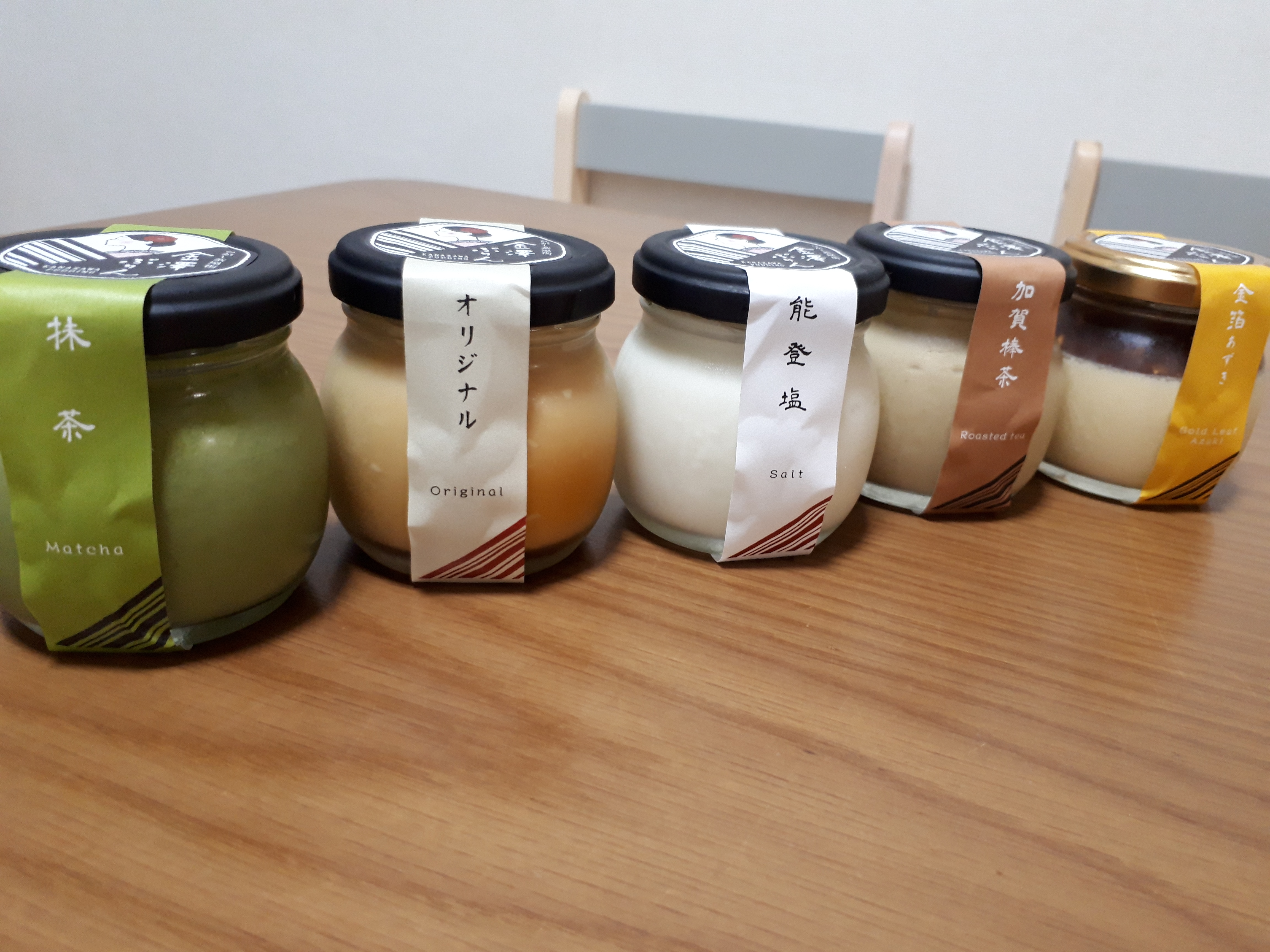 石川県の素材を使用した、なめらか・まろやか・やわらかなプリンです。5種類それぞれのお味をお楽しみいただけます。