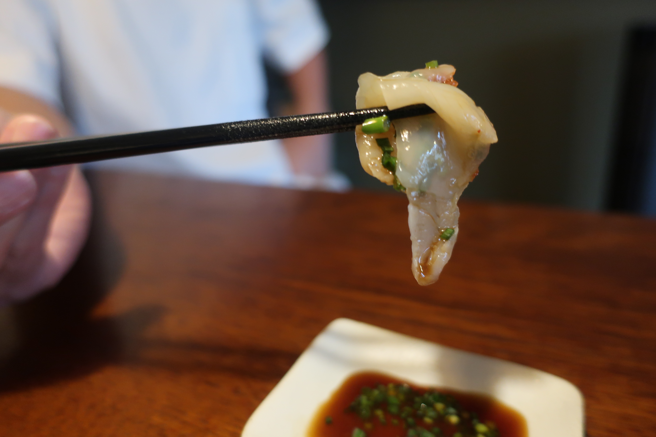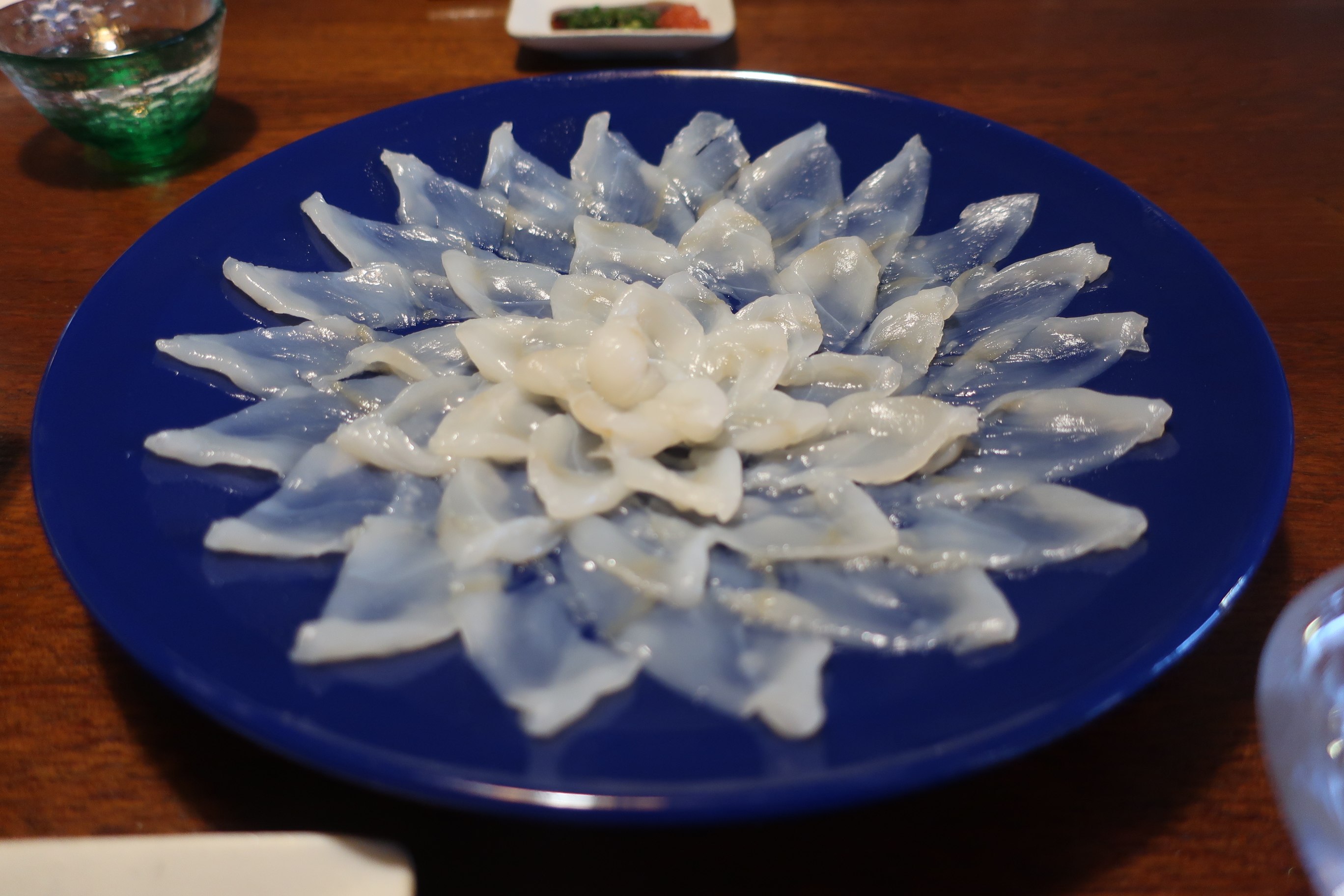 神戸に来てからも家族でふぐを食しておりますが、近年若狭や淡路の台頭で養殖ものばかり口にしていました。それがなかおさんの天然フグ刺しをいただくと絶品!薄いのにしっかりとした歯応え、まるで昆布締めのような味わい(魚に味がついている)更になつかしのポン酢味。かつての唐戸、下関大丸および阪神梅田にあったお店を彷彿させてくれました。聞くところによればかなりの大物をしっかり熟成させてからひいたものとのこと。フグは冬だけじゃない。安岡ネギで巻いて一枚、一枚味わいたいものです。ありがとうなかおさん。