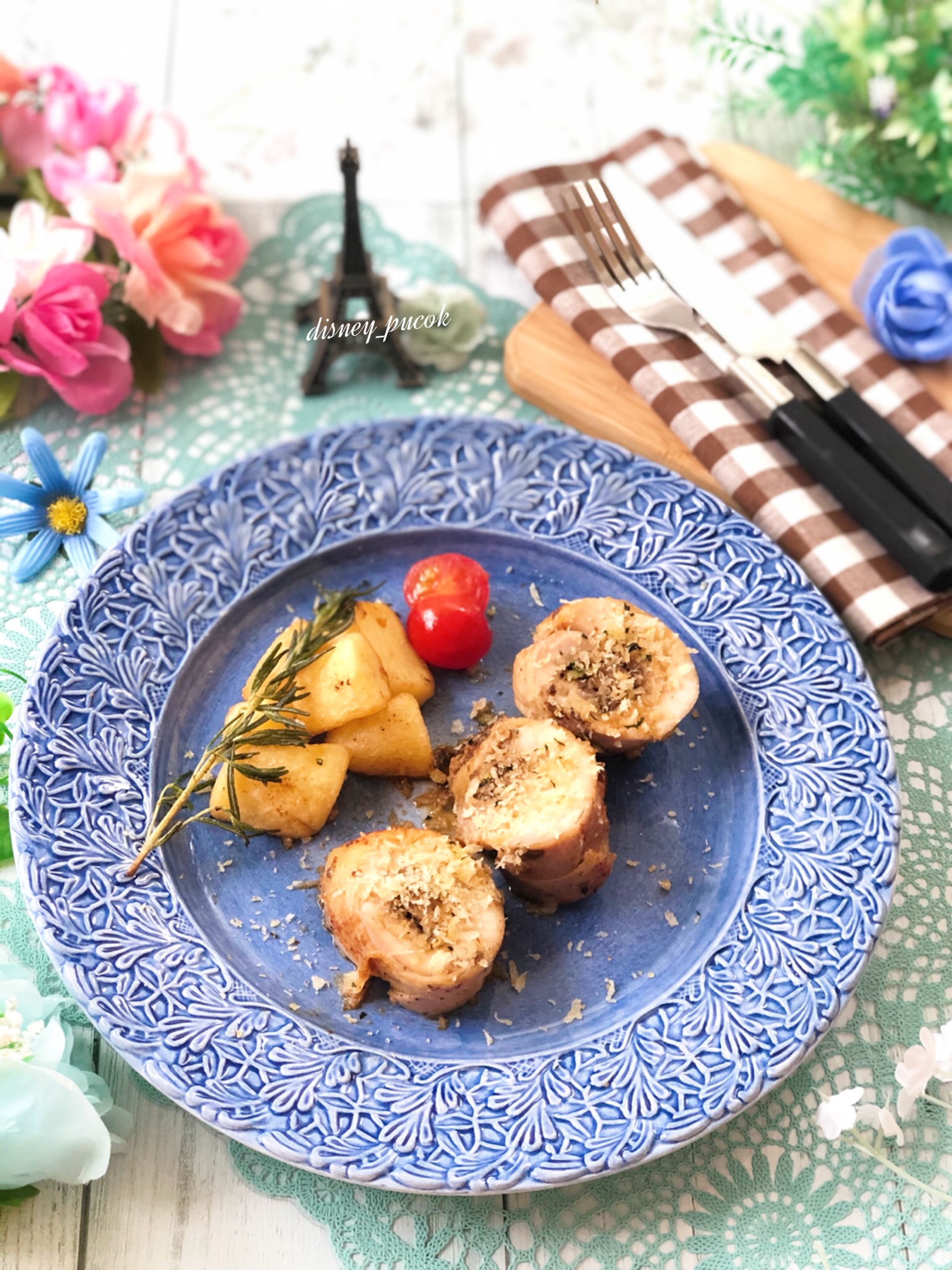 しっとりジューシーな鶏肉で、中に入ったソースの旨味を前面に吸っています。