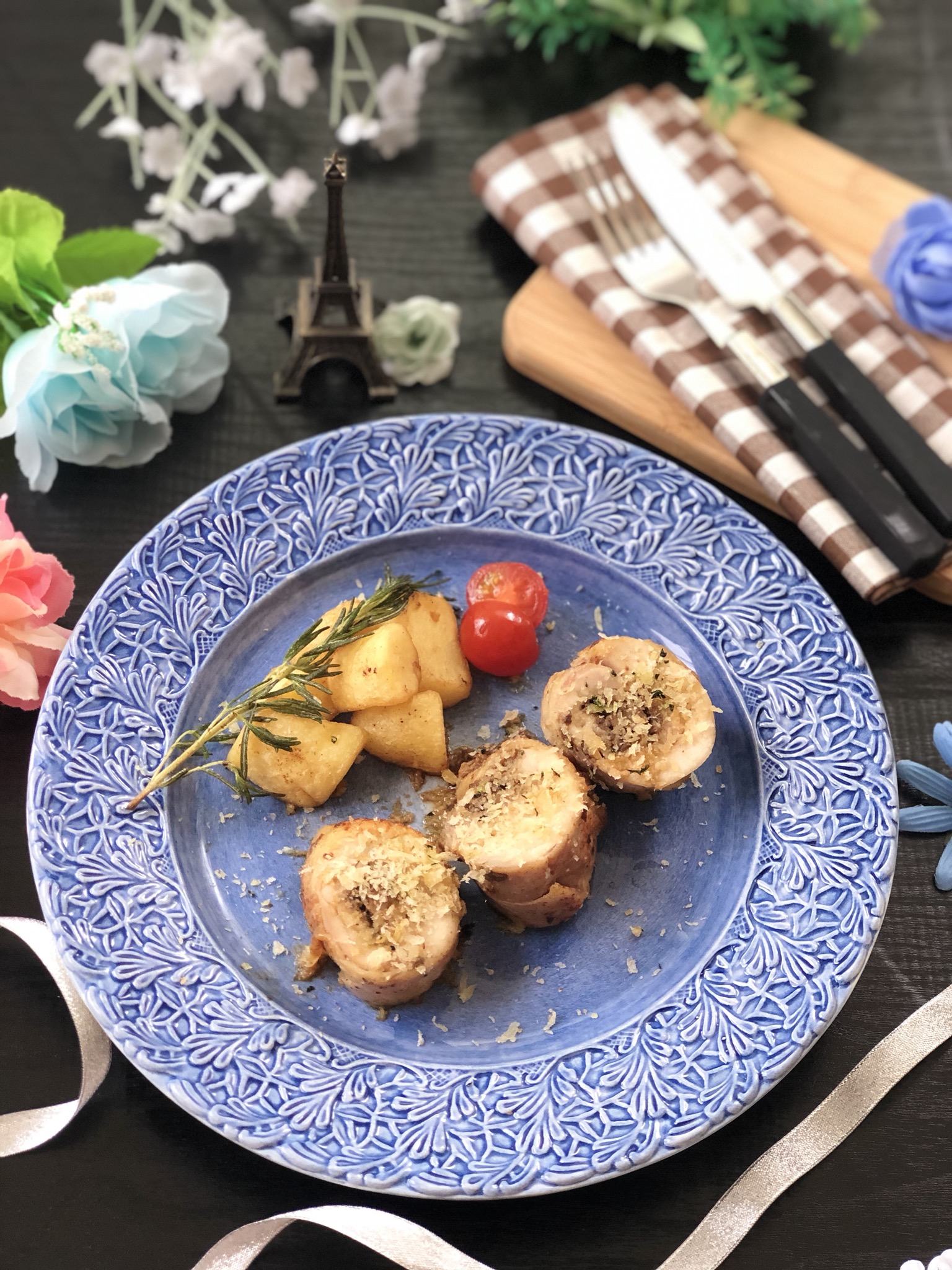 マッシュルームとポルチーニ茸を詰めた日南鶏もも肉のバロティーヌ
