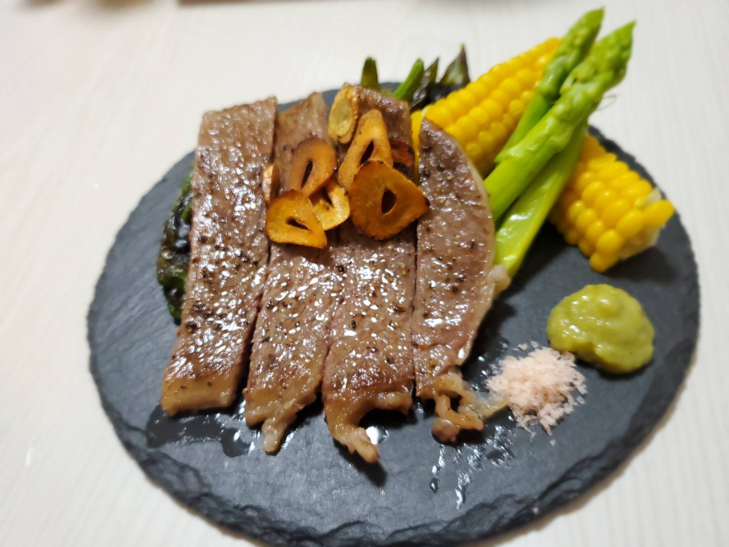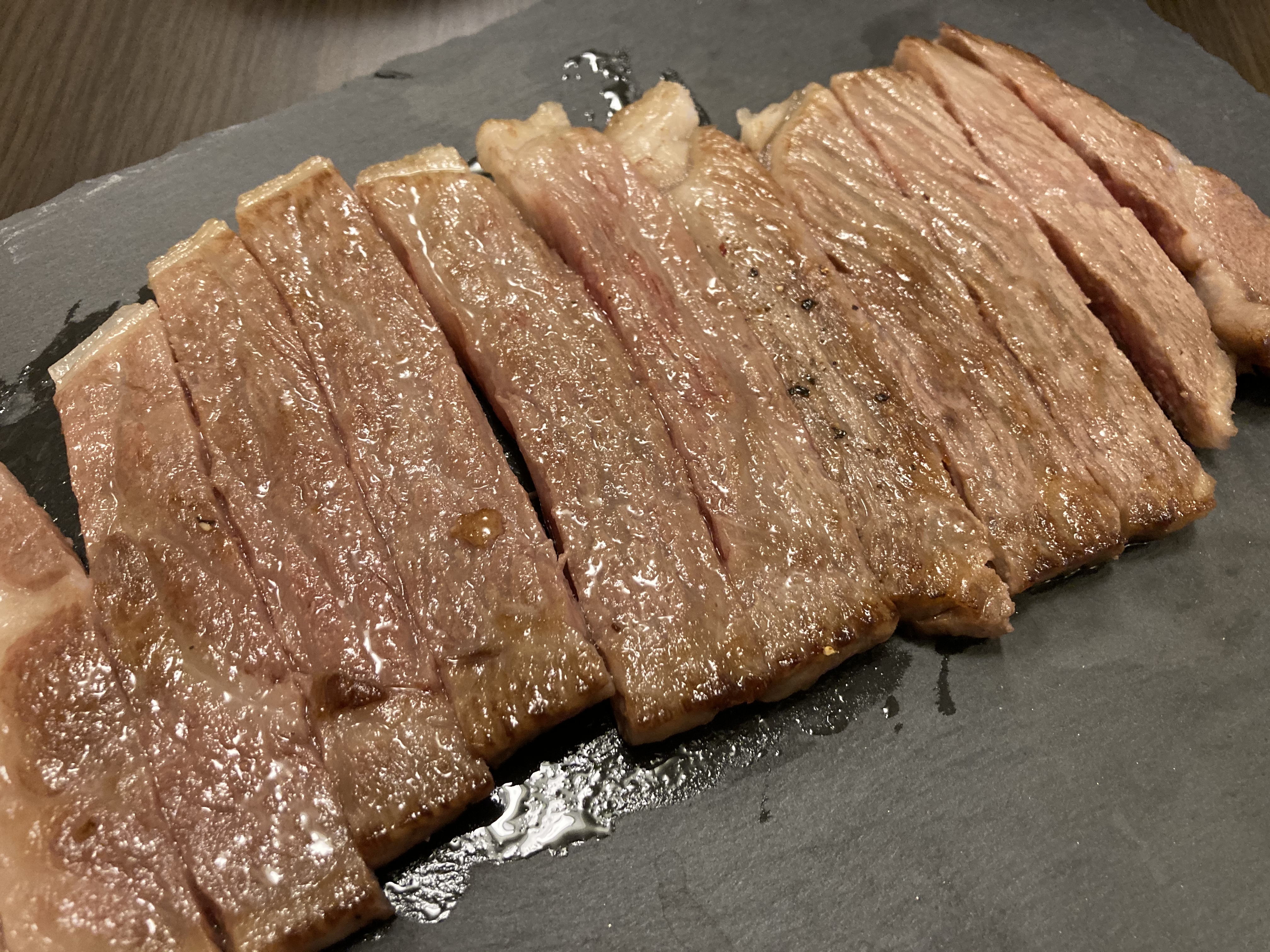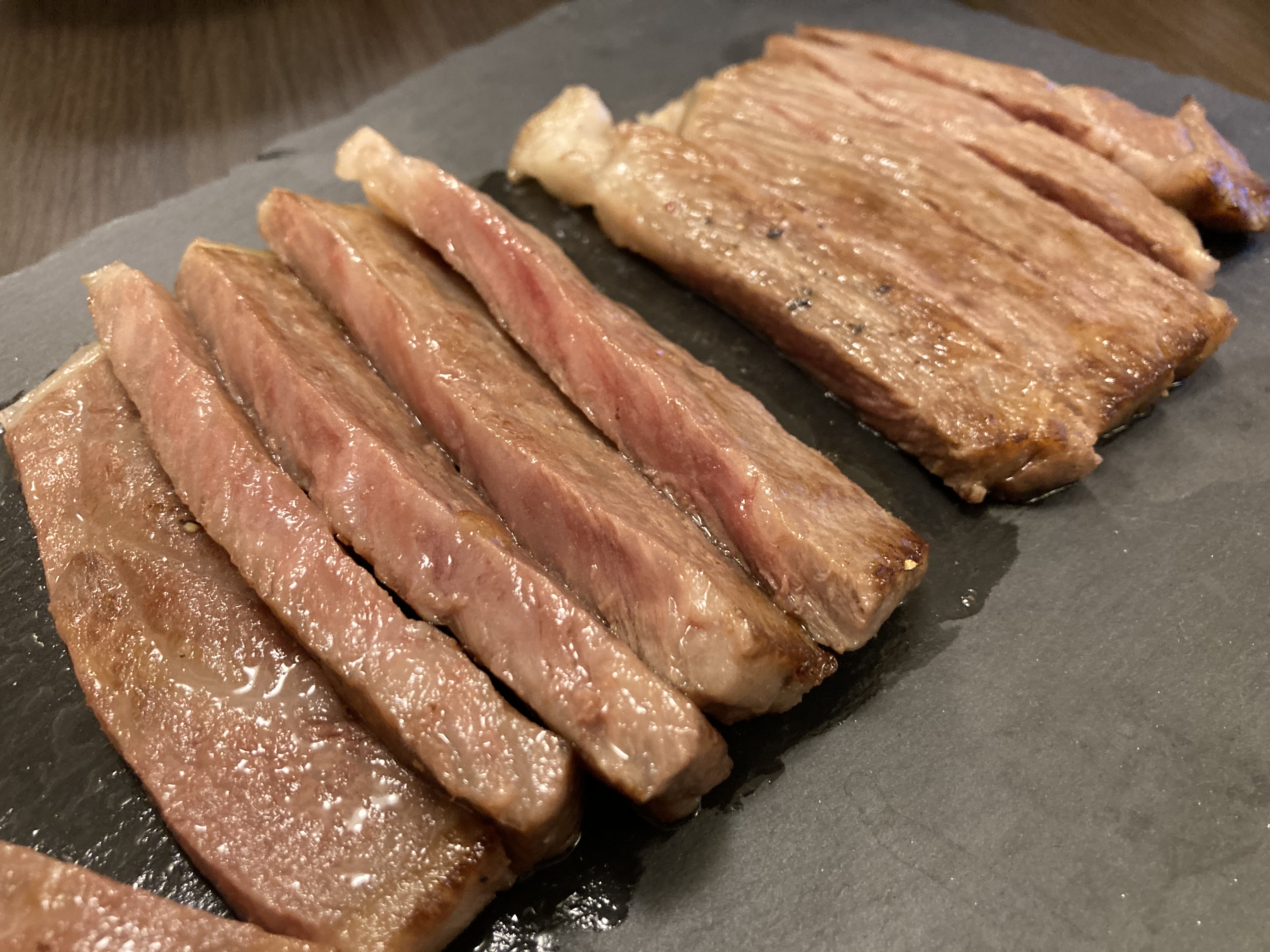 そのあとのステーキを見た瞬間、噂に違わぬ質感を感じ、食べるというよりは飾っておきたいとさえ思った次第です。