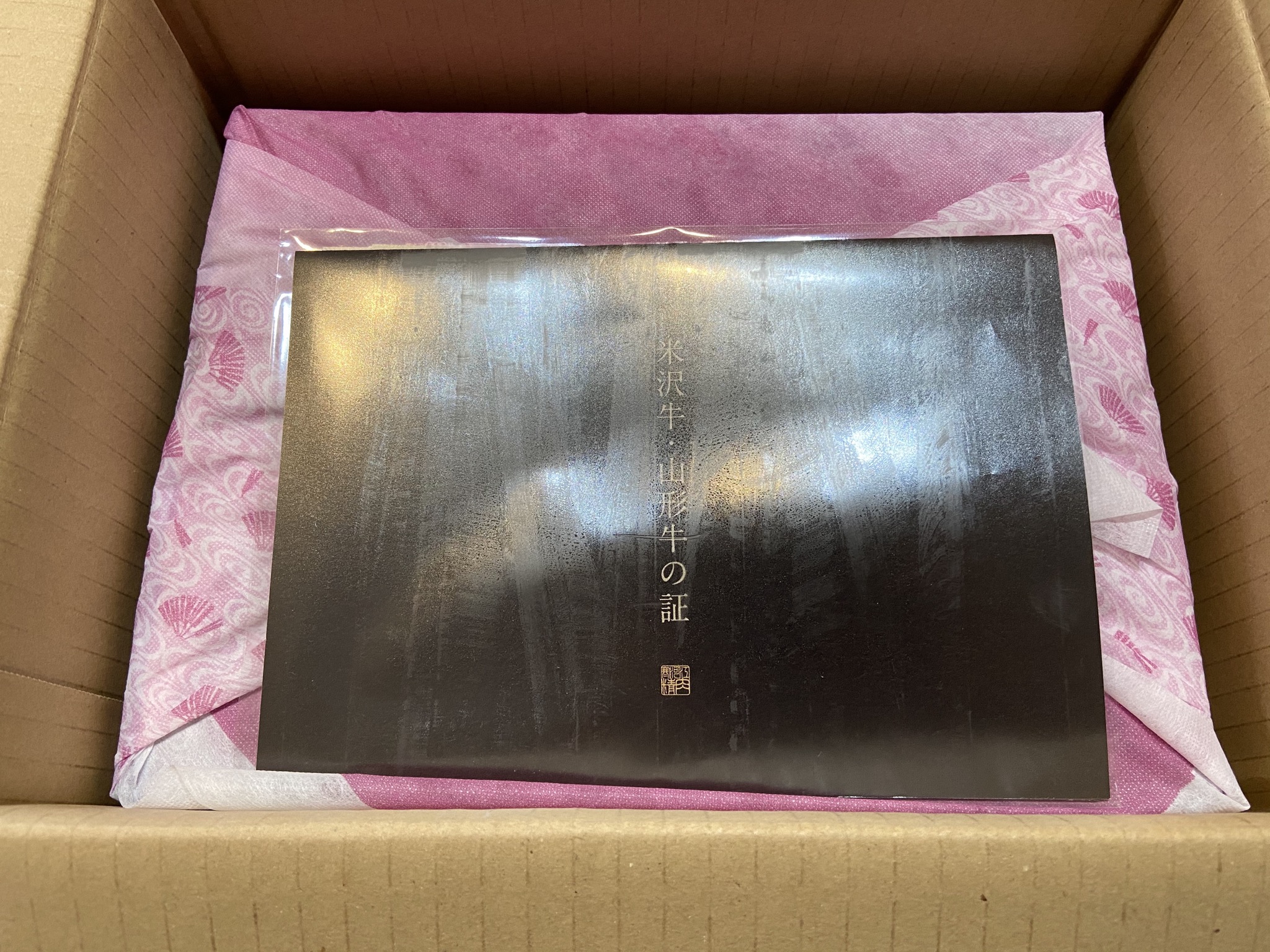 お肉は、高級感あふれる黒化粧箱に、風呂敷で丁寧に包み込んでお届けいたします。