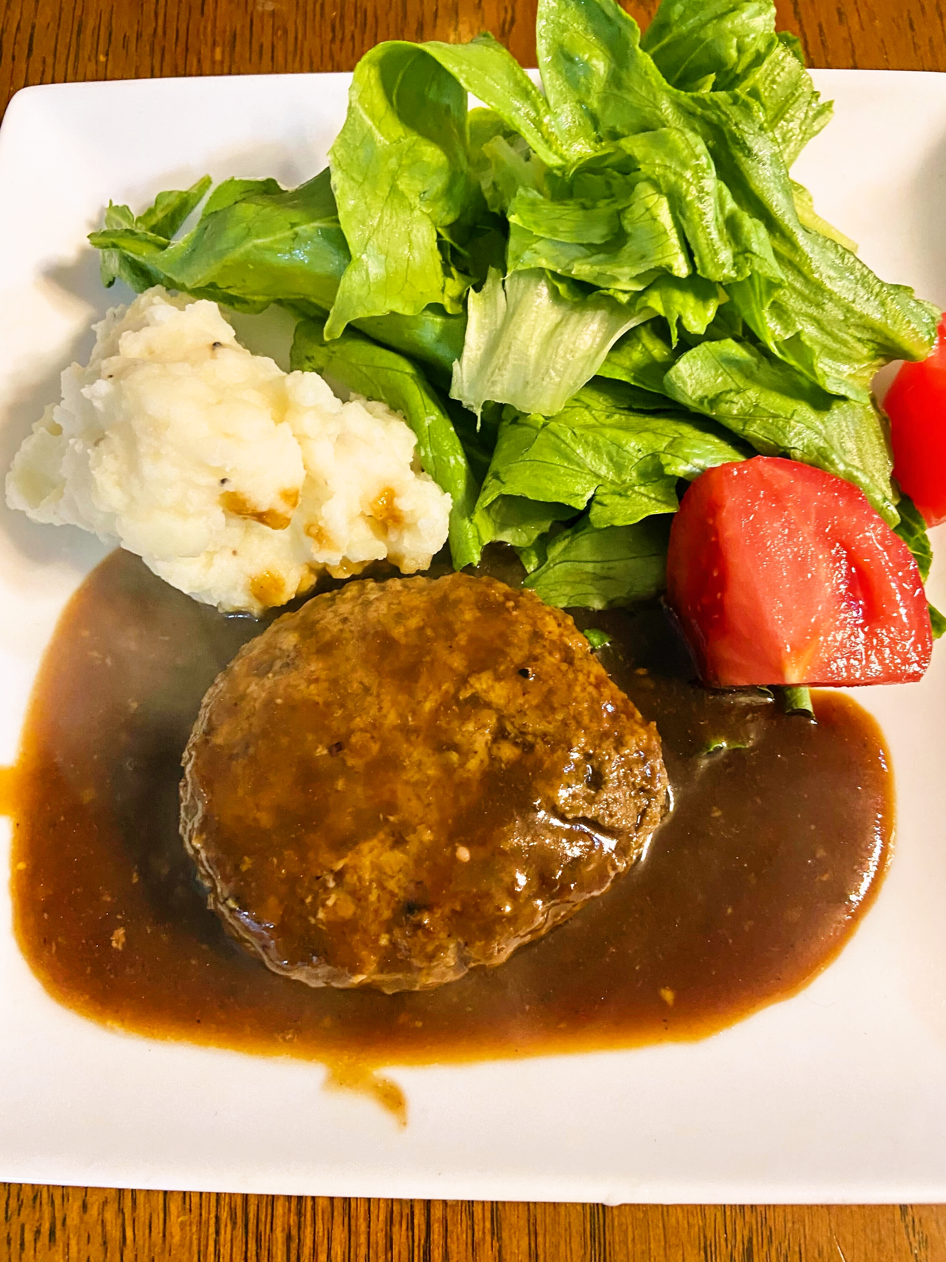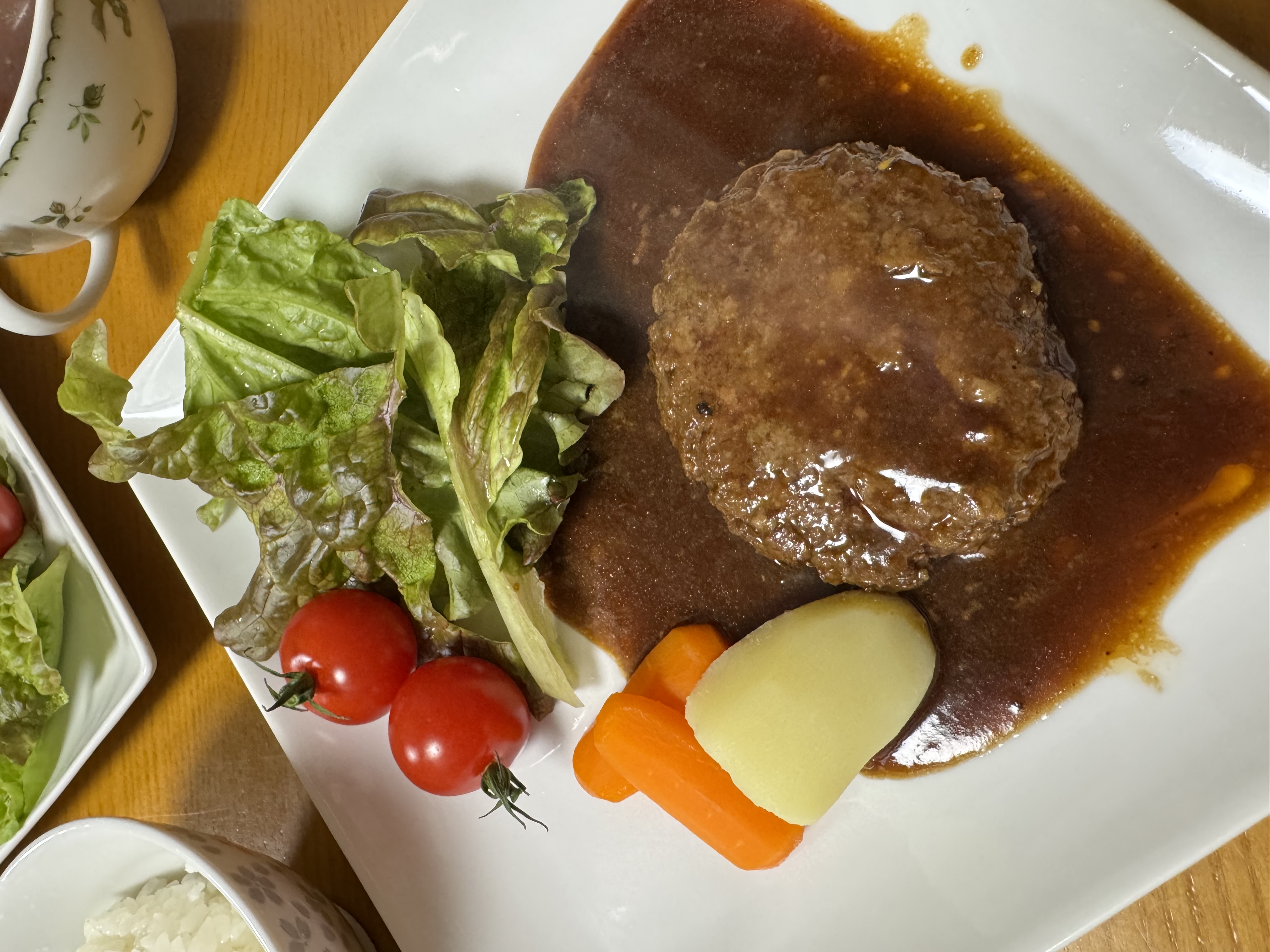 ハンバーグが思っていたより大きく、ソースがたっぷりです。