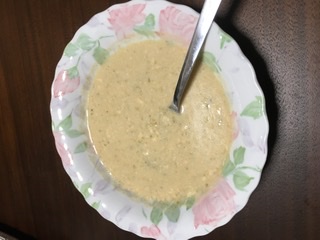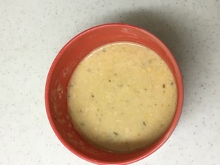 とうもろこしのポタージュは、特に粒のとうもろこしが入っているわけではなく、潰されているので馴染みすぎてあまりとうもろこしの味の主張がありませんでした。その代わり、チーズの主張がすごくもうすぐ5歳になる息子は「野菜スープだけど、チーズの味がするー!チーズスープ!」っと言っていました。