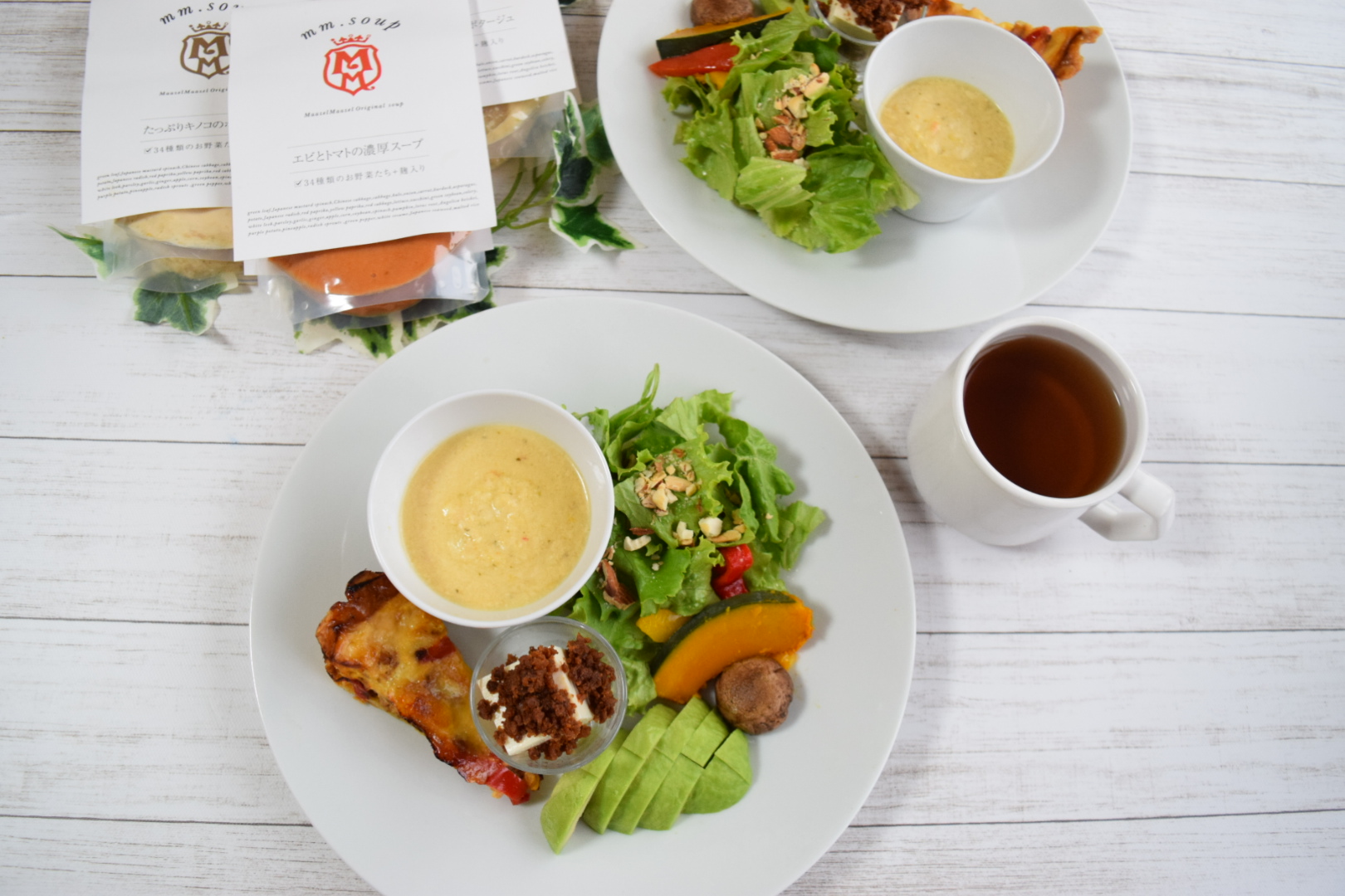 きのこのポタージュは、他の3つに比べてきのこ風味はしましたが、やはりチーズ風味でクリームスープって感じでした。