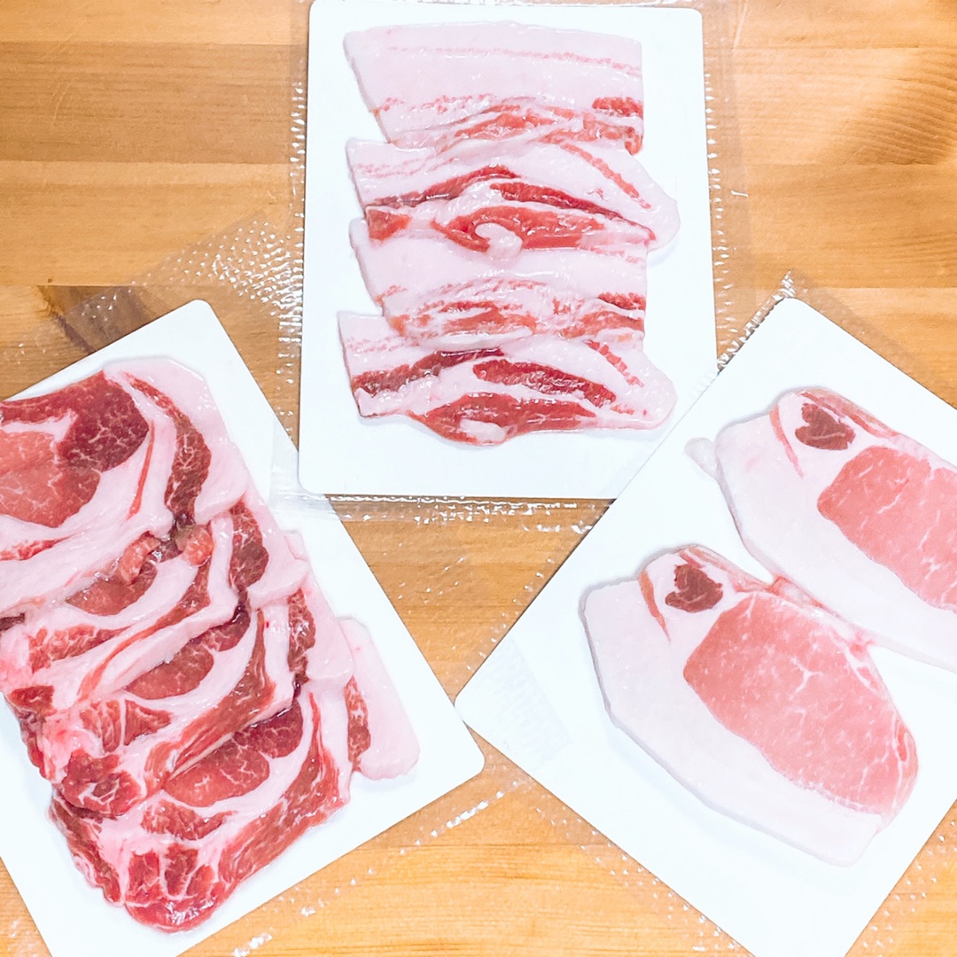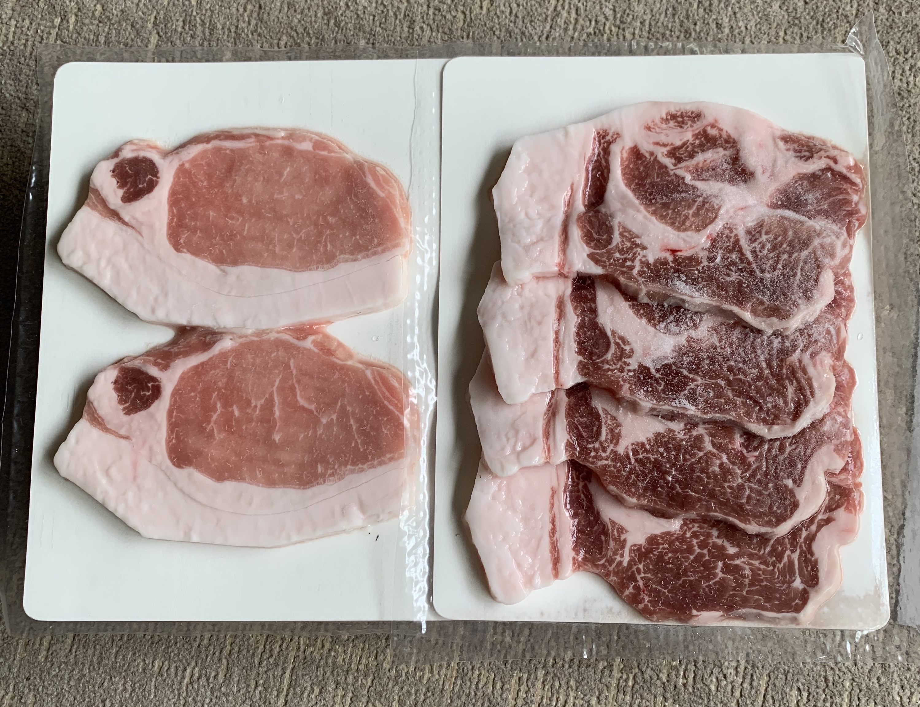 3種の中では私はやはりロースが好き。一枚の中に色んな味と歯応えのバリエーションがあるのです。これは生姜焼きでも、とんかつでも食べてみたいな。