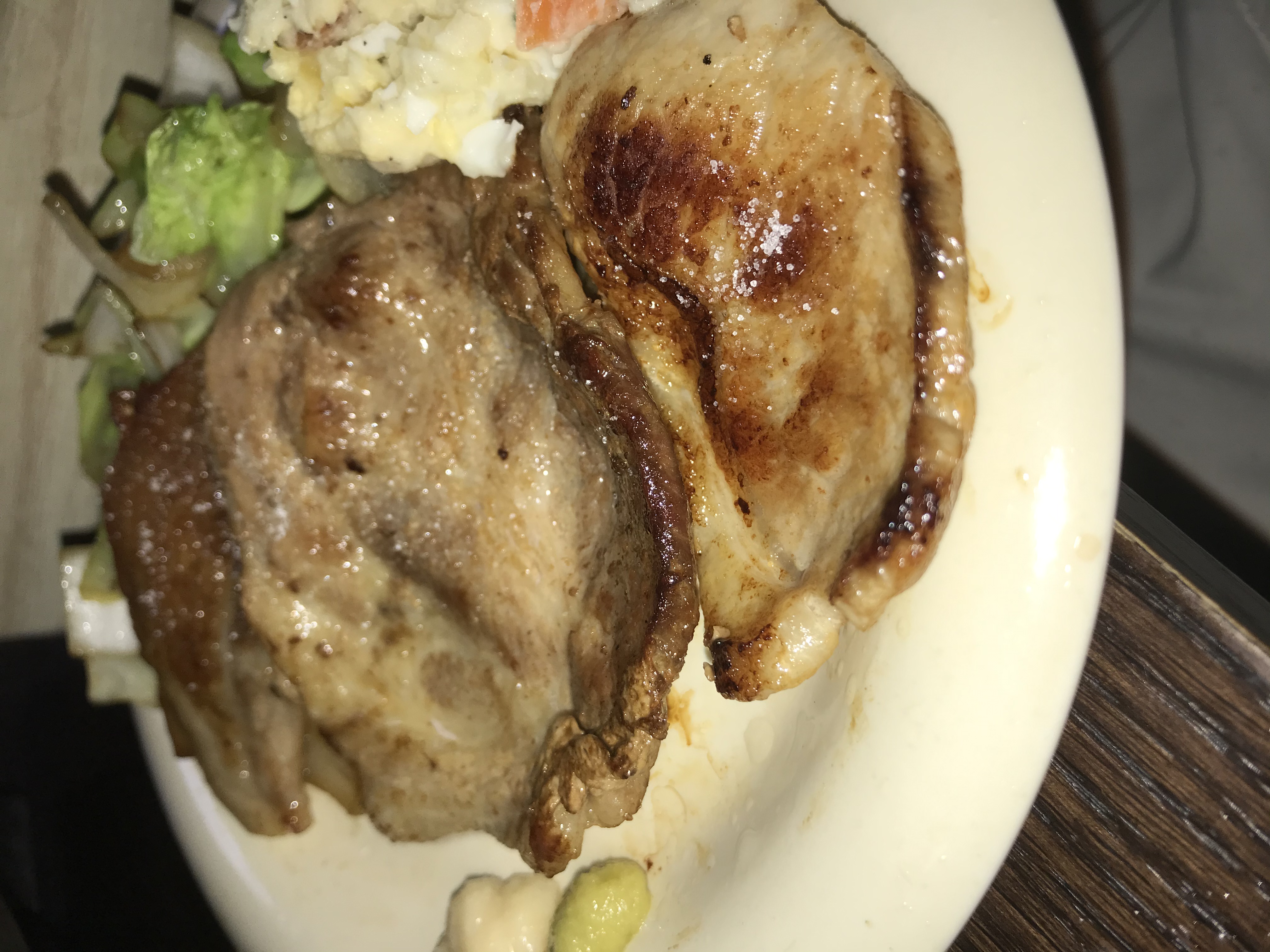 狐色になった肉はふっくらと。さあ、口に含めば、、、あっ!えっ?硬い!!でも、この硬さ嫌じゃないんです。スジ肉の理不尽な硬さでない、目の詰まった筋繊維の硬さ。噛めば旨味の沼にはまっていく。どこか懐かしい、日本固有の豚肉の味と言うんでしょうか、ピンク色のテーブルミートに慣れた口には、本当に新鮮です。