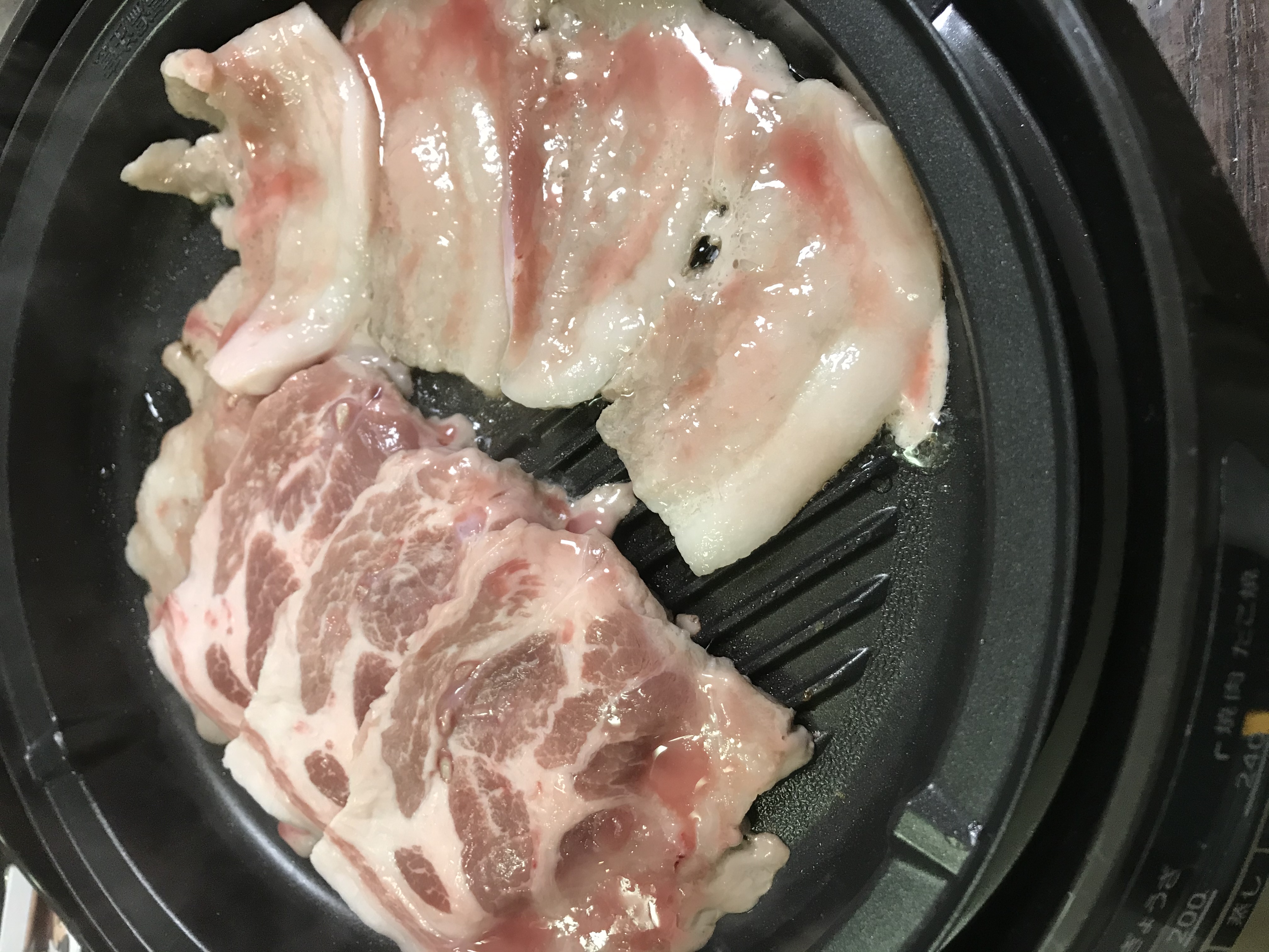 真っ白い脂肪と赤身のコントラストが美しいです。それは、餌がヘルシーな証拠。パックを開くと、今にも脂が溶け出しそう。きめ細かい肉の肌が、箸やトングに貼り付いてきます。鉄板に乗せると、直ぐに溢れる脂と肉汁。熱に煽られる肉は、立ち待ち溺れそうに。上質の澄んだラードの川が流れます。