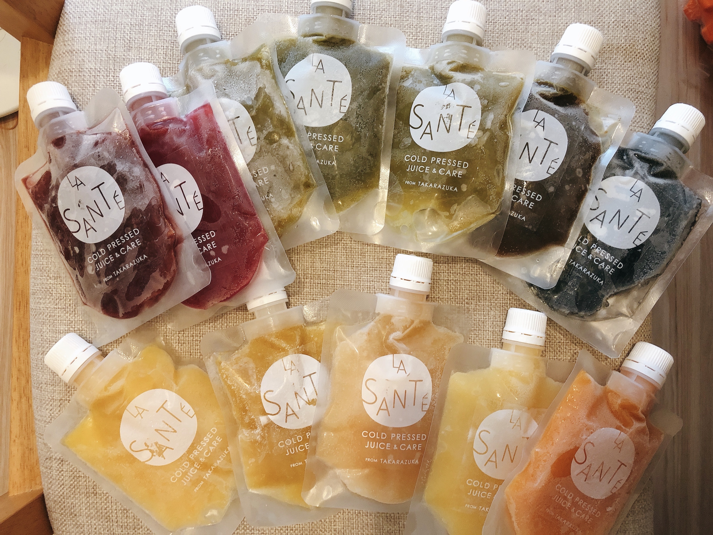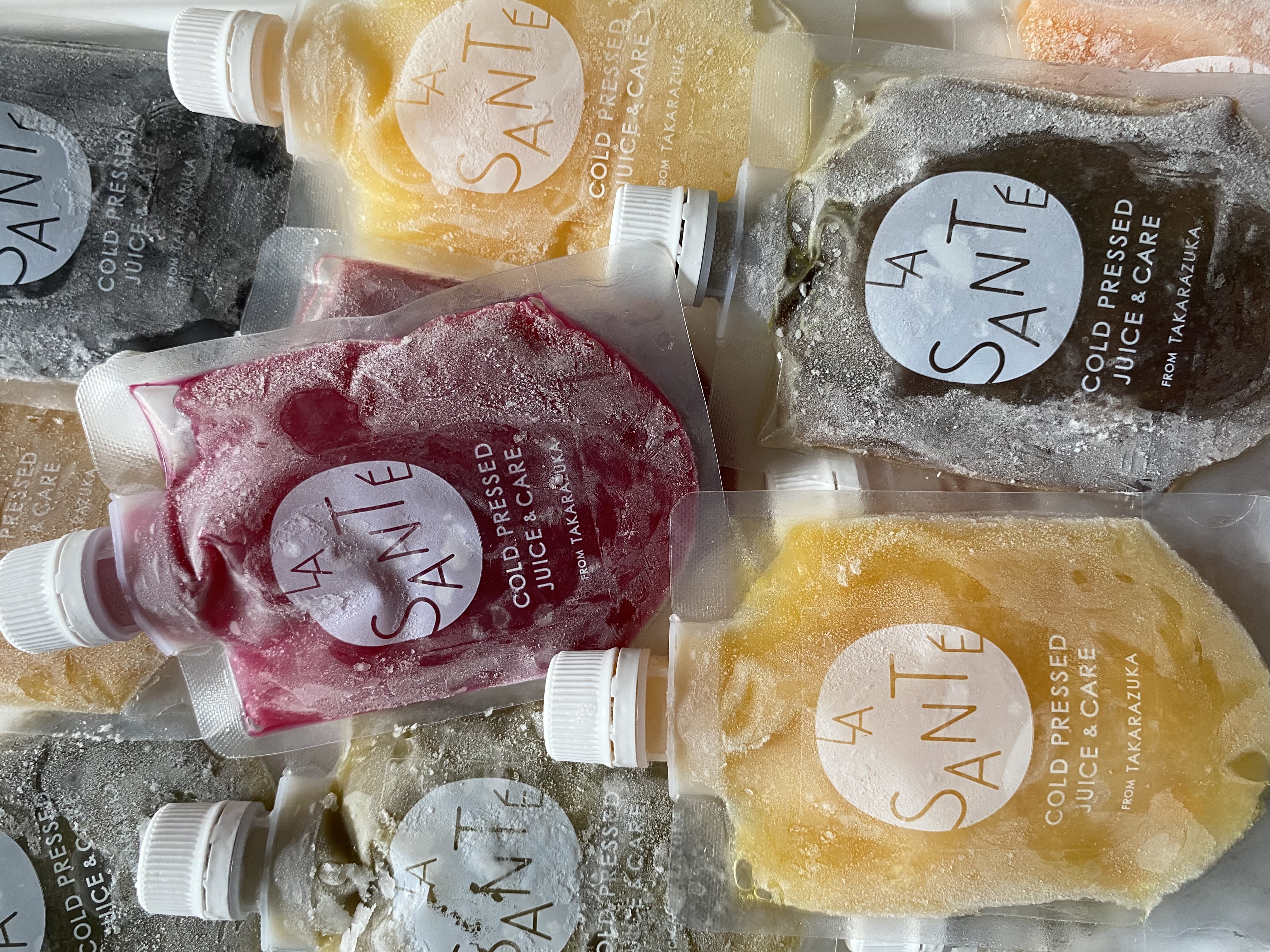 【お得な初回限定セット】は、通常価格が¥5,184(税込)のところ、初回割引の¥3,629(税込)で、お求めやすくなっています。また、冷凍パウチでお届けいたしますので、これから暑い季節は半解凍にしたりシャリシャリとお召し上がりになられたり、カラフルなコールドプレスジュースですので炭酸水で割ってお飲みいただいたりと、健康的なだけでなく写真映えする飲み物としても色々とお試しいただけます。