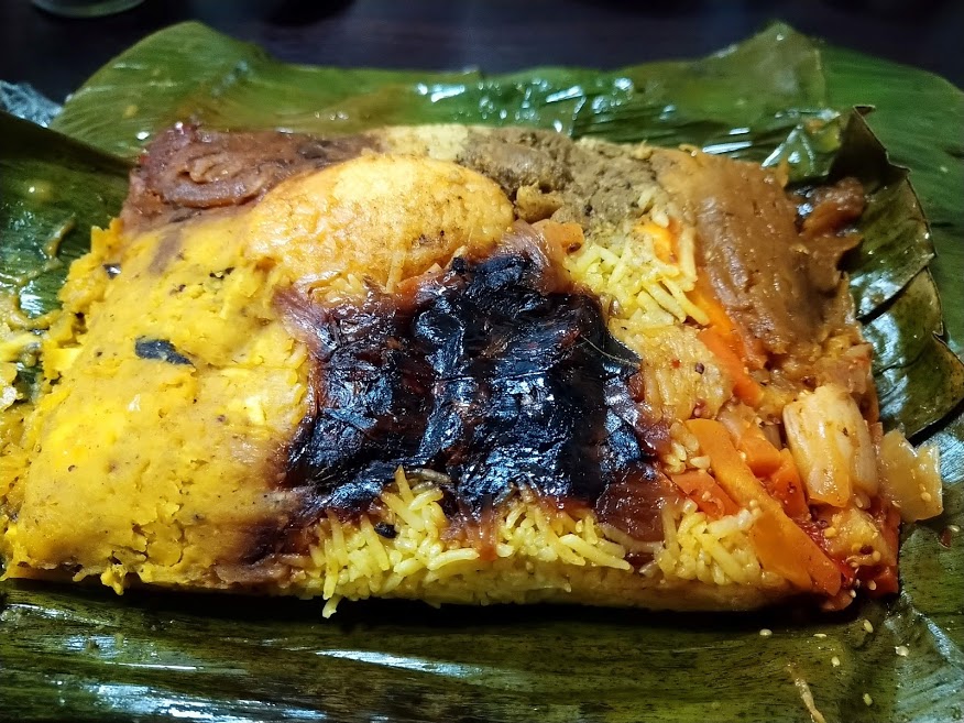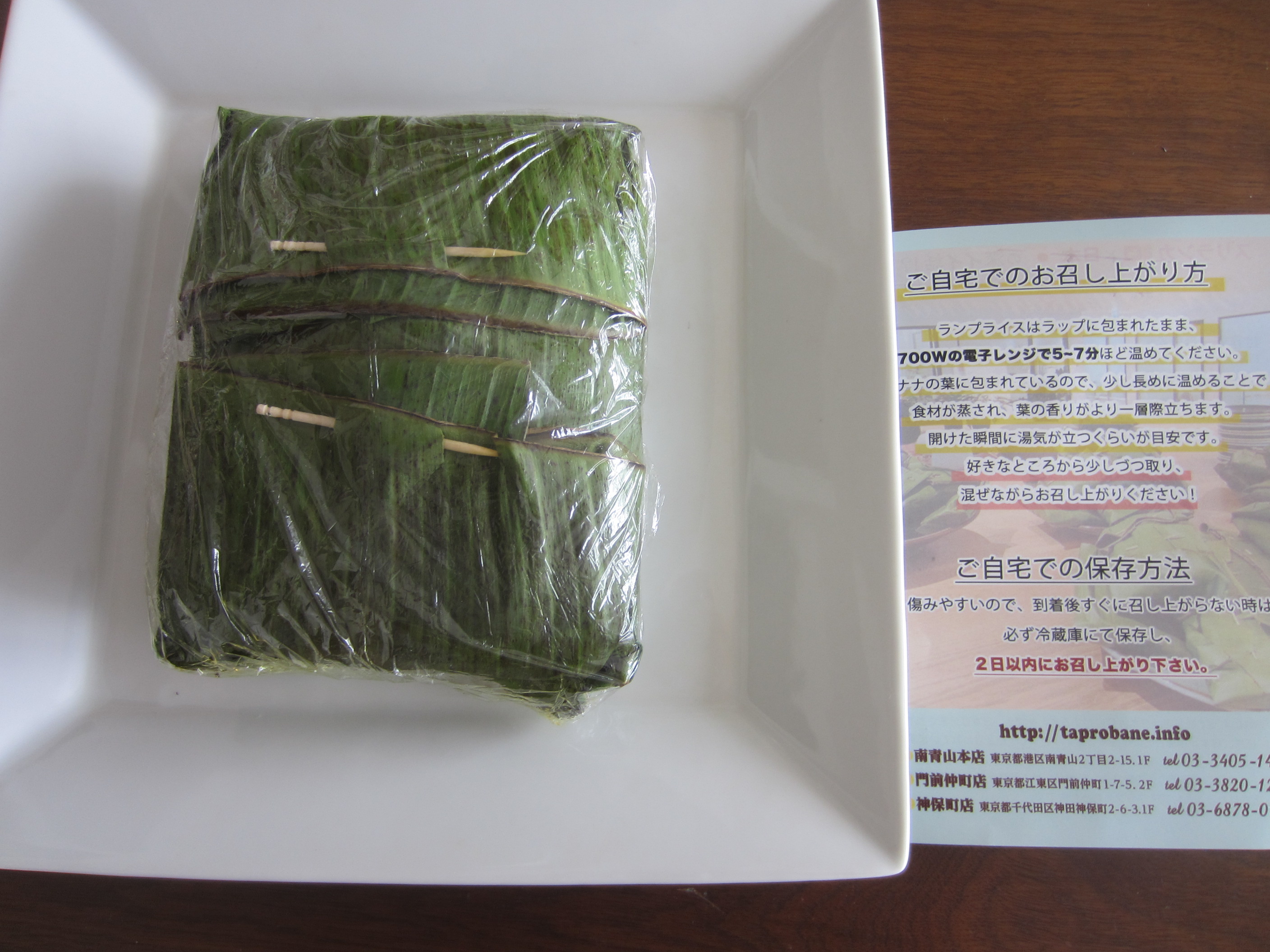 バナナの葉に包まれているので、少し長めに温めることで食材が蒸され、葉の香りがより一層際立ちます。