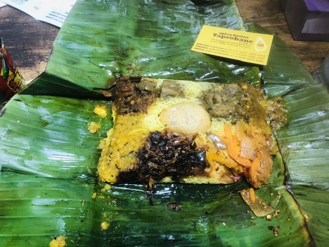まず、バナナの葉に包まれた外見にワクワクします。開けるとスパイスのよい香り!6種類のおかずがそれぞれ違った味わいで、説明書を見ながら夢中で食べてしまいました。和風の出汁の味にちかいものもあれば、フルーティーでトロピカルな雰囲気のもあり、大変興味深く頂きました。