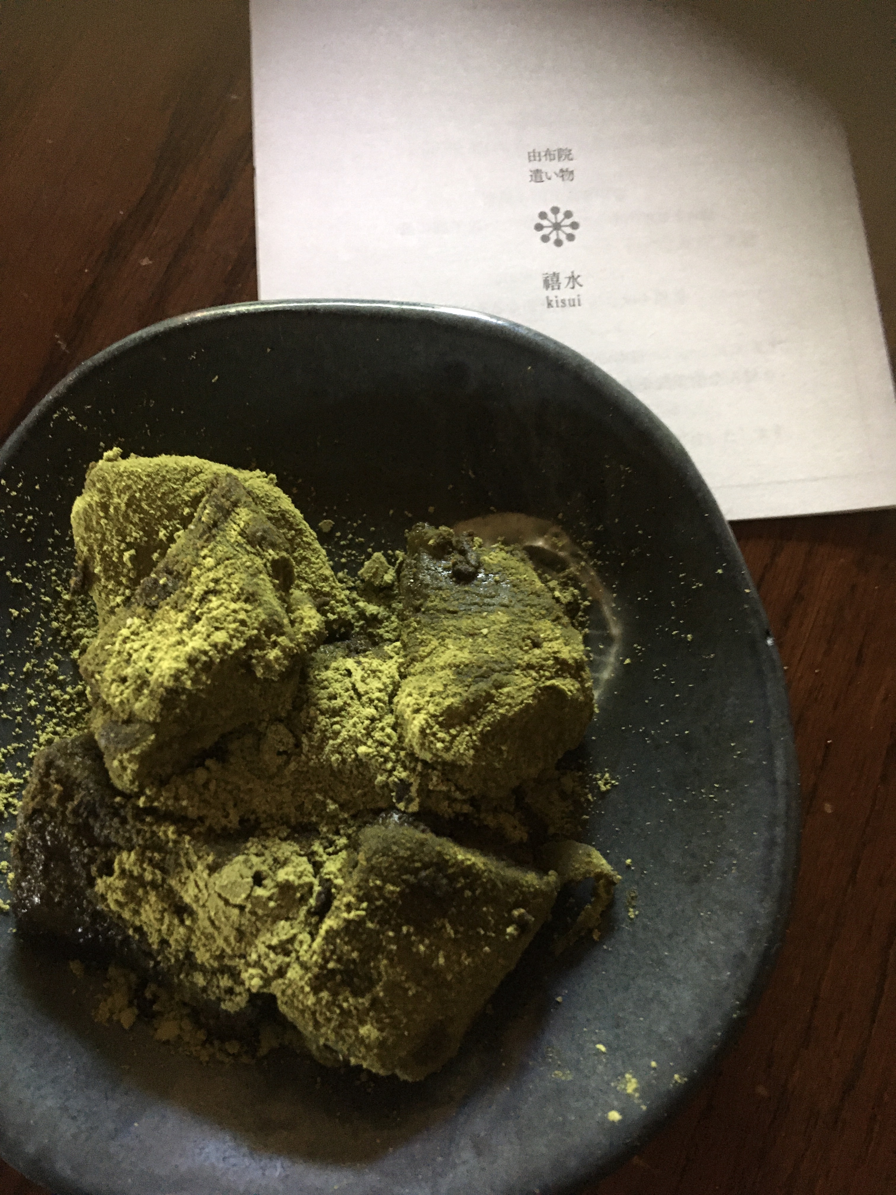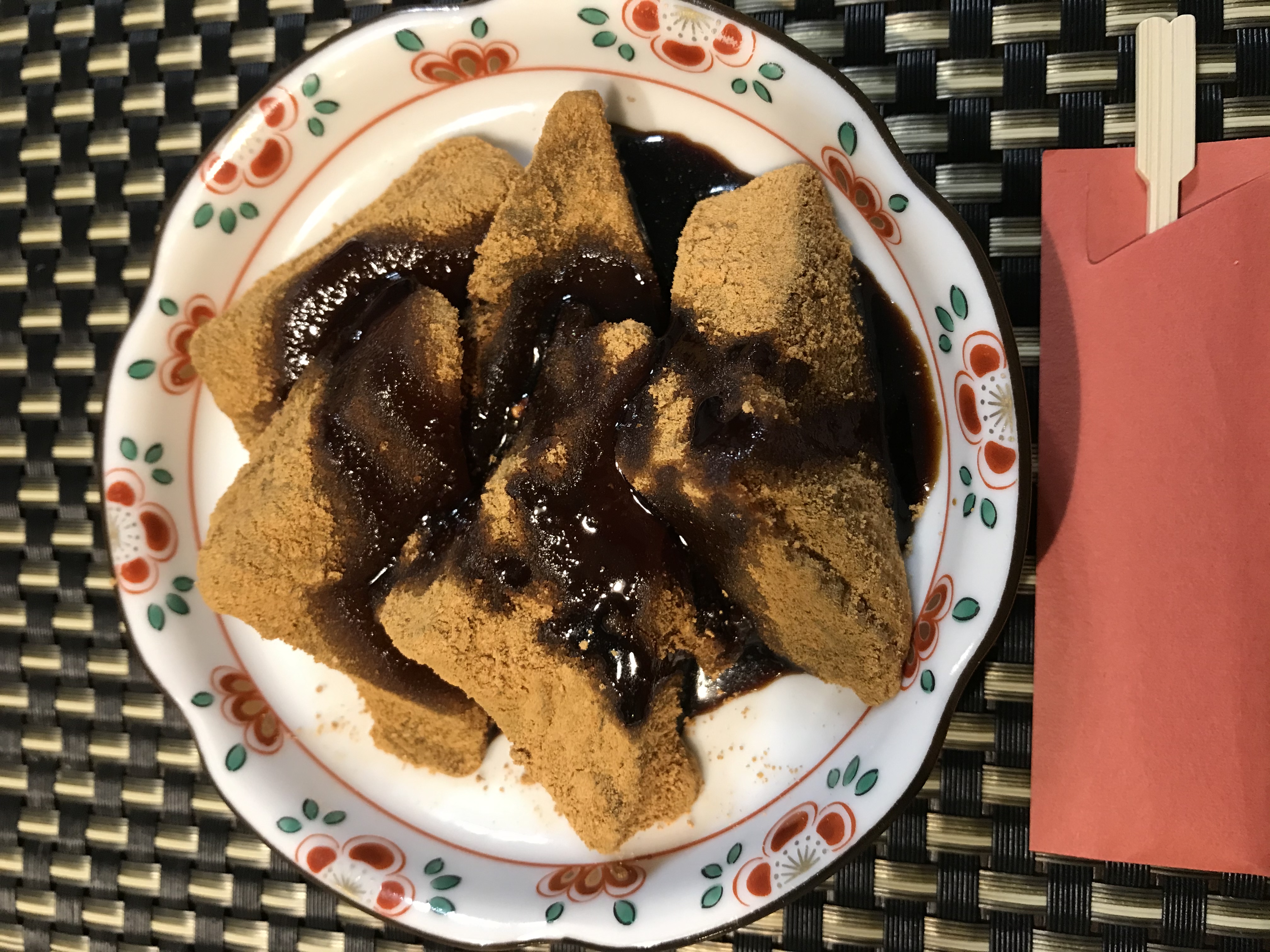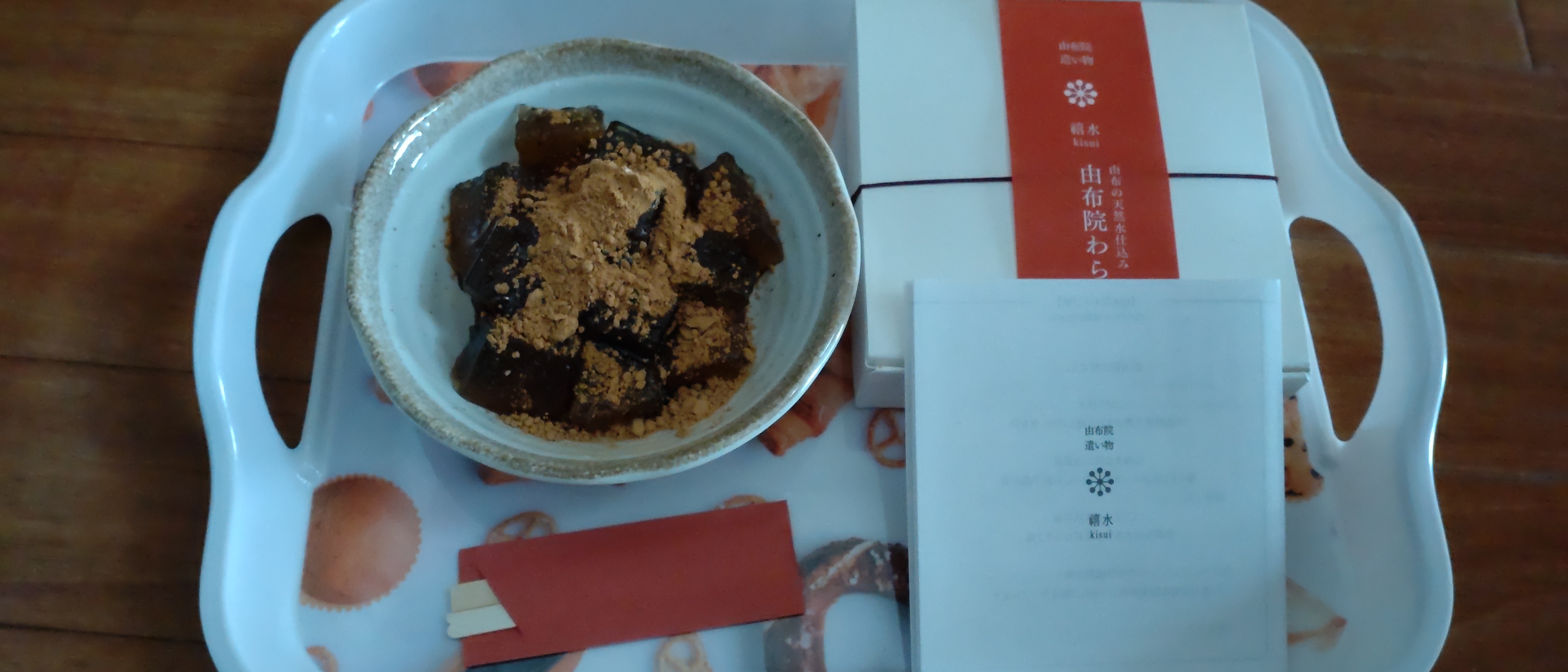 お好みで冷やしてもホットにしてもいいとありますが、常温で黒糖きな粉のわらび餅をいただきます。