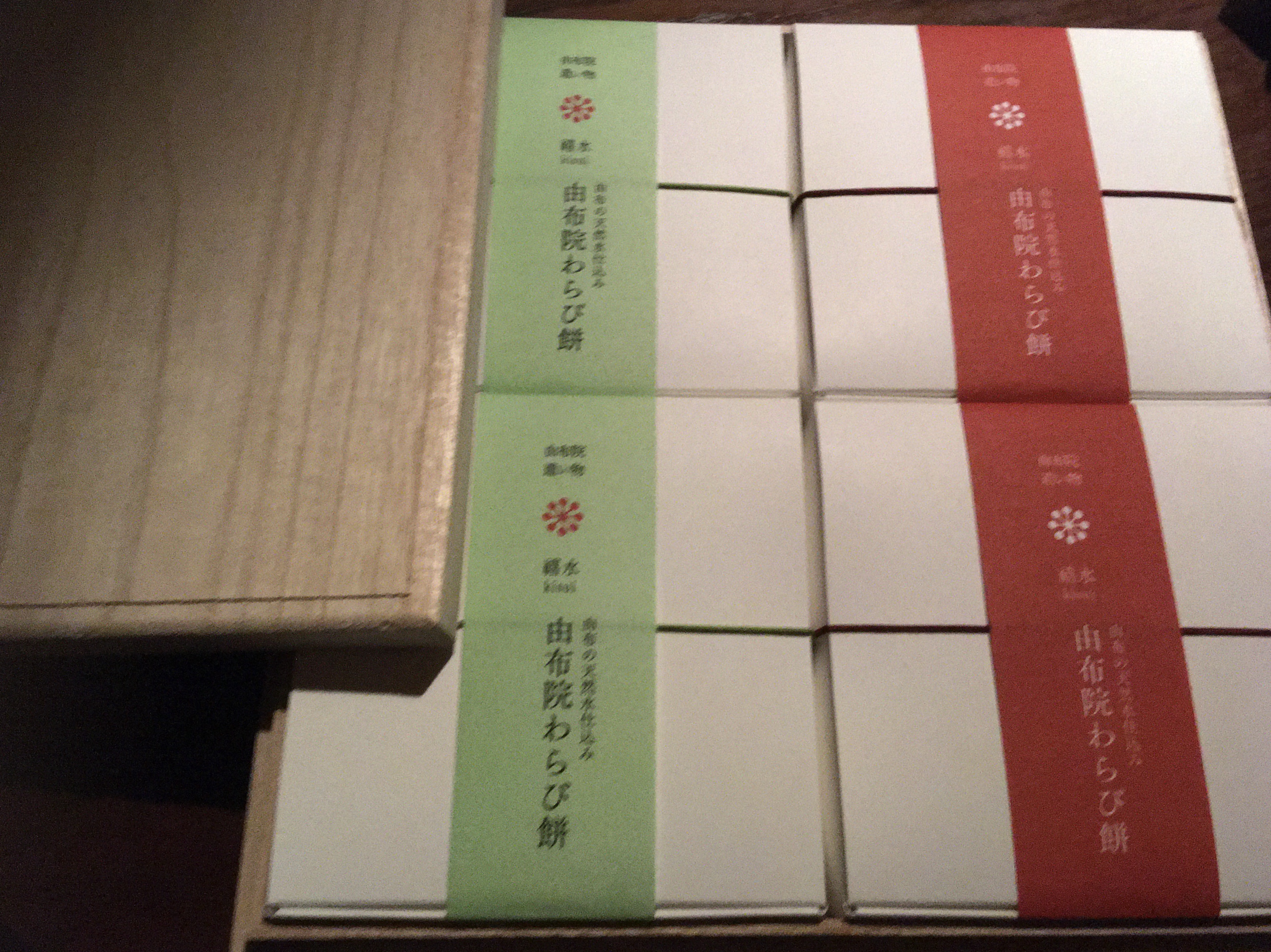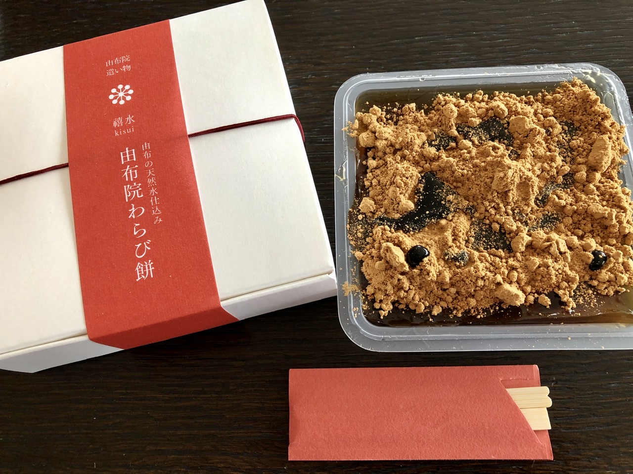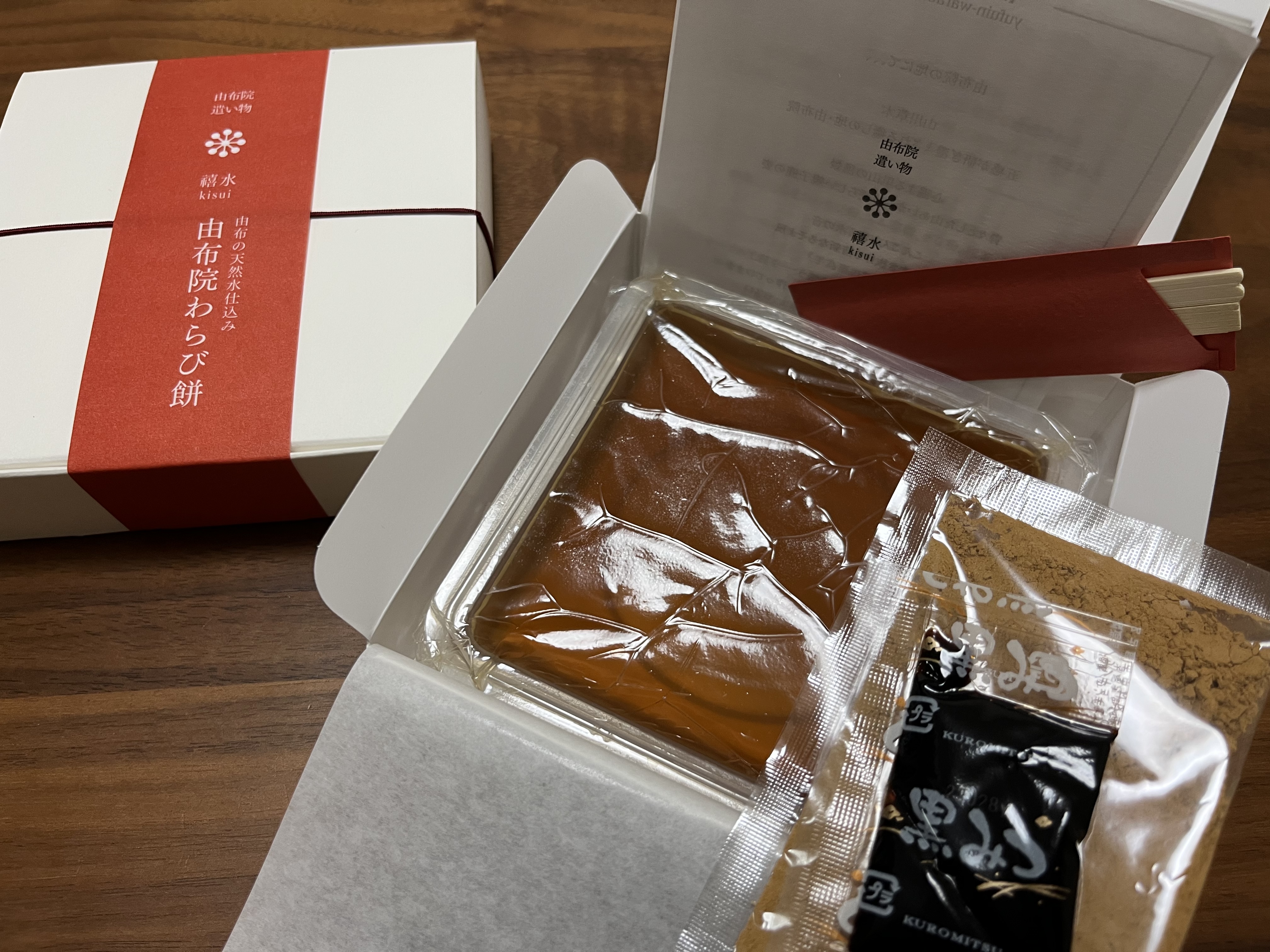 由布院の地下240メートルより湧き出る由布の天然水仕込みのわらび餅です。