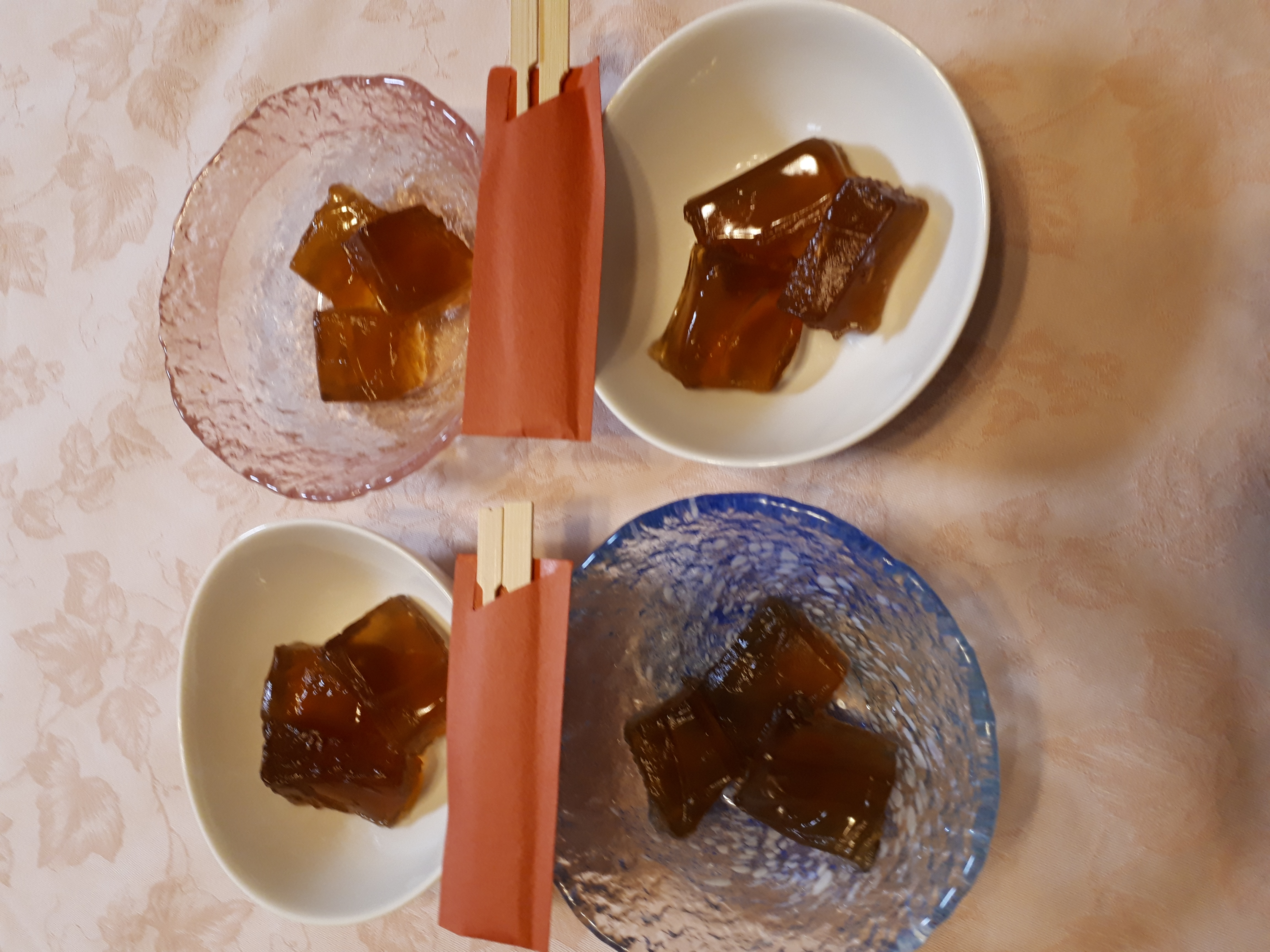 形は煉たてのわらび餅がそのまま流し込まれていて、大きなひとつのわらび餅でいい意味で想像と違い、驚きました!