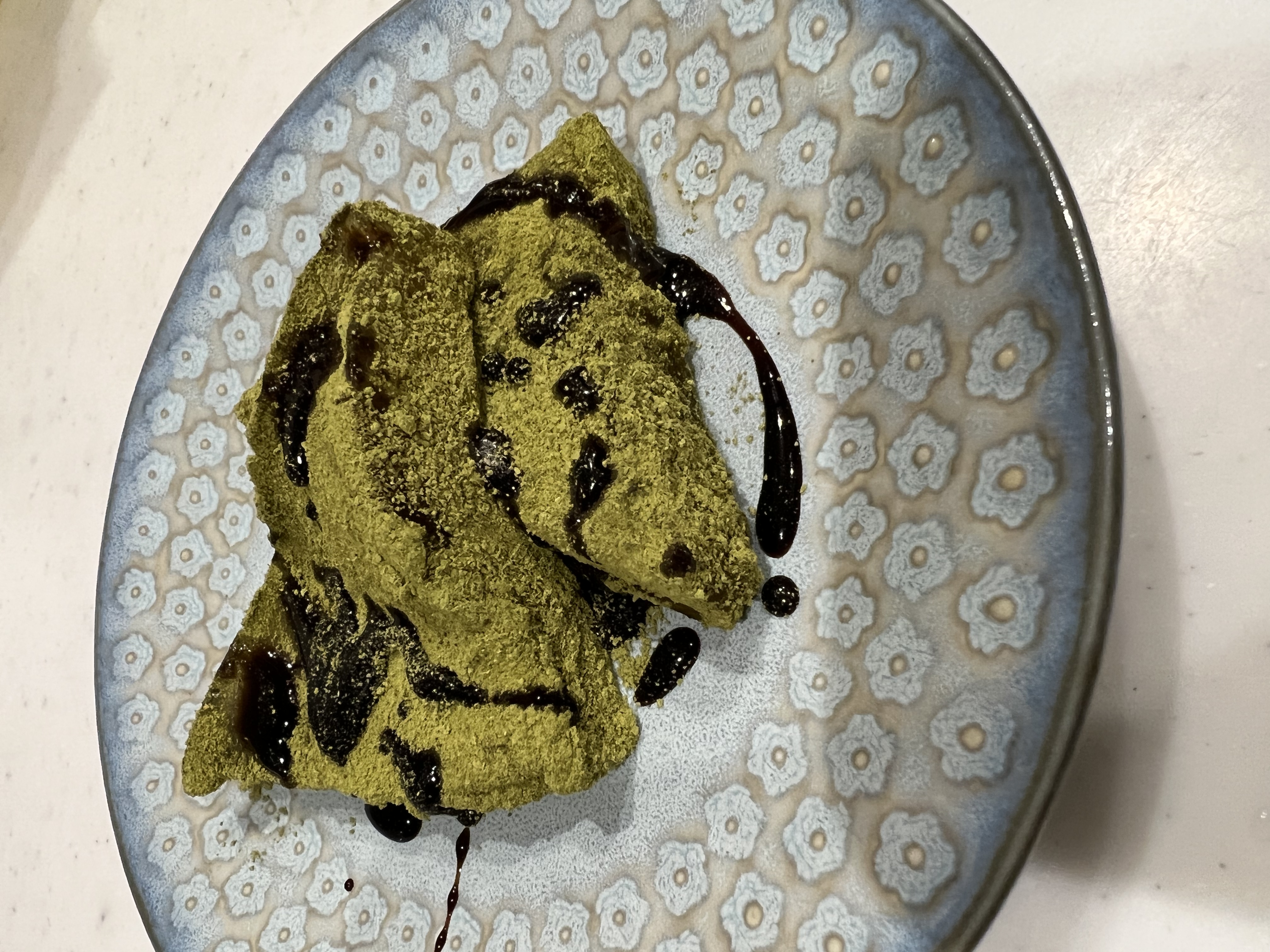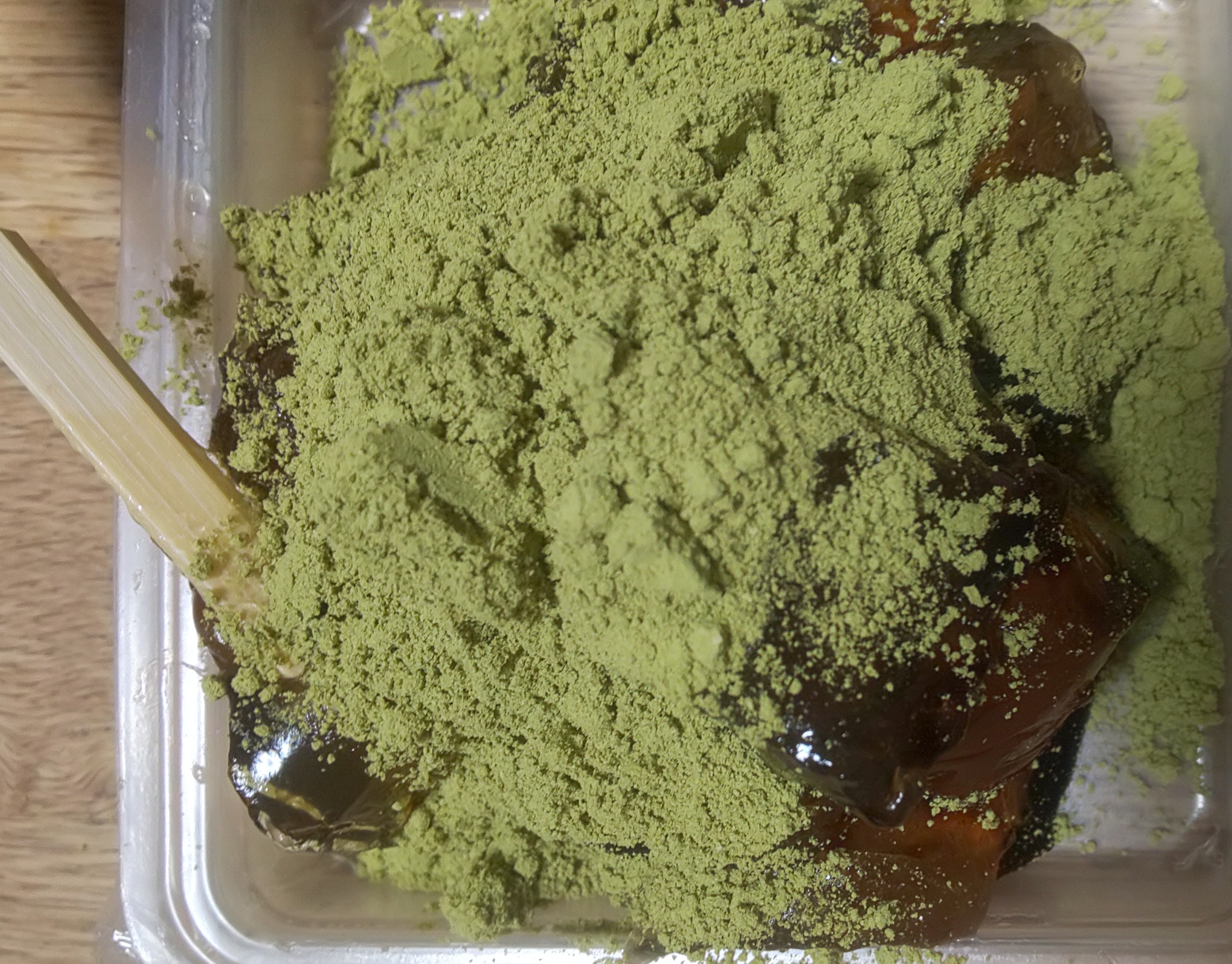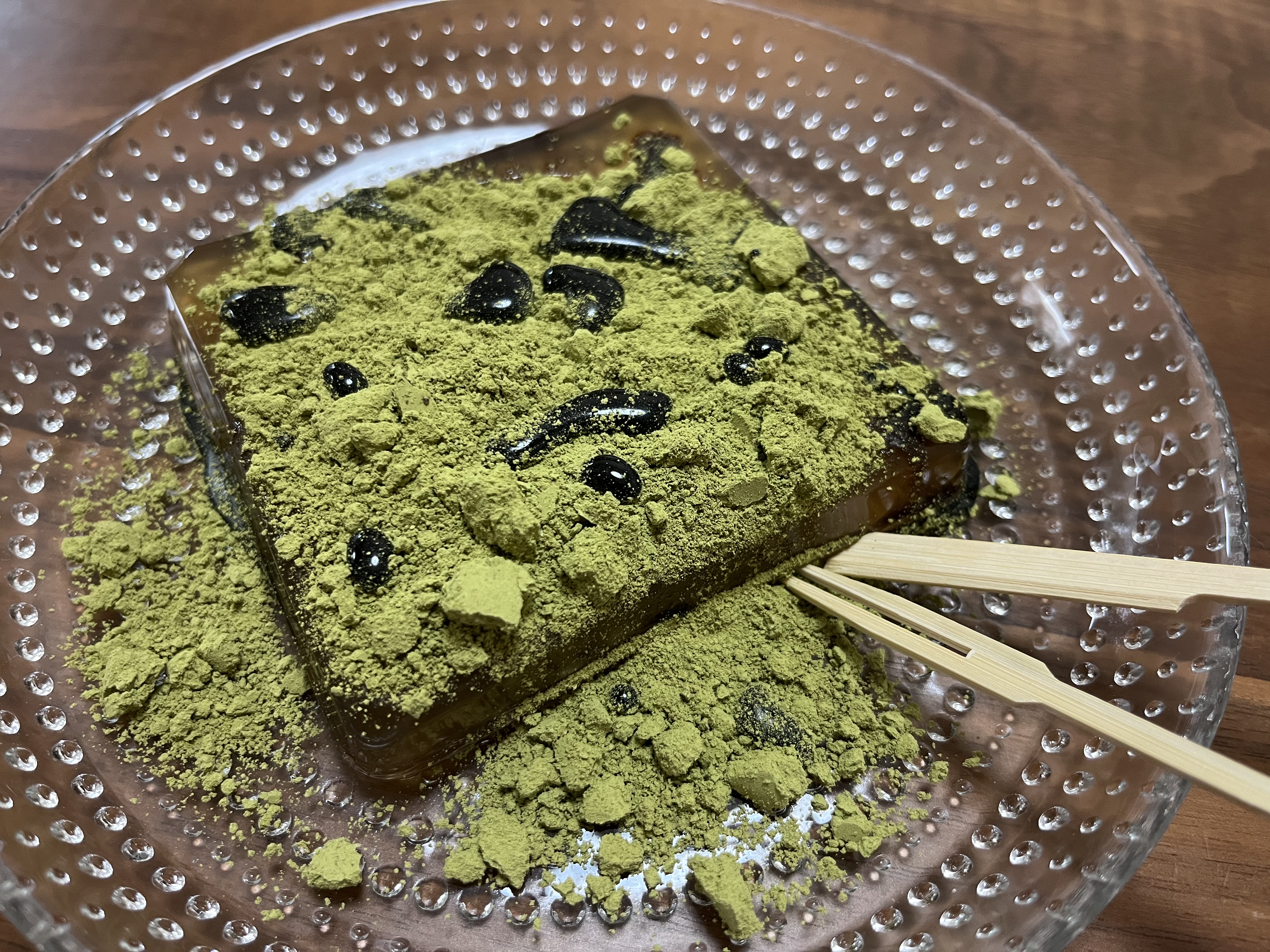 抹茶きな粉のほうは色が鮮やかな黄緑で見た目が綺麗でした!抹茶きな粉のわらび餅は冷やして頂きました。もっちりとした弾力を口の中で楽しんでいるとすぐに溶ろけてなくなるくらいとろっとろです!