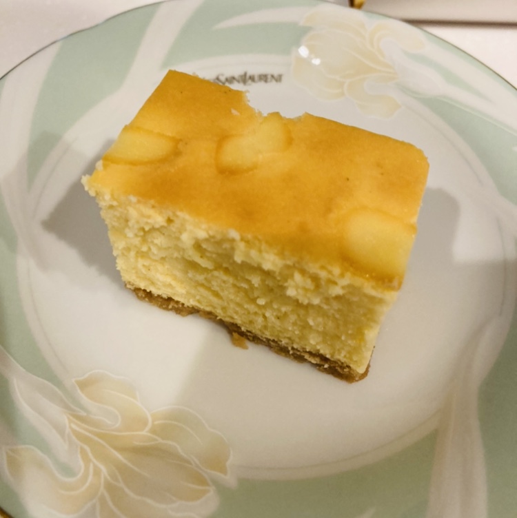 一口いただいてみると、、、ふわっとした食感のレモン風味が程よく効いたお上品な甘みが口の中で踊ります。また、バニラペーストが良い感じのアクセントとなり、お味に締まりをだしてくれます。上部のゴロゴロチーズが程よい固さで美味しく、下部のクランブルはややサクサクしており、甘みがあります。